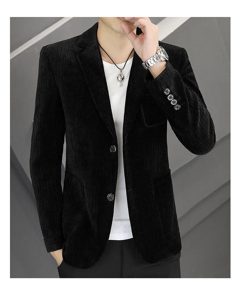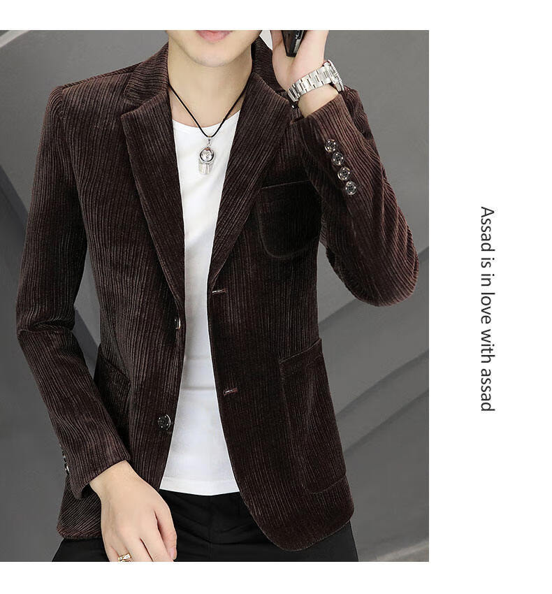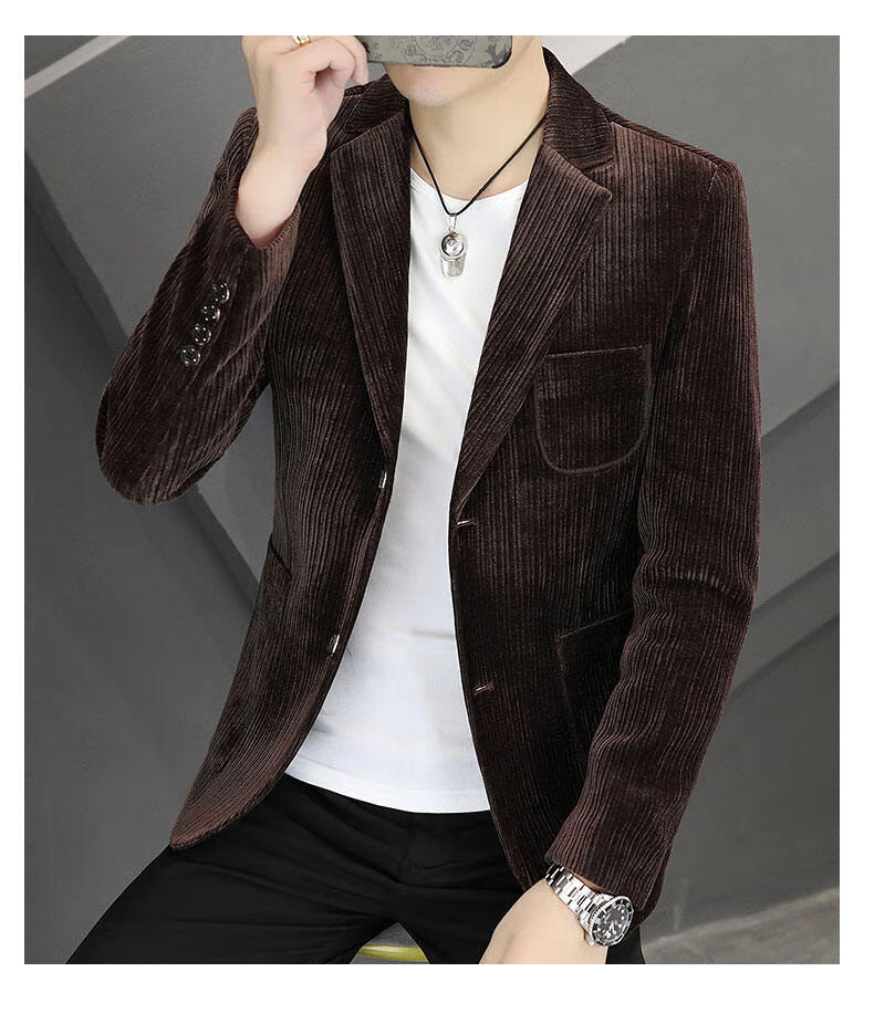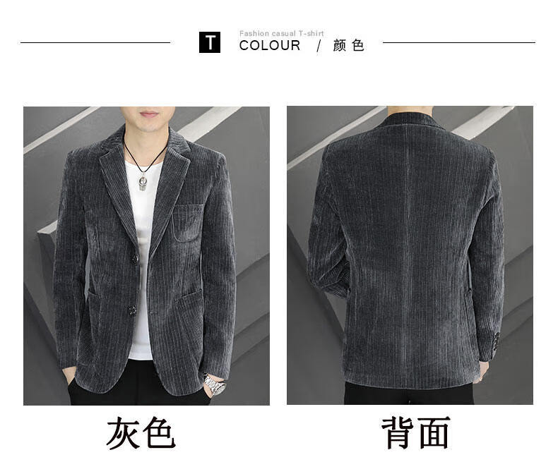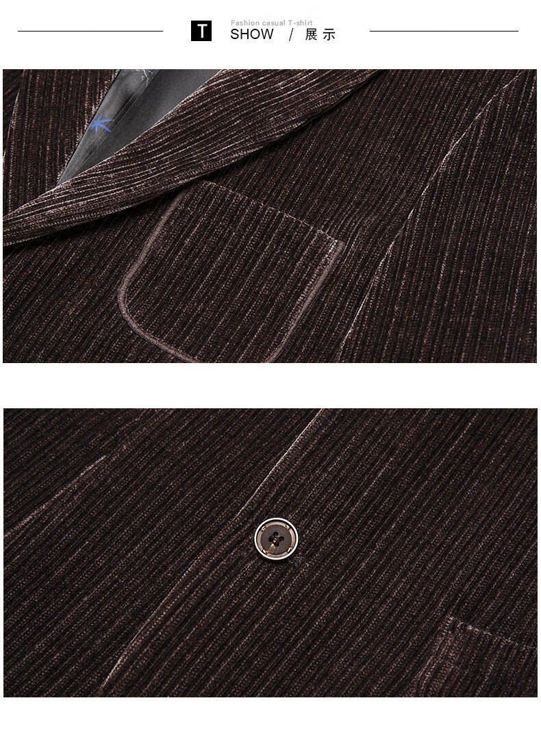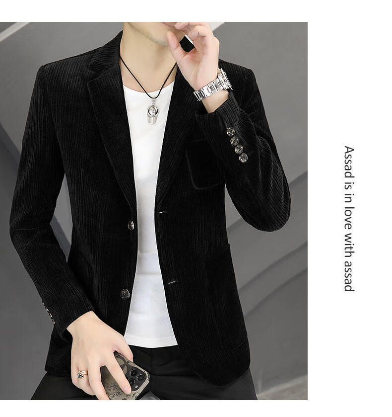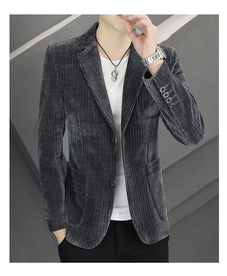 An Chuxia Spring and Autumn Men's Suit Jacket Korean Style Slim Corduroy Suit Men's Trendy Handsome Casual Single Suit Top Gray XL