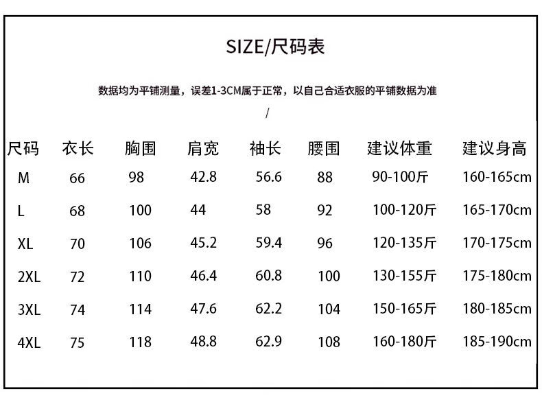 China (cm) 165 / 88-90 170 / 96-98 175 / 108-110 180 / 118-122 185 / 126-130