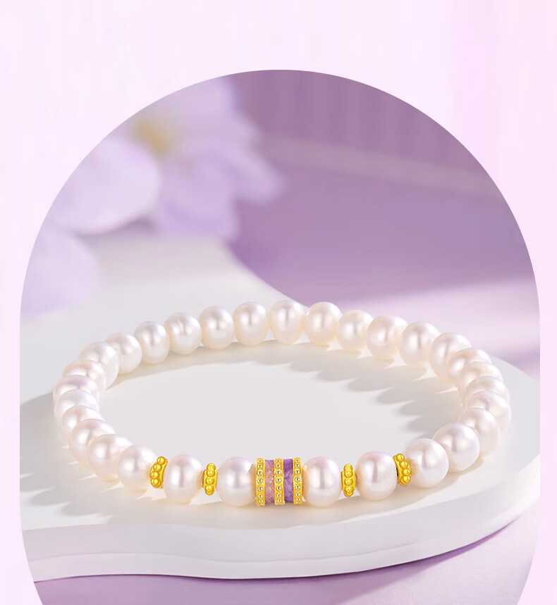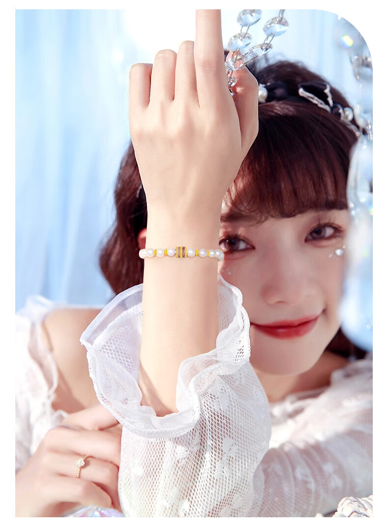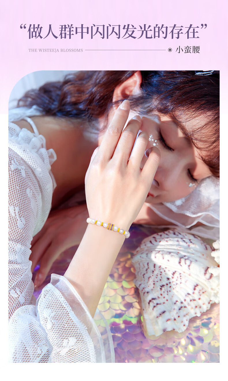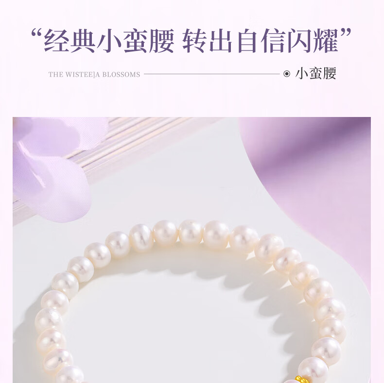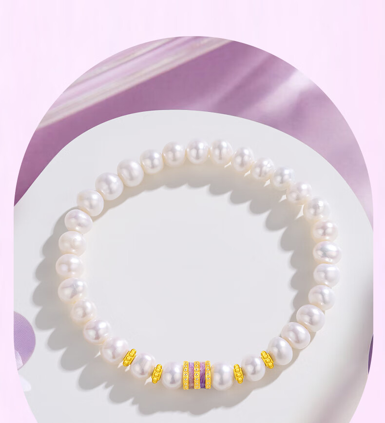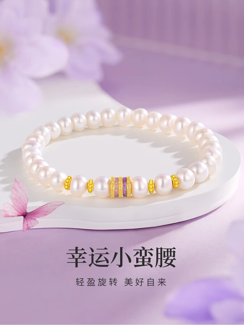 Chinese Gold Small Waist Pearl Bracelet Women's Full Gold Pearl Bracelet New Year's and Christmas Gifts for Girlfriends and Wife's Birthday Practical Jingsuda-Pure Gold Gradient Small waist Pearl Bracelet
