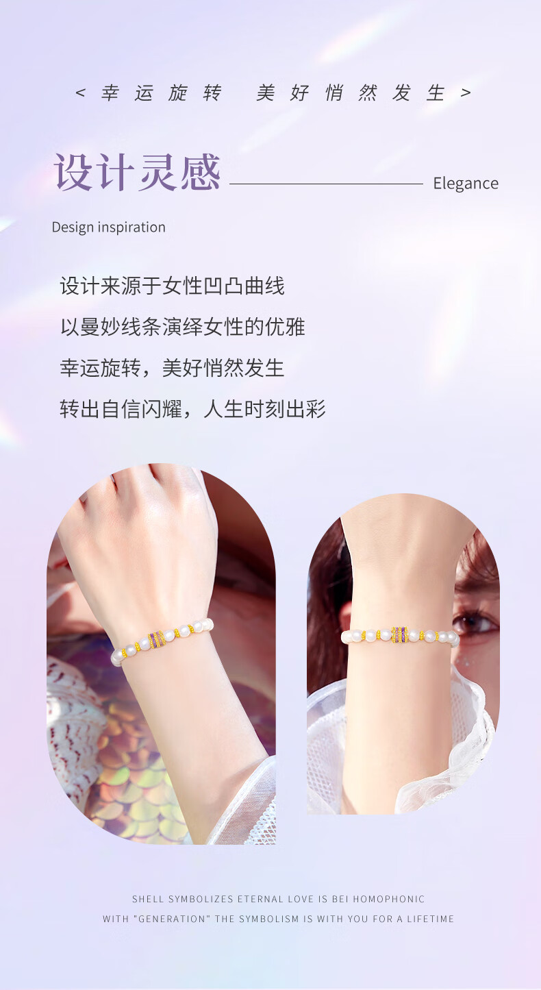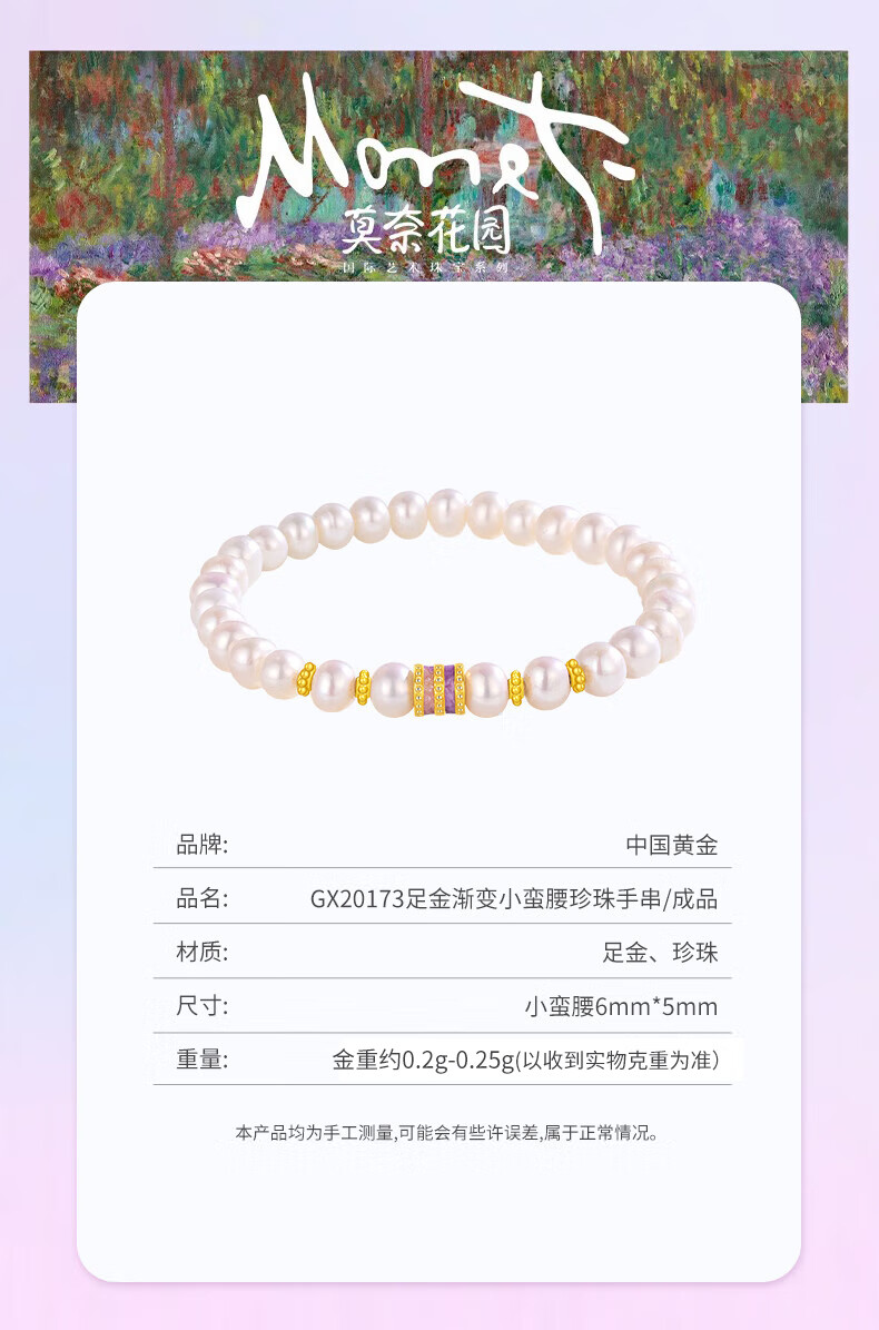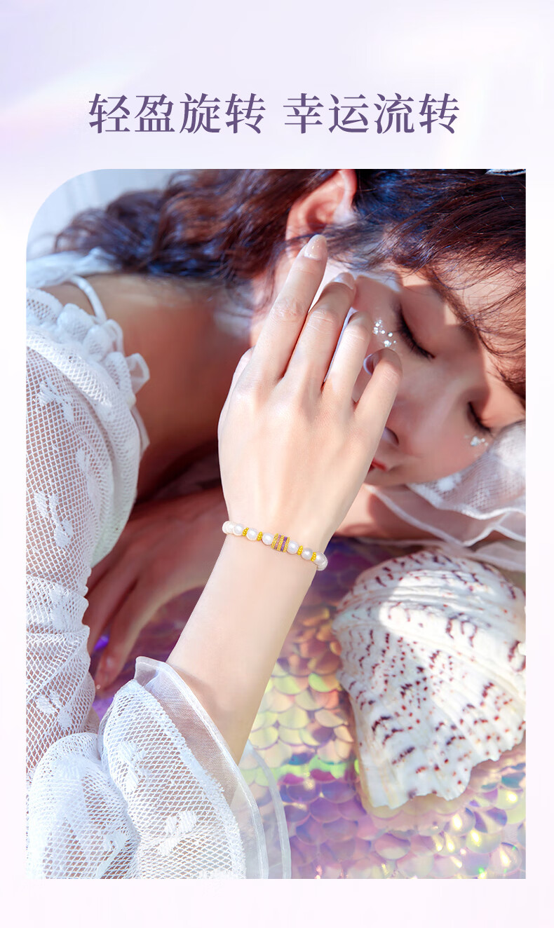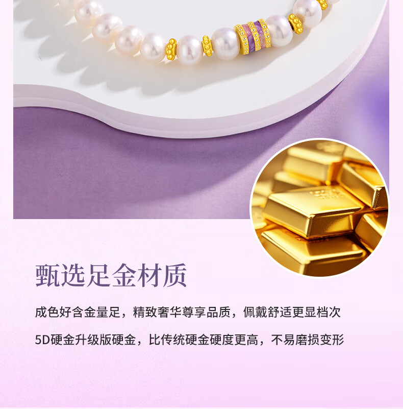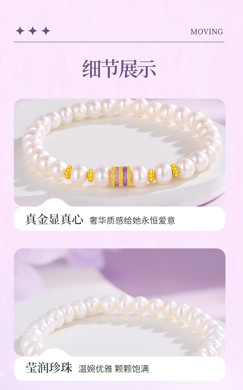 Chinese Gold Small Waist Pearl Bracelet Women's Full Gold Pearl Bracelet New Year's and Christmas Gifts for Girlfriends and Wife's Birthday Practical Jingsuda-Pure Gold Gradient Small waist Pearl Bracelet