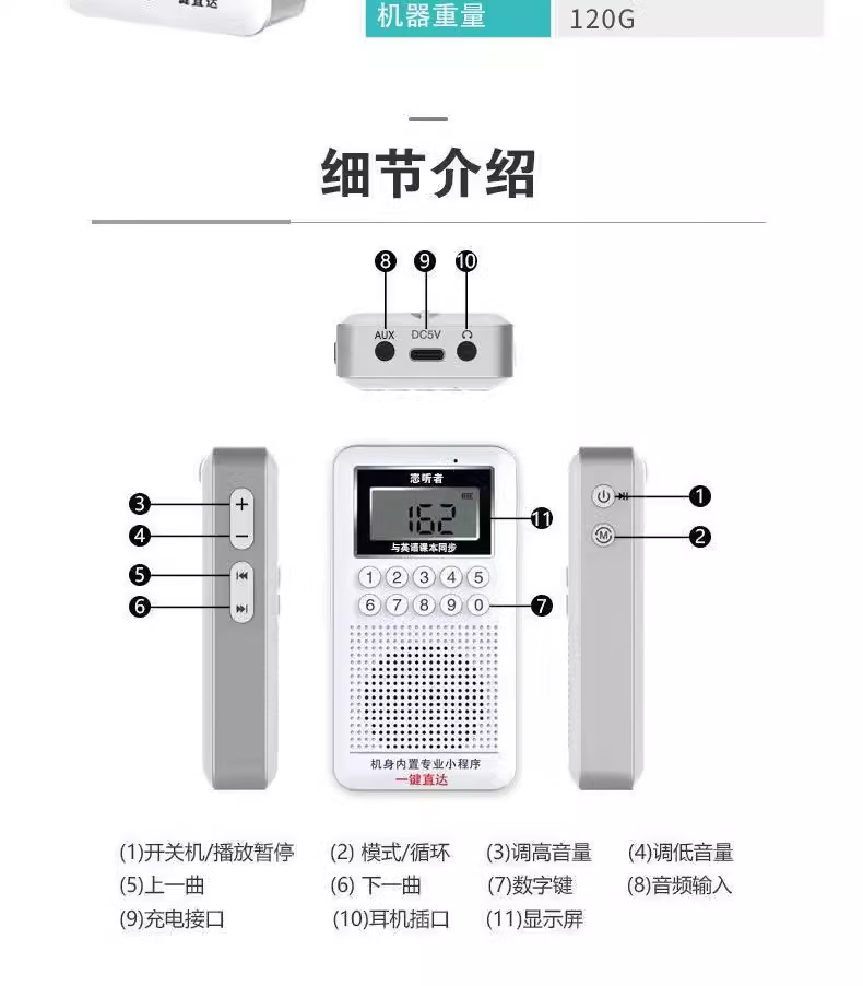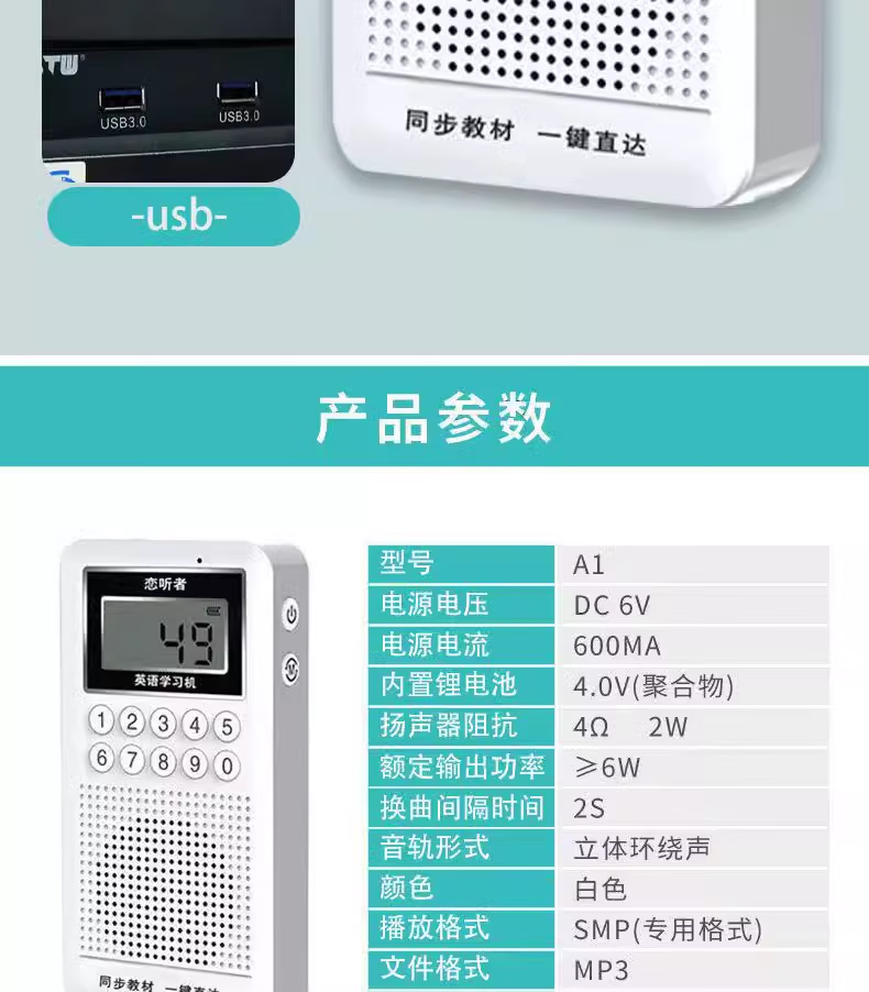 Love Listener New Edition Primary School, Junior High and High School English Learning Machine Listening Learning Machine Synchronized English Teaching Materials People's Education Press Jiangsu Education Edition Official Standard (Sends Headphones) People's Education Press Jiangsu Education Edition