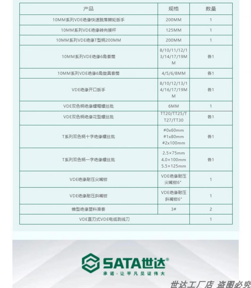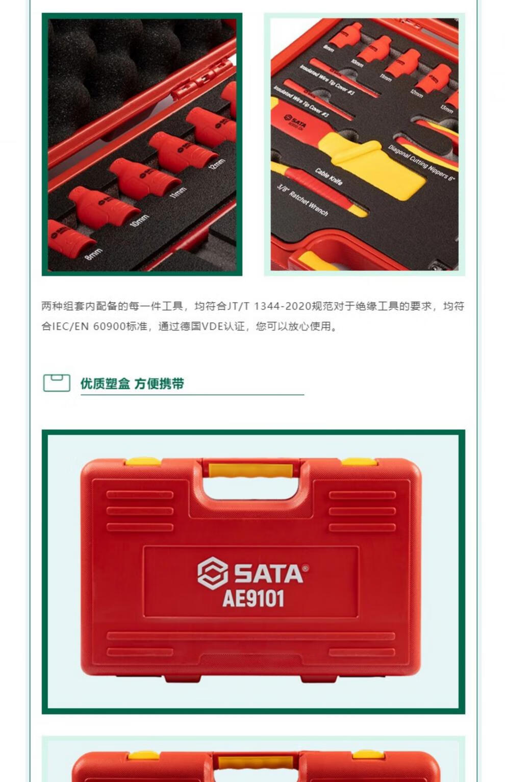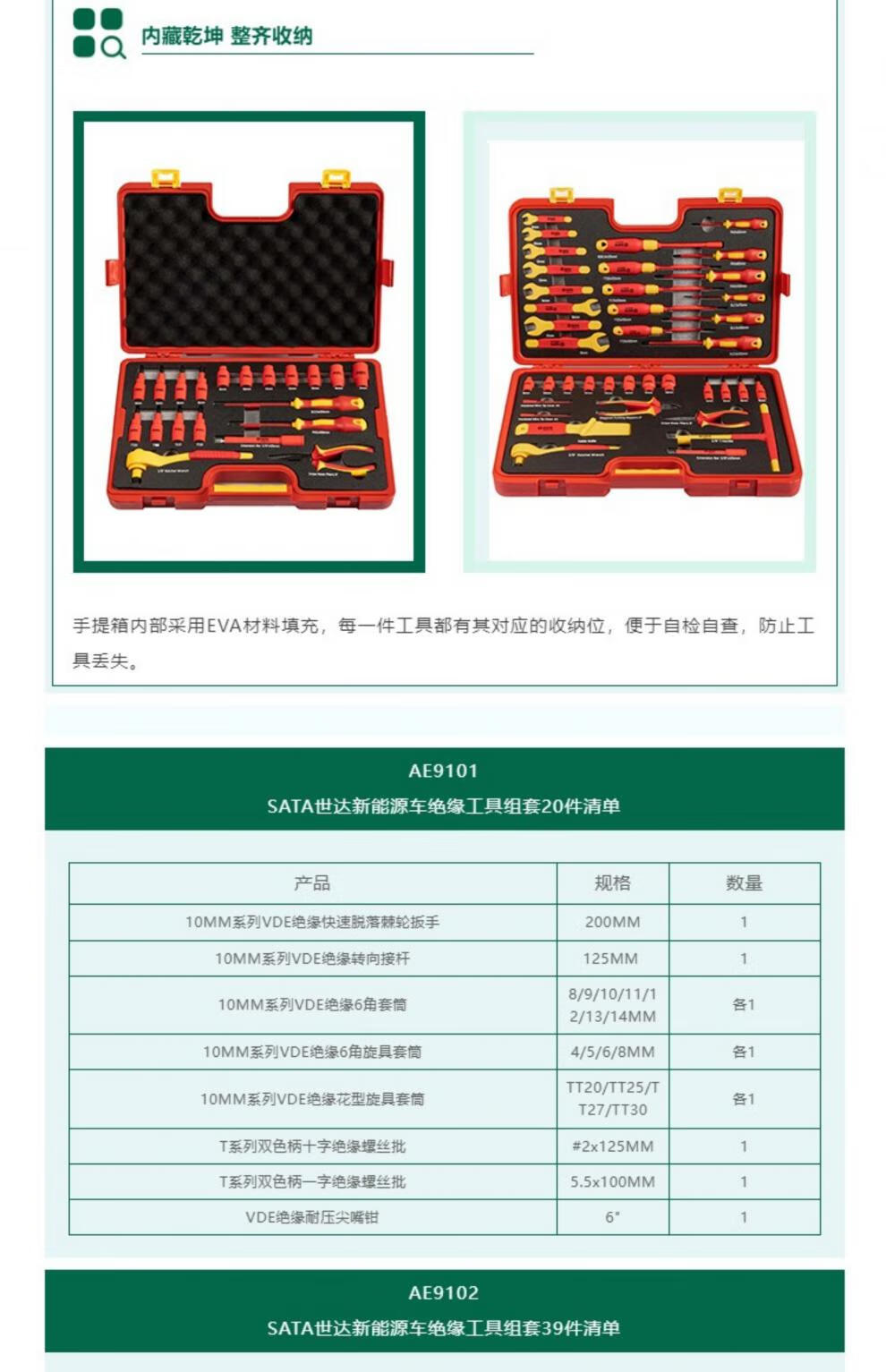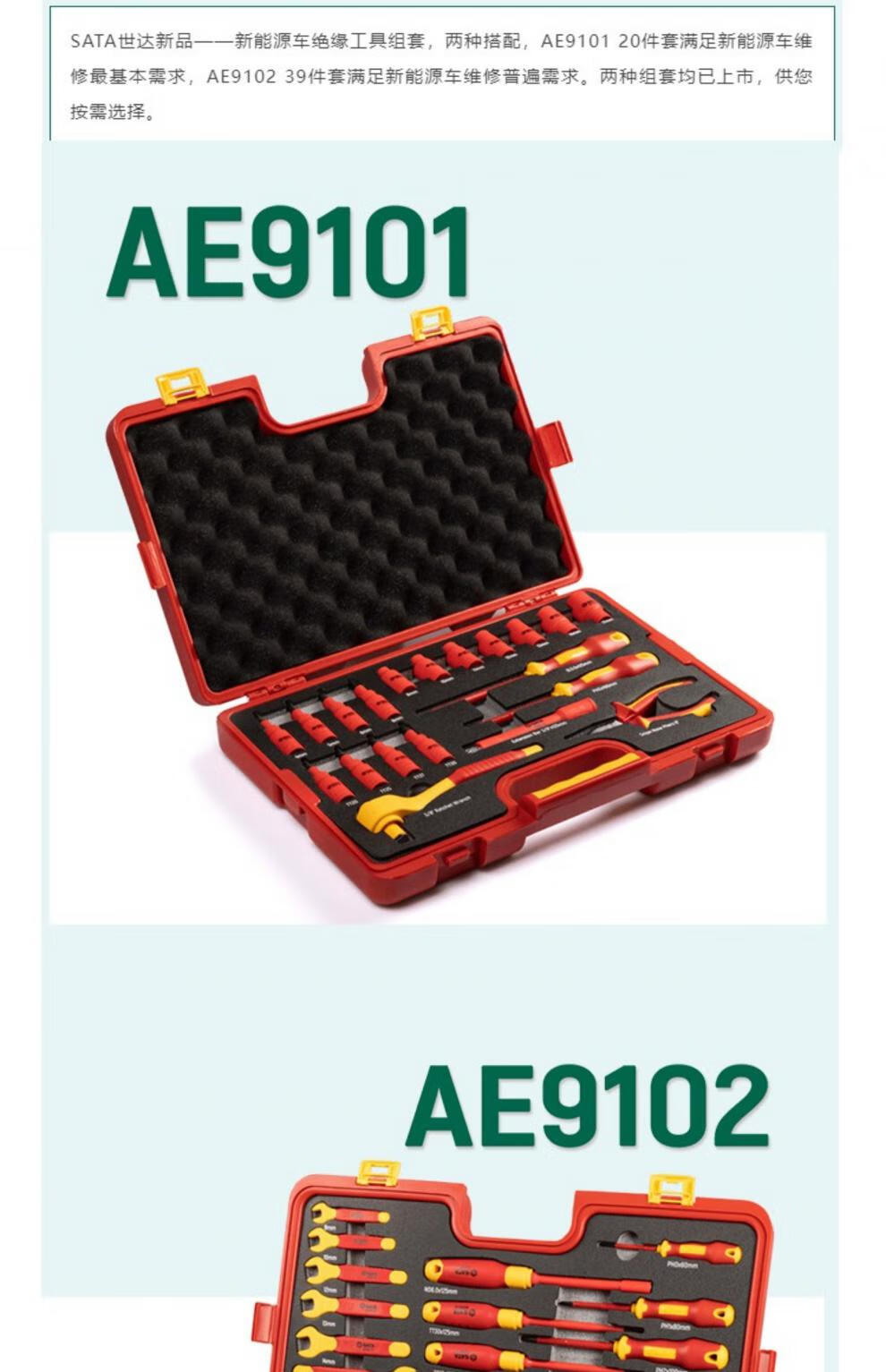 SATA insulated screwdriver AE9102 new energy vehicle insulation tool set electric vehicle repair tool adjustable wrench AE9102/39 pieces new energy vehicle insulation tool set
