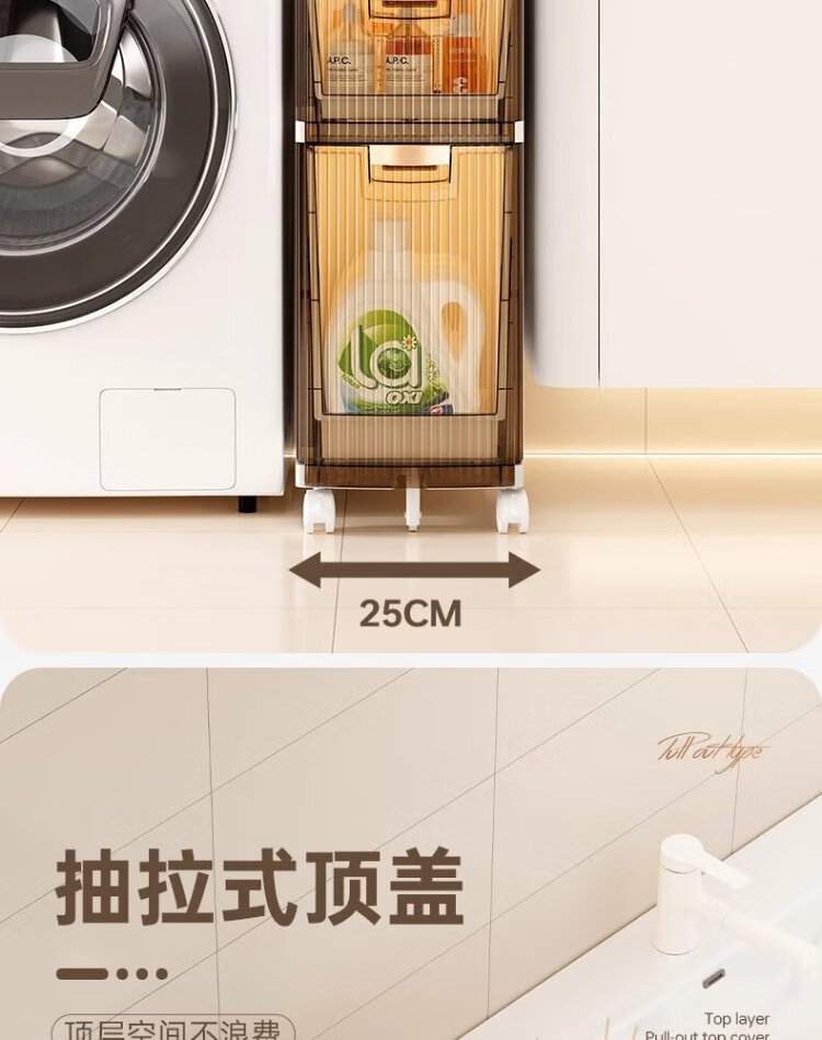 Quanshi bathroom sandwich storage rack gap waterproof storage cabinet bathroom wide drawer-type storage rack storage cabinet 25cm wide 5 layers