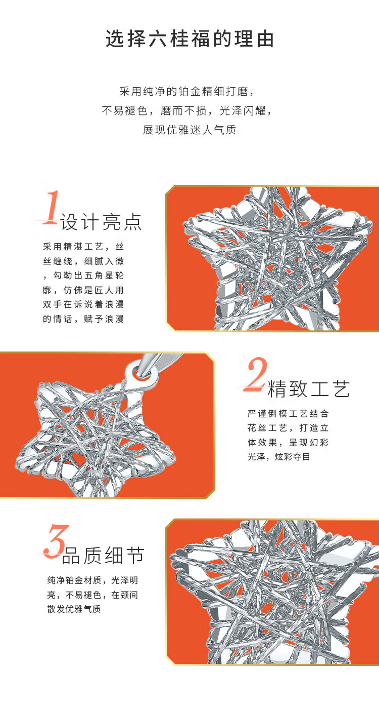 Liuguifu jewelry platinum pendant for women pt950 platinum five-pointed star pendant birthday gift necklace 1.35g