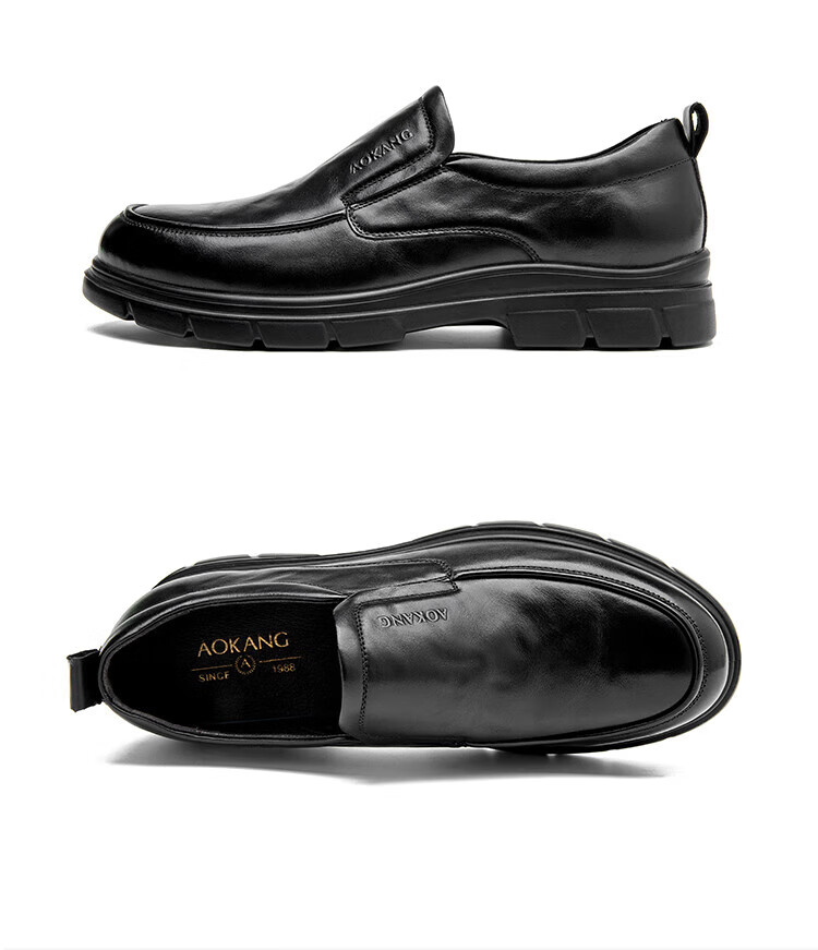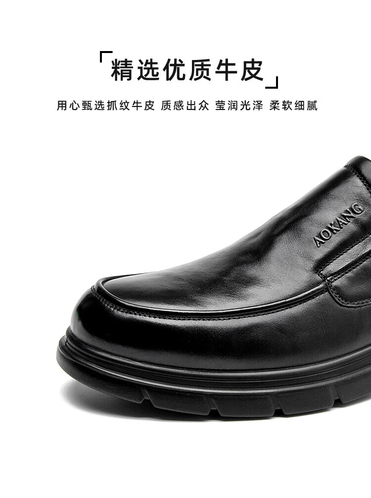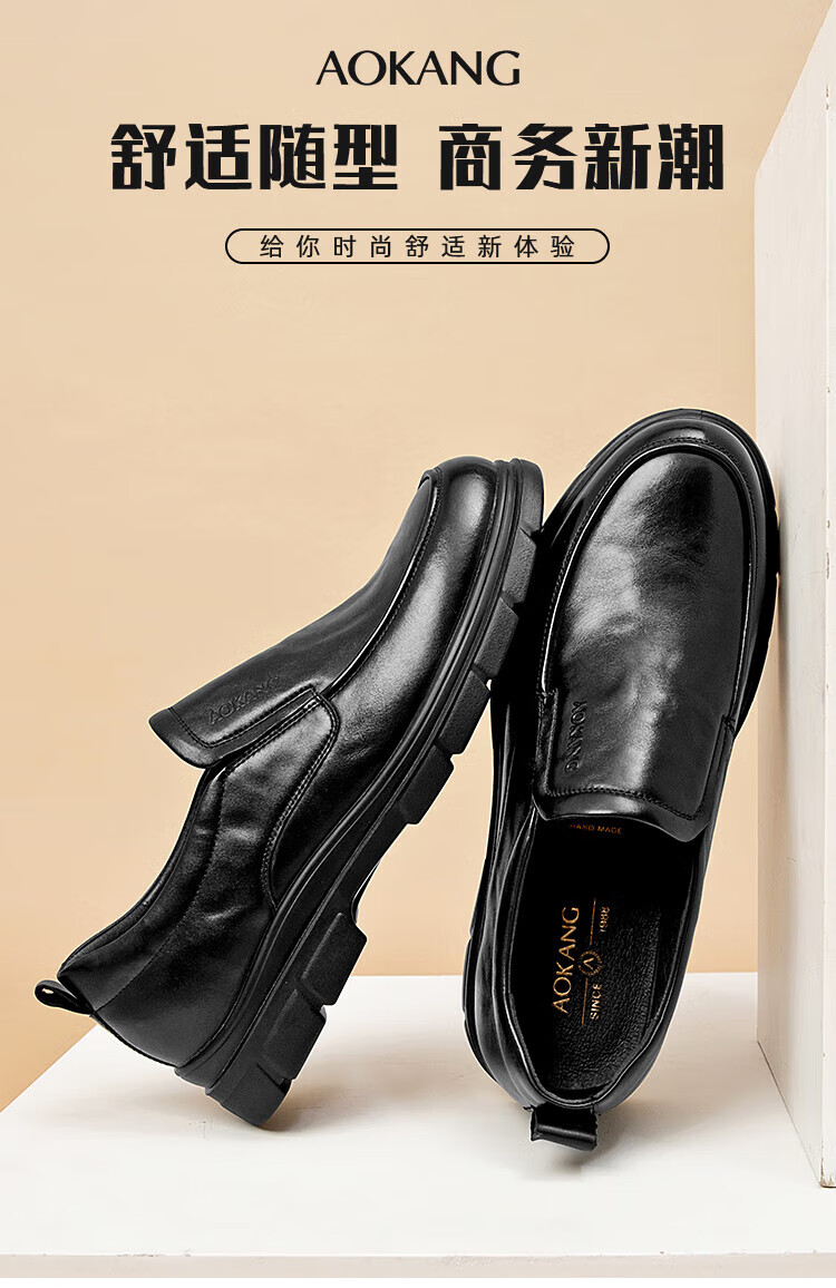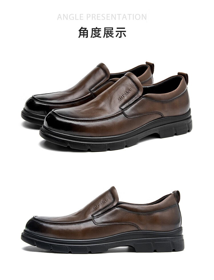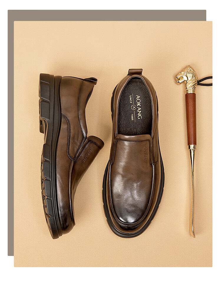 Aokang 2025 spring and autumn new business casual men's shoes, comfortable slip-on men's leather shoes, genuine leather cowhide business soft-soled shoes, brown 1245214018N 42, one size smaller than sports shoes