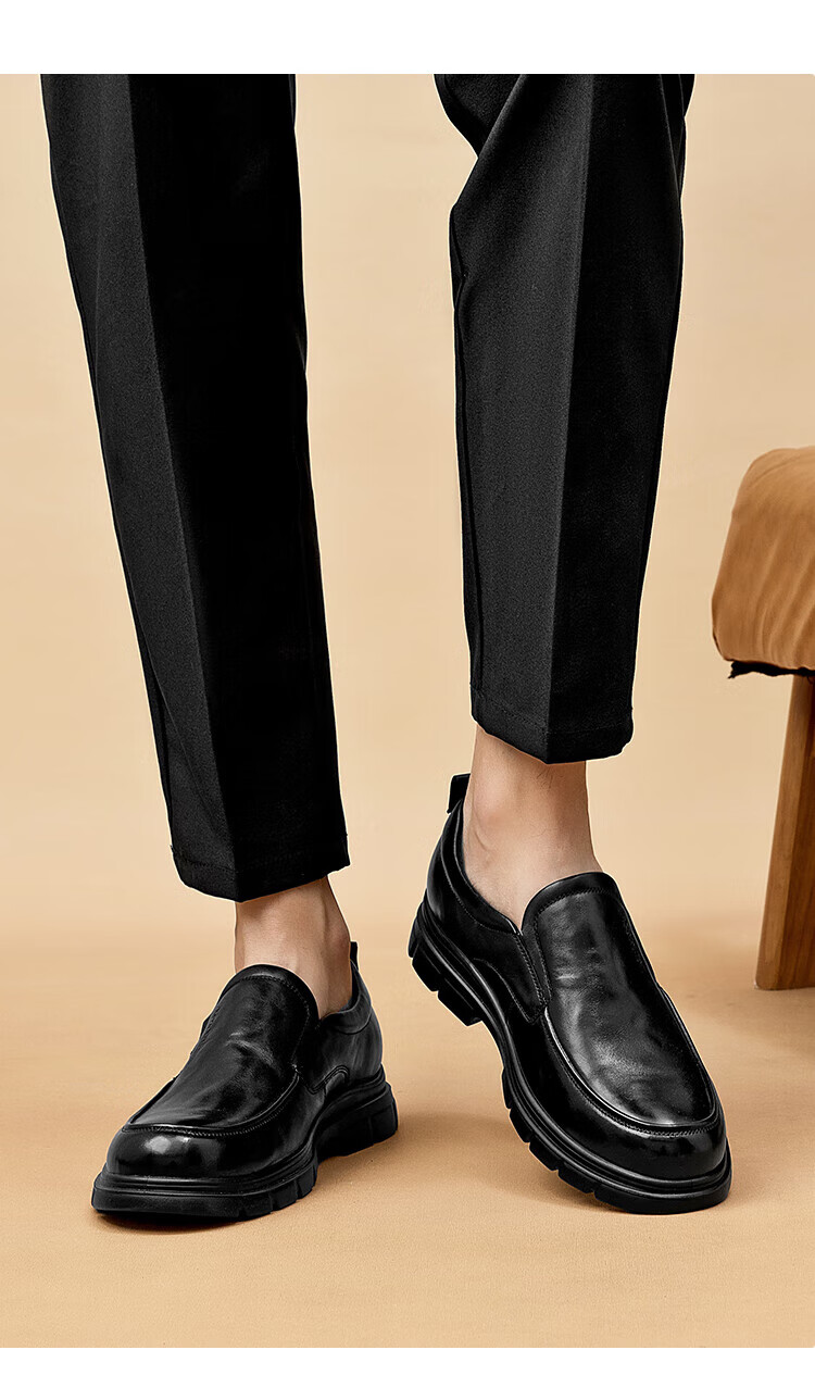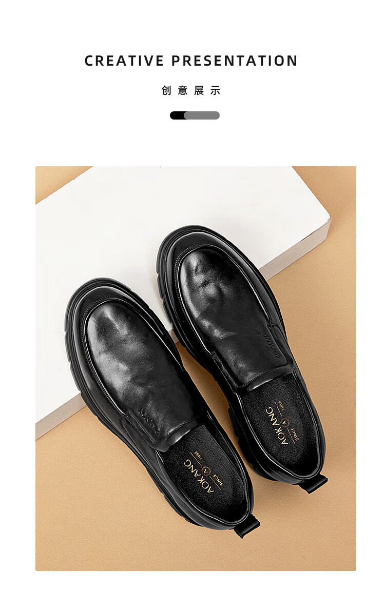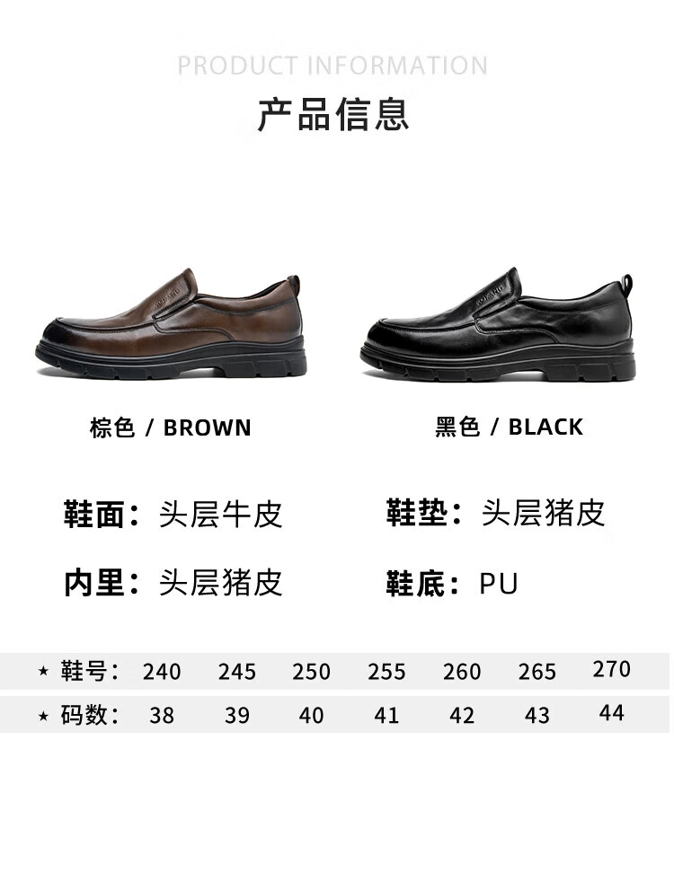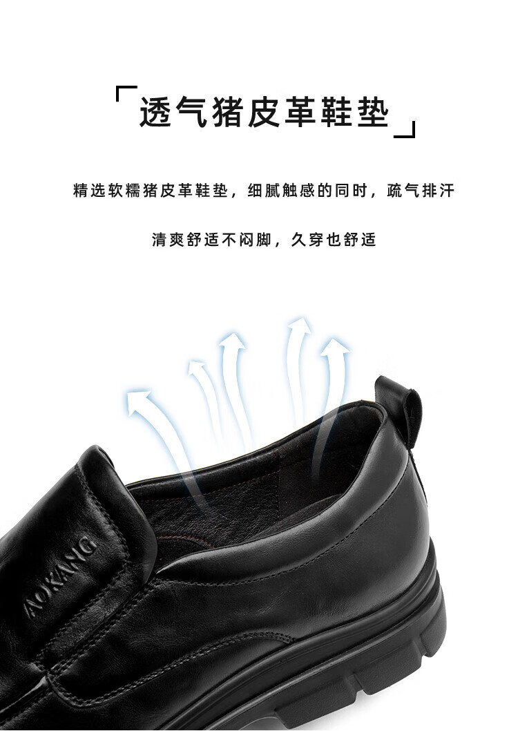 Aokang 2025 spring and autumn new business casual men's shoes, comfortable slip-on men's leather shoes, genuine leather cowhide business soft-soled shoes, brown 1245214018N 42, one size smaller than sports shoes