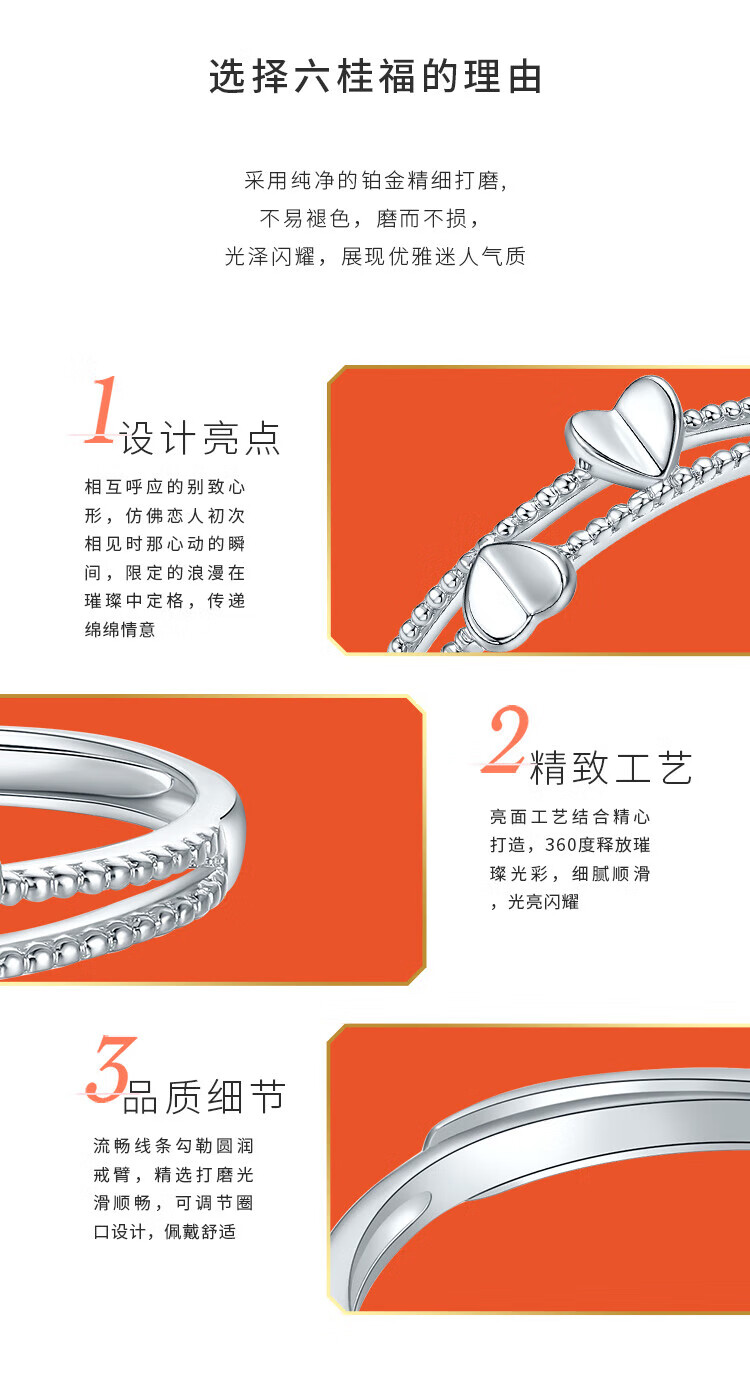 Liuguifu jewelry platinum ring women pt950 platinum love ring birthday gift 2.15g