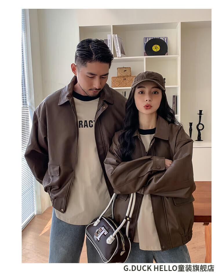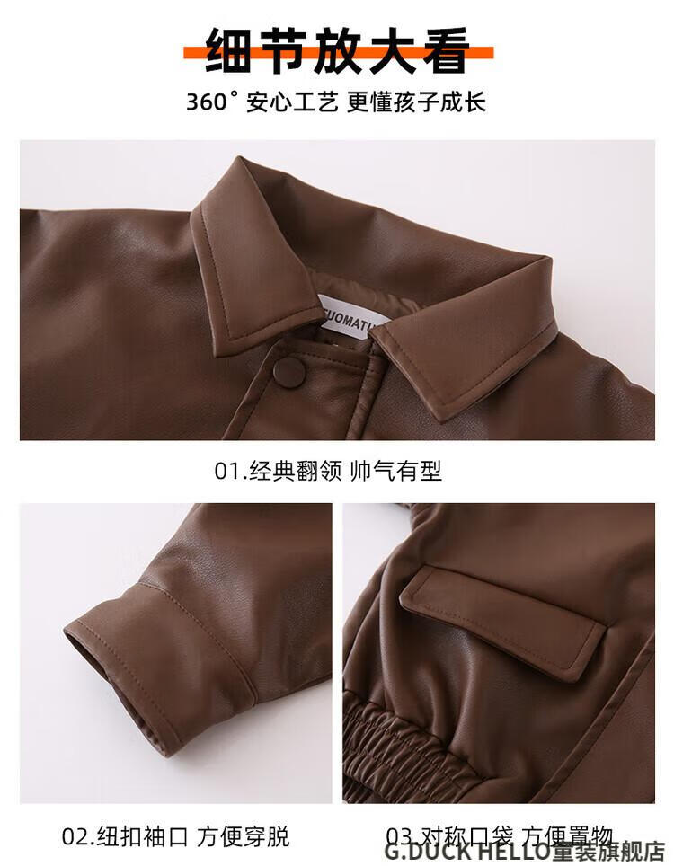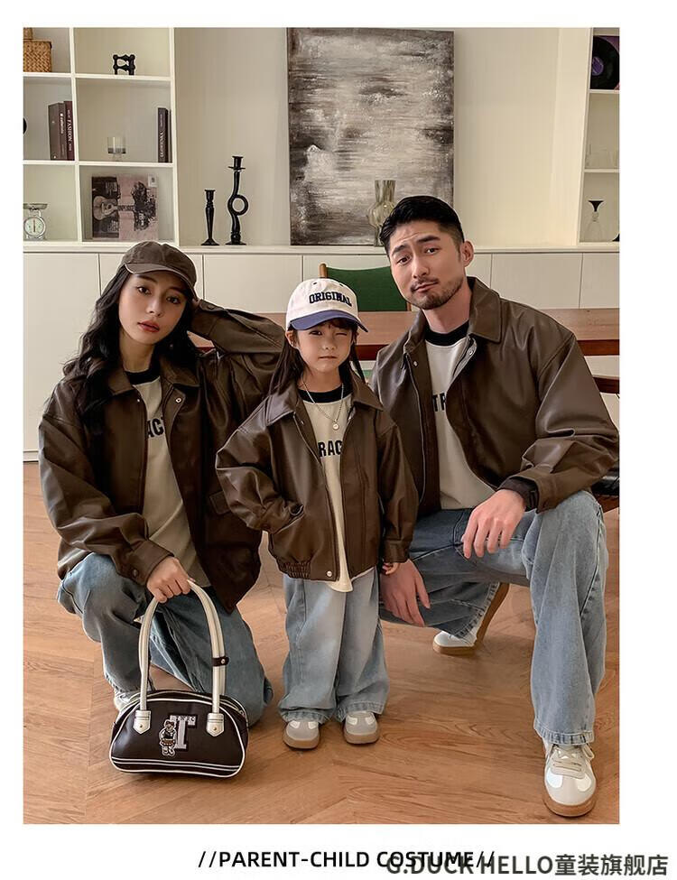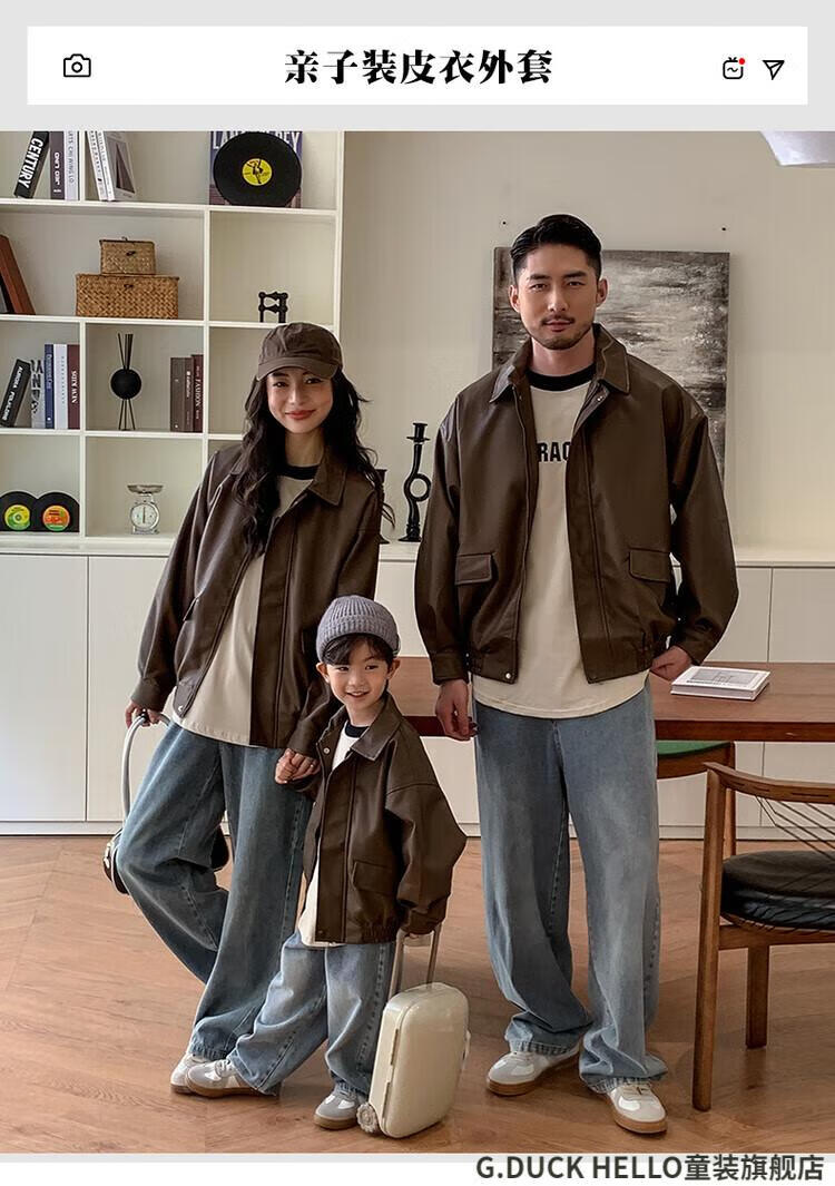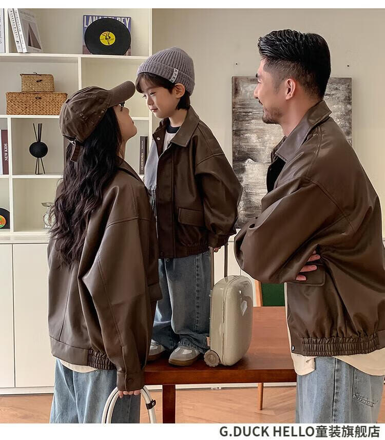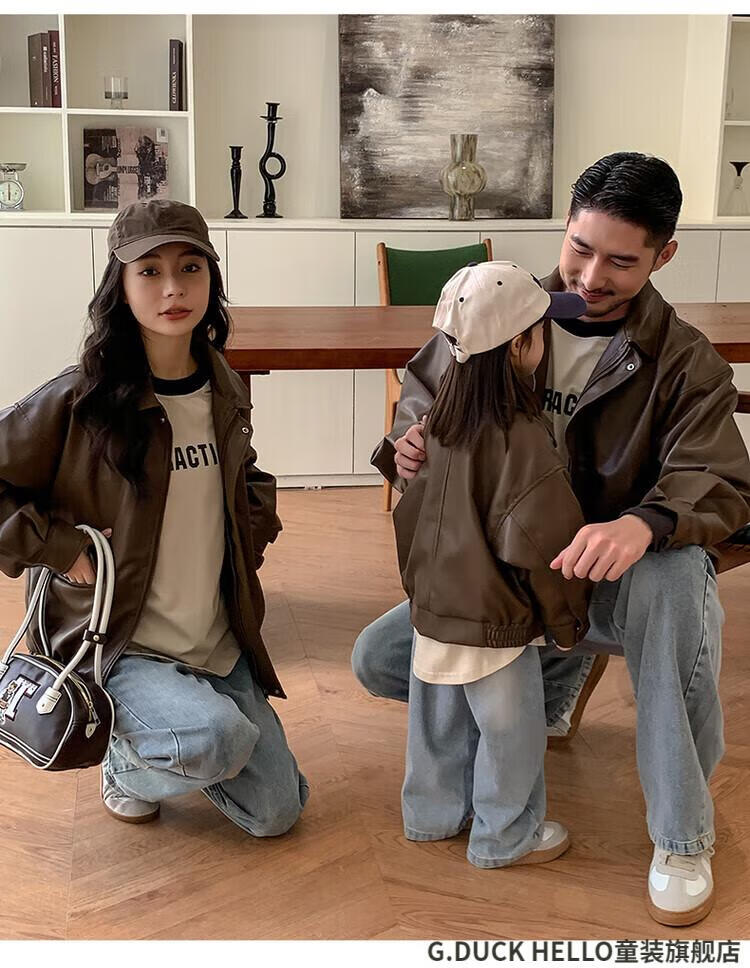 G.duck little yellow duck children's clothing parent-child clothing three or four autumn clothing suit spring and autumn mother and daughter clothing motorcycle clothing family clothing jacket leather jacket 140 size recommended 9~10 years old 130-140cm cm