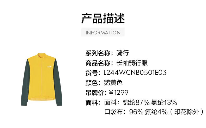 Le coq sportif Cycling French Rooster Autumn and Winter Women's Fashionable Sports Long-Sleeved Cycling Jersey Goose Yellow L