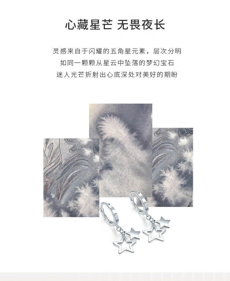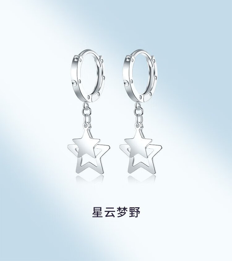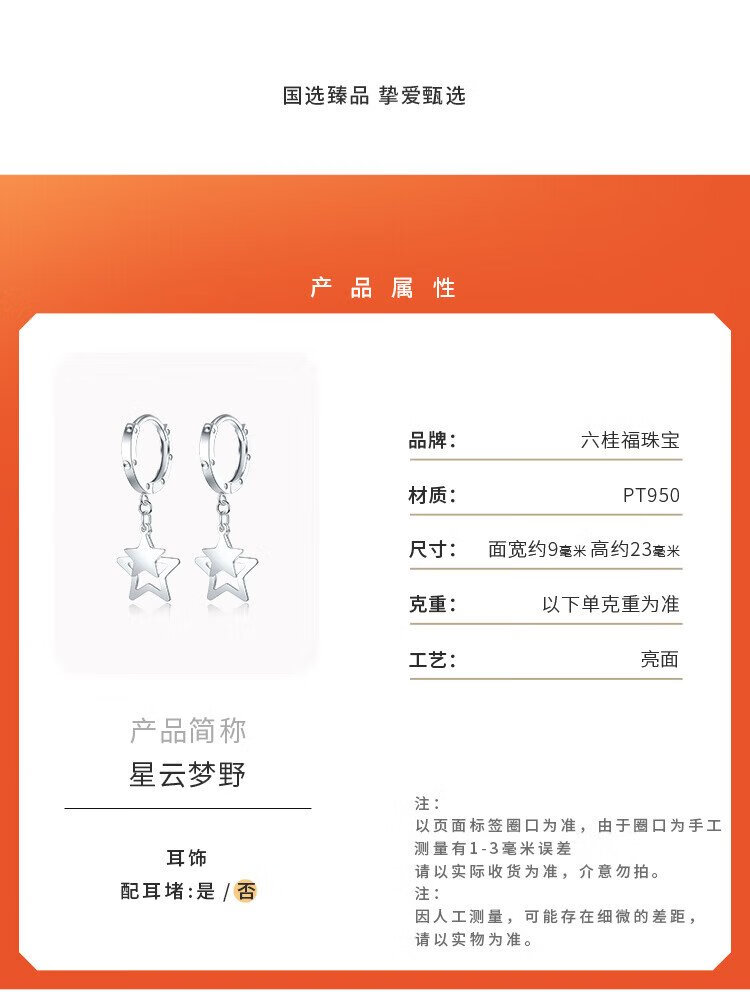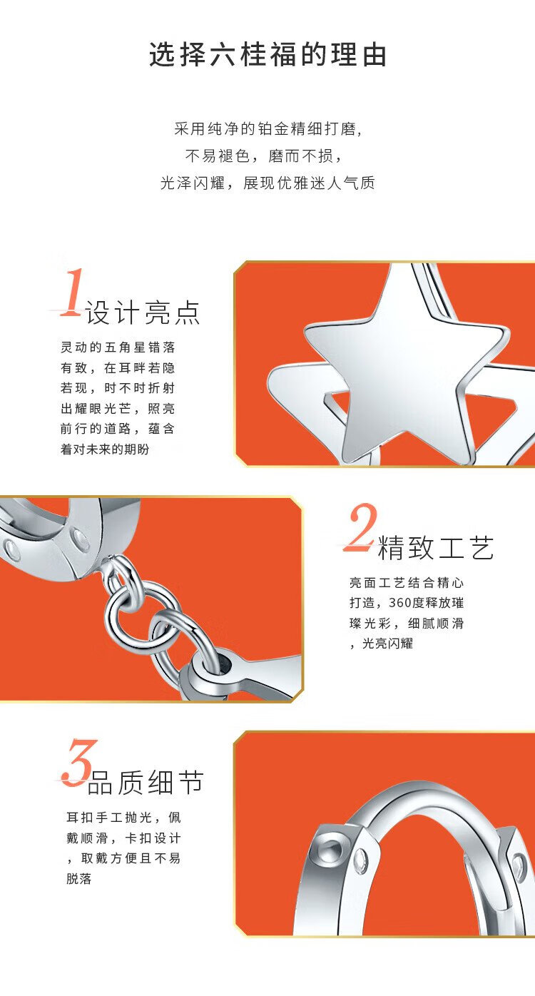 Liuguifu Jewelry Platinum Earrings Women's PT950 Earrings Pentagram Earrings Earrings Birthday Gift 2.45g