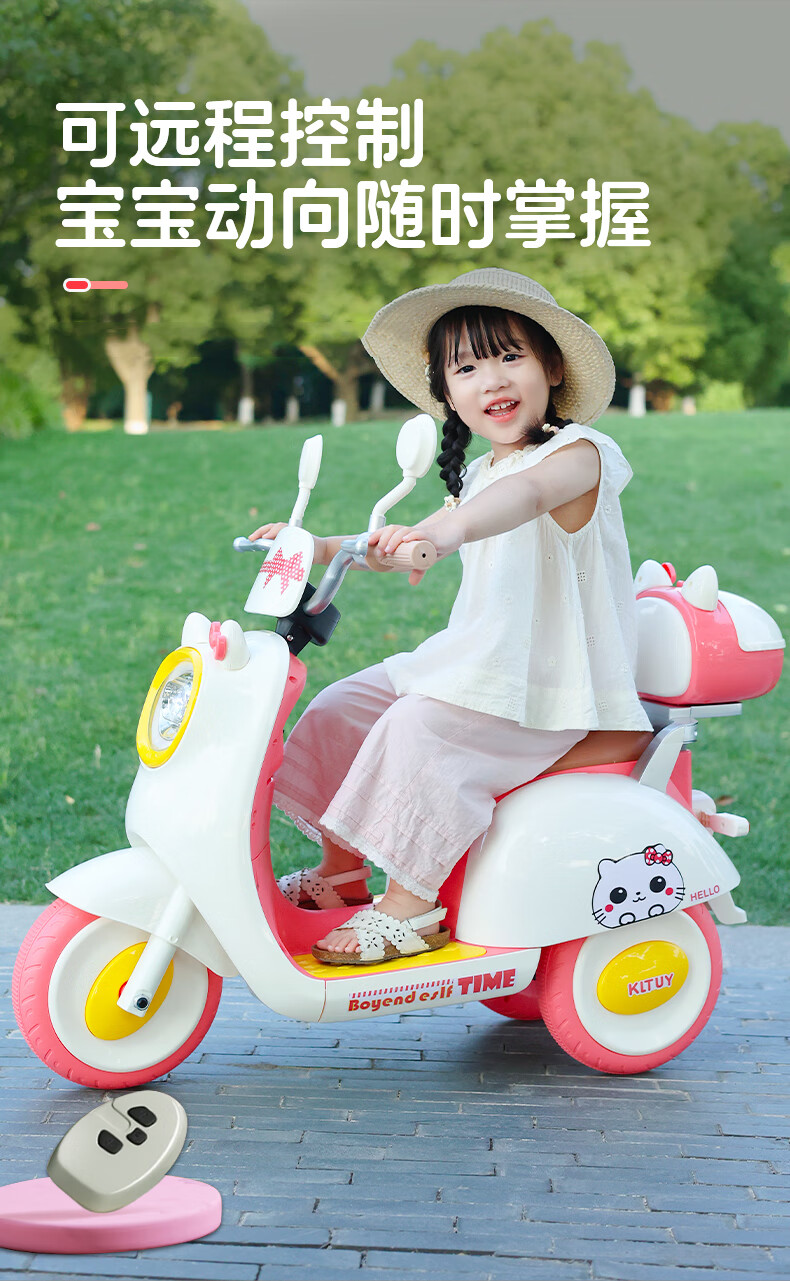 Hot Leopard children's electric motorcycle tricycle 3-6 years old toy car can sit on a person and remote control children's motorcycle one-year-old gift top model Barbie powder + dual drive + remote control