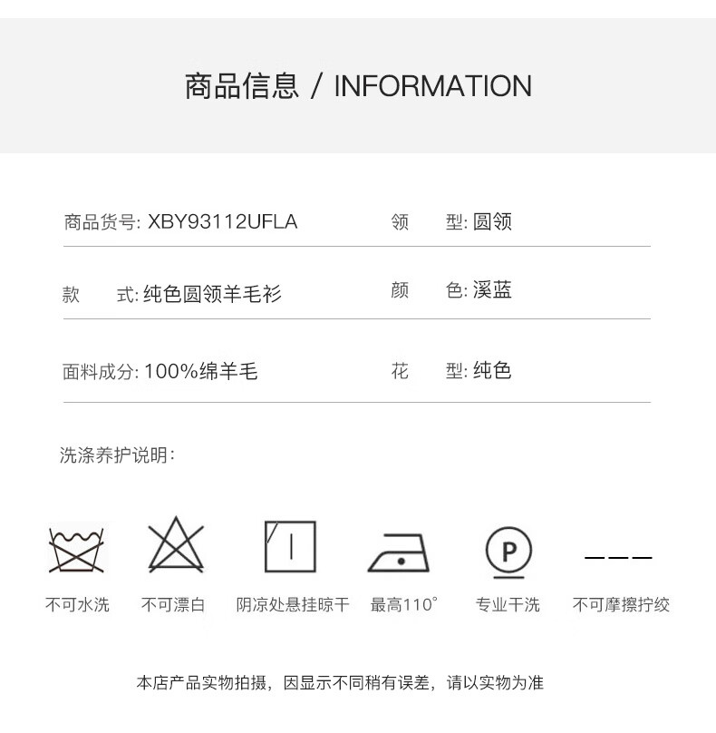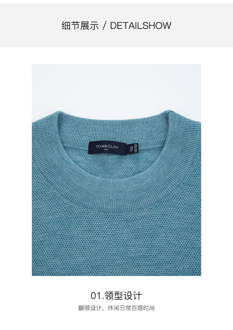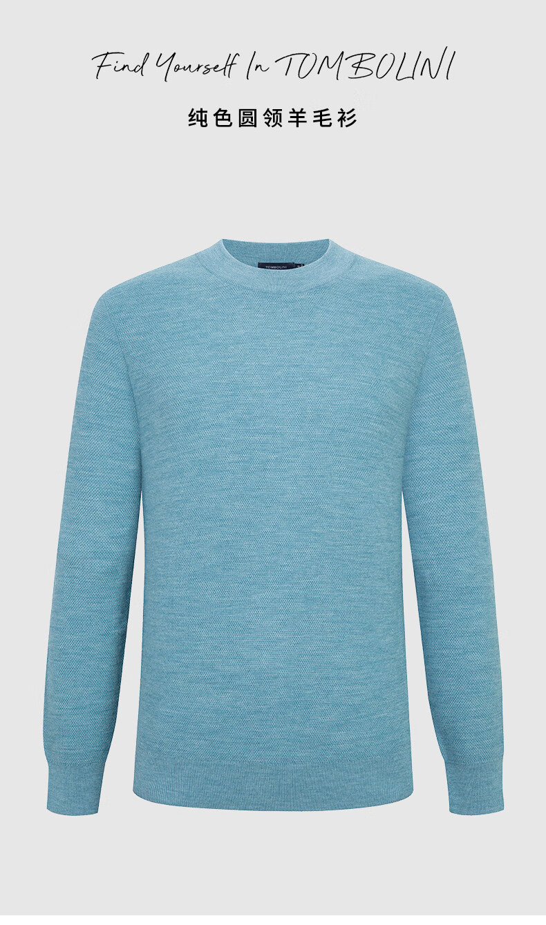 Dongbolini Autumn and Winter New Men's Round Neck Wool Sweater Solid Color Basic Warm Sweater Trendy Creek Blue One Size 46