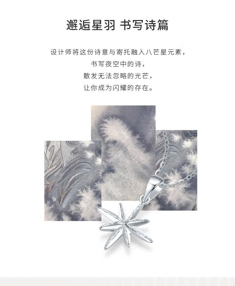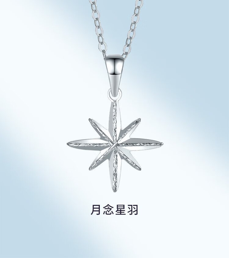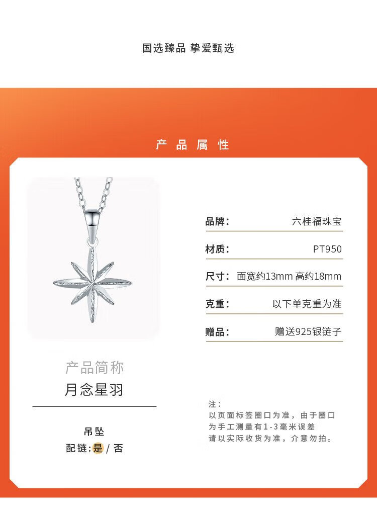 Liuguifu Jewelry Platinum Pendant Women's pt950 Platinum Moon Reading Star Feather Pendant Birthday Gift Necklace 0.85g