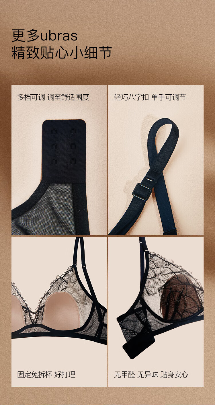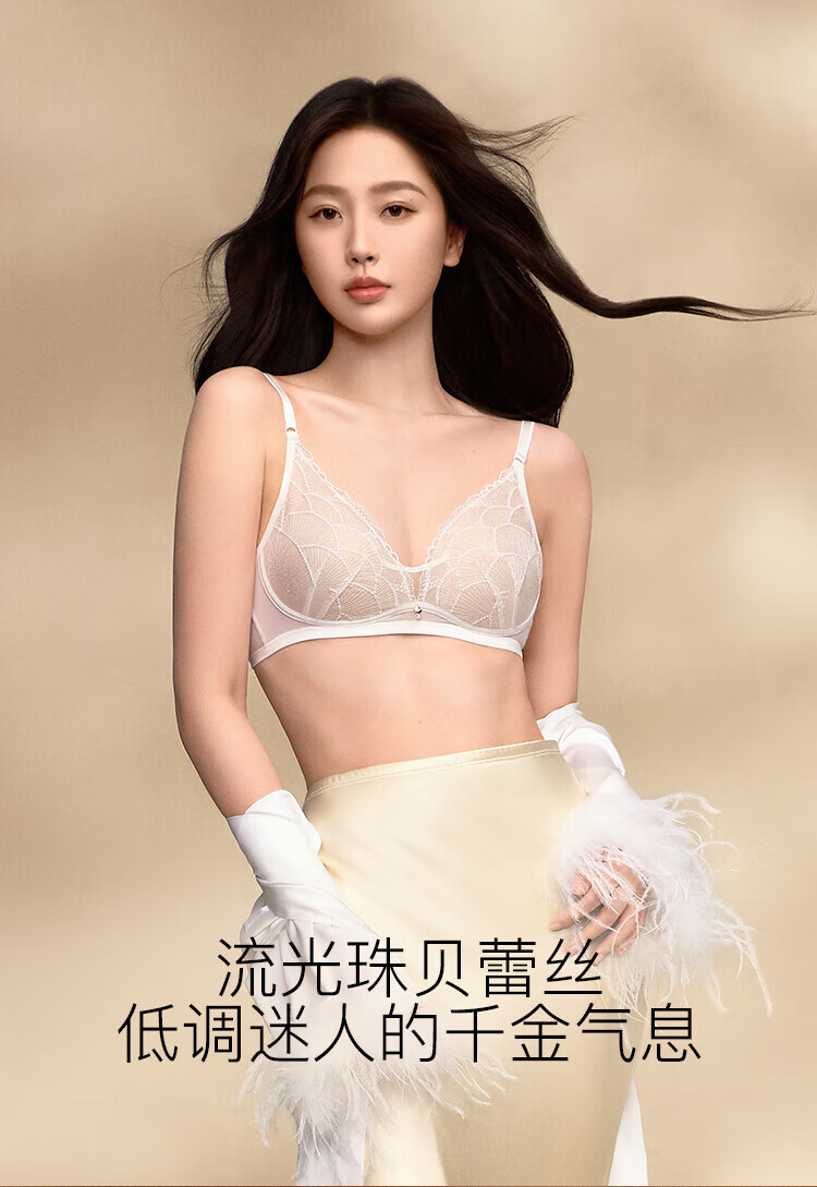 Ubras Yu Shuxin's same style of pearl lace wedding light luxury rabbit ear cup big breasts small bra women's underwear low heart rabbit ear cup set velvet red M 75A/B
