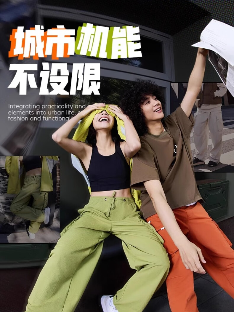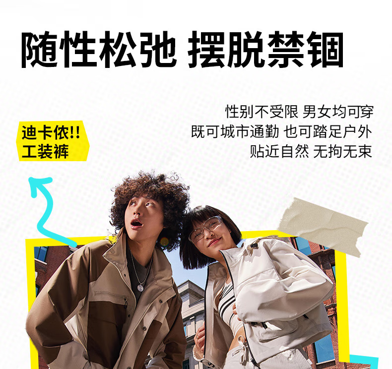 Decathlon SPW urban functional overalls for men and women, loose, sun-proof, water-repellent, outdoor casual, versatile sports pants, Pearl Rice XS