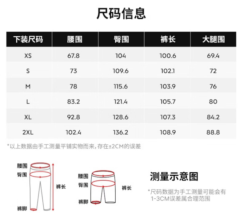 Outseam (cm) 99 cm 101.5 cm 104 cm 106.5 cm 109 cm