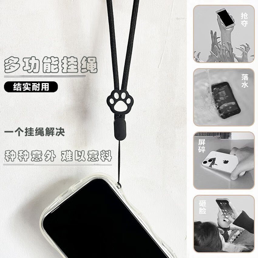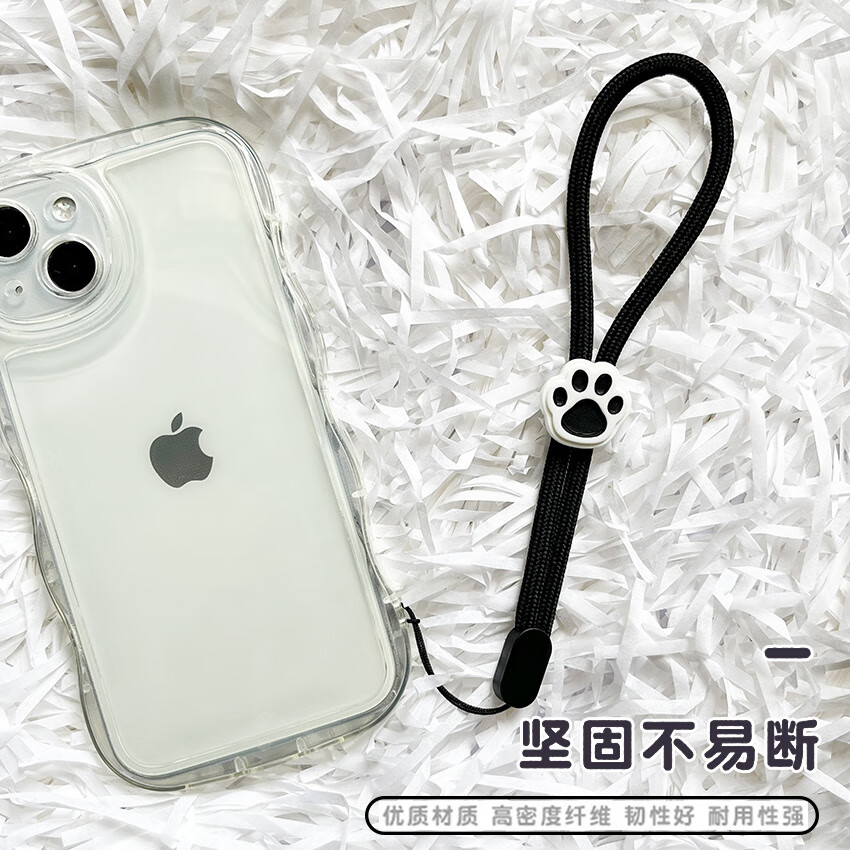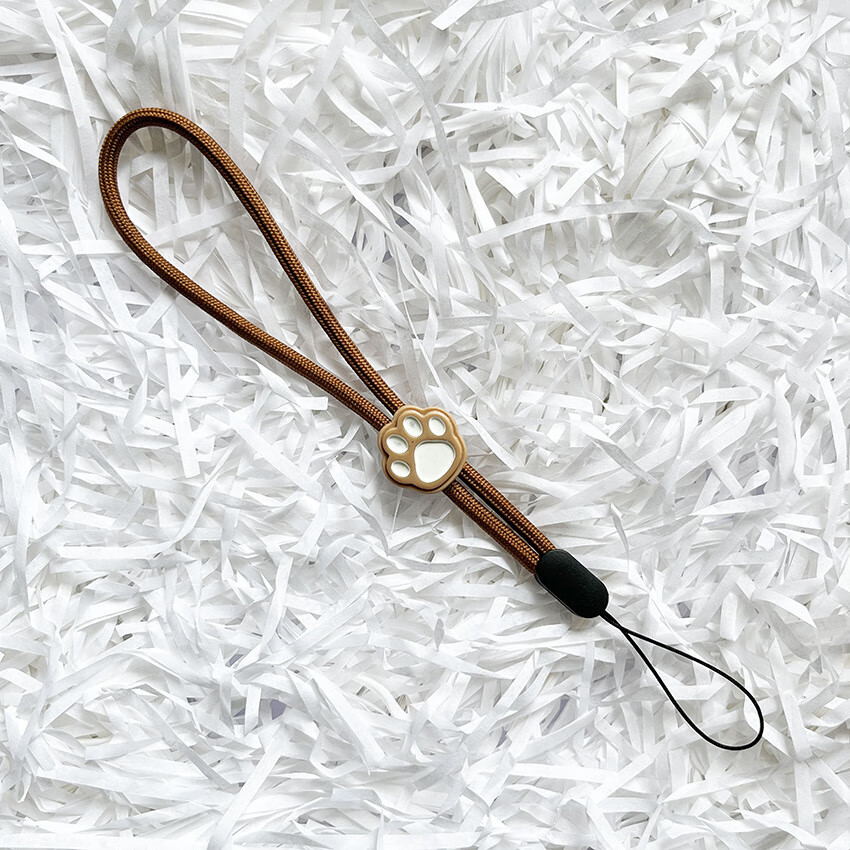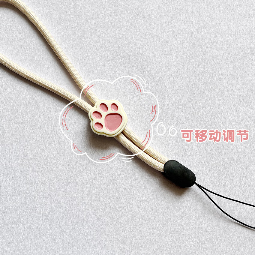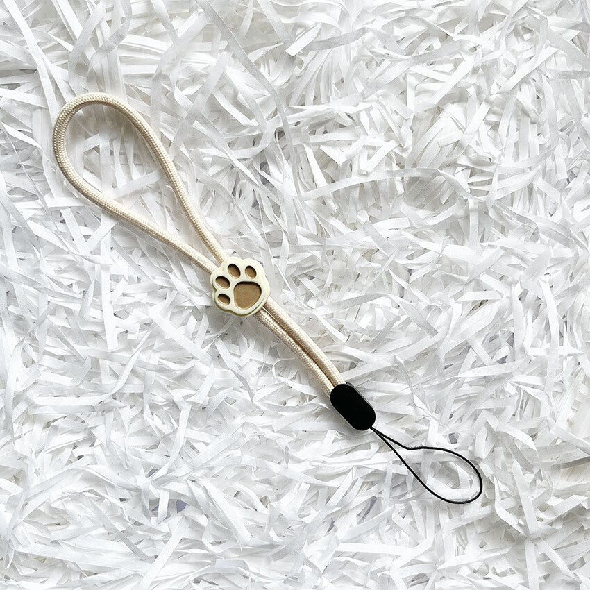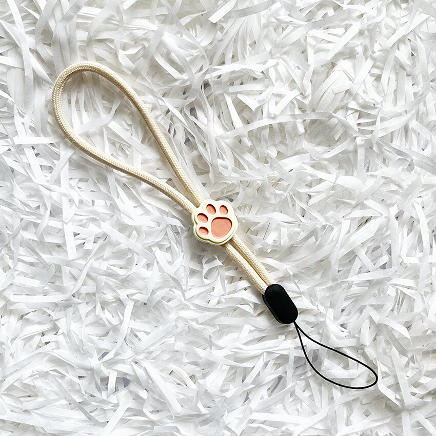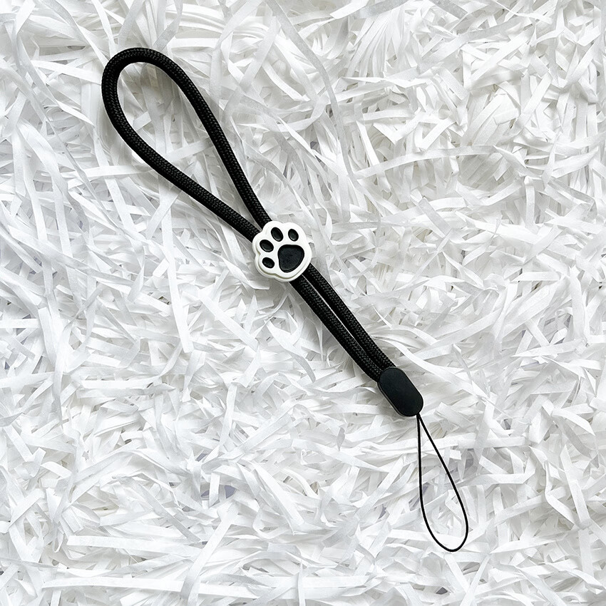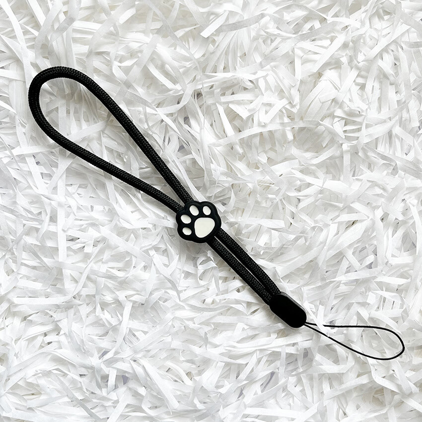Pachin cartoon black and white cute cat paw mobile phone short lanyard adjustable wrist rope anti-fall and anti-lost USB flash drive ccd pendant trend antique white-white powder cat paw one pack 1 piece of real hair