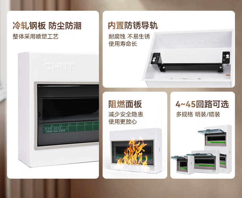 Chint (CHNT) distribution box strong current box PZ30G-4-AZ household distribution box distribution lighting box circuit breaker installation box air switch box box surface mounted 24 circuits (single row)