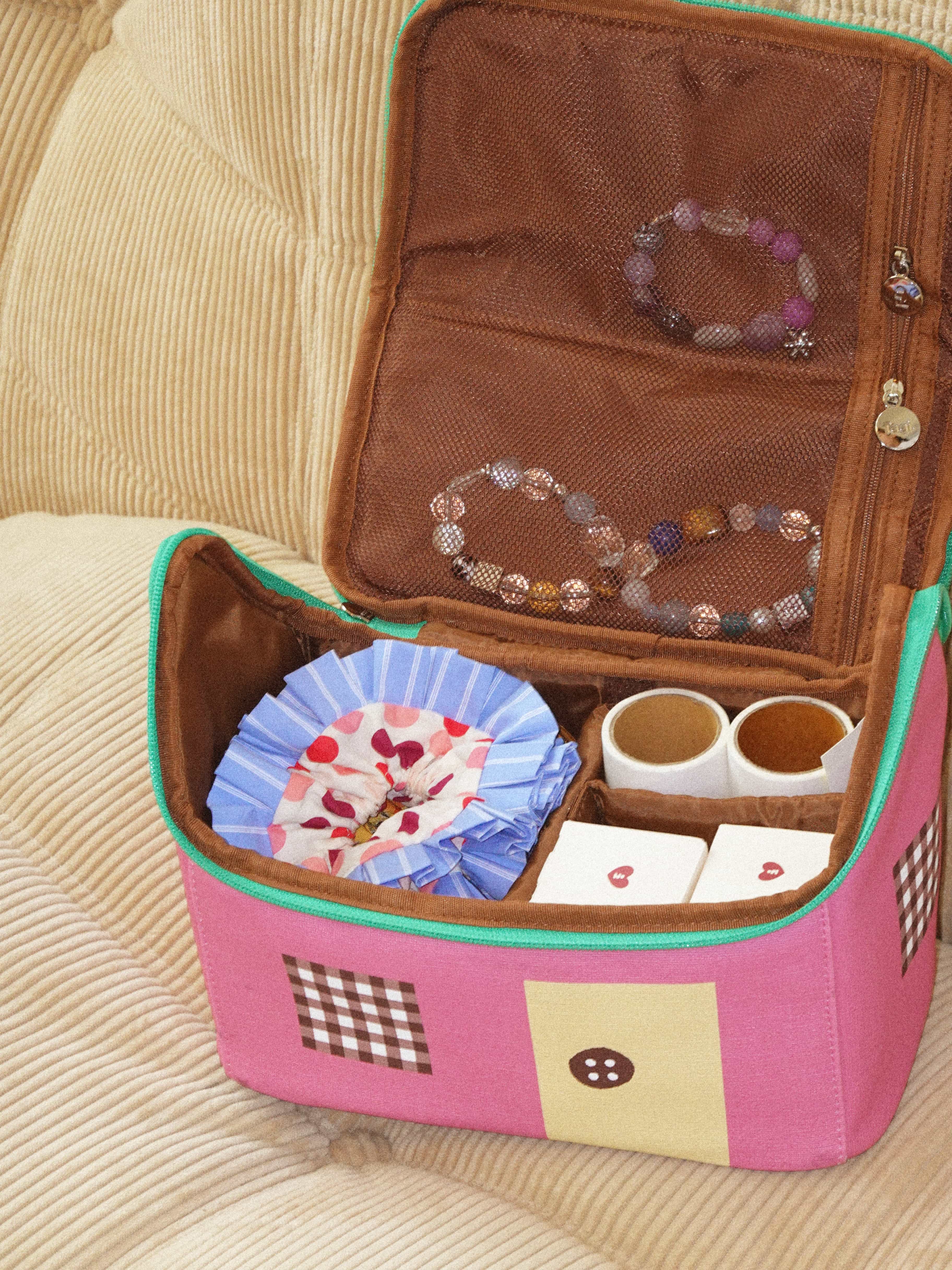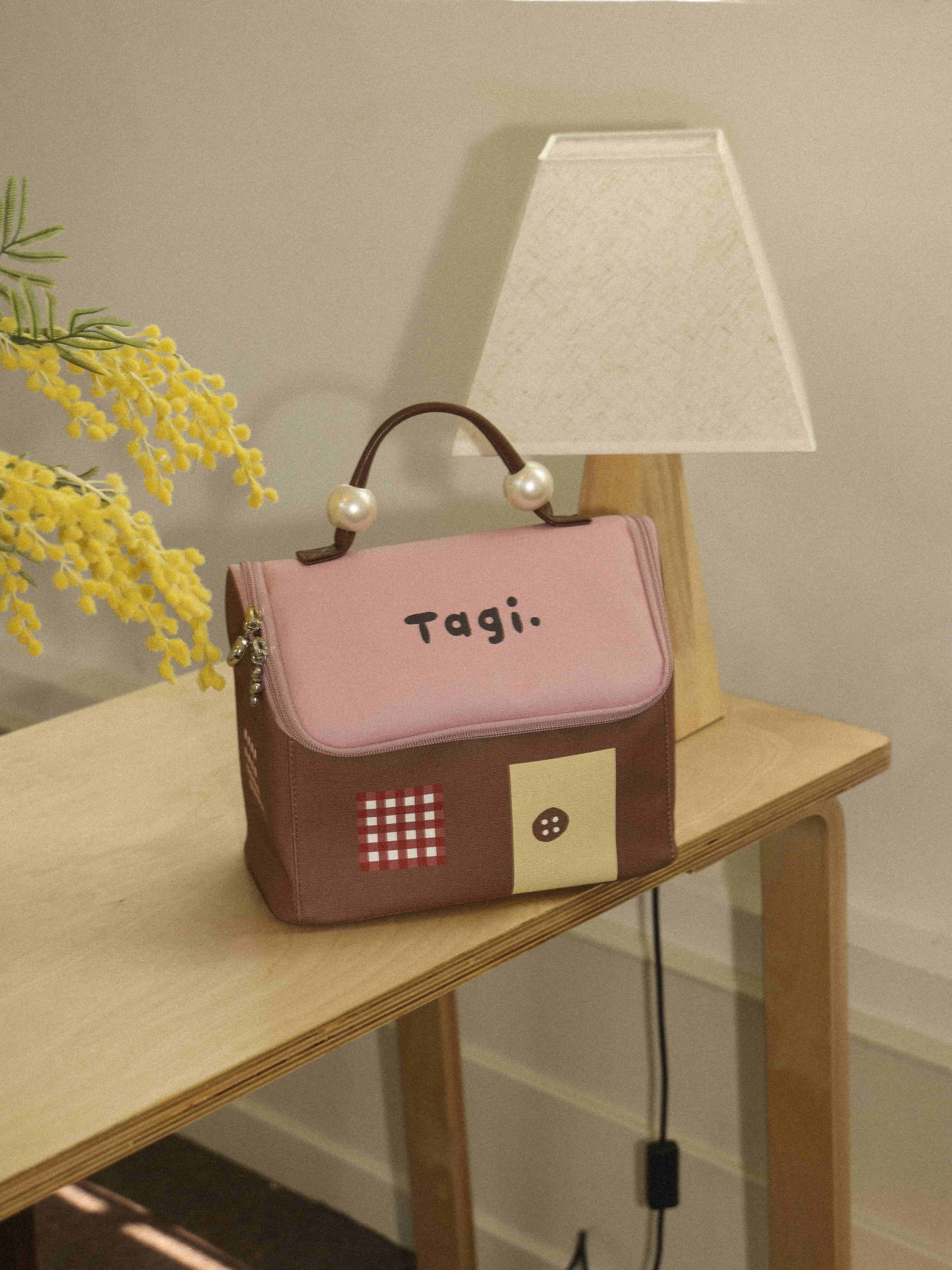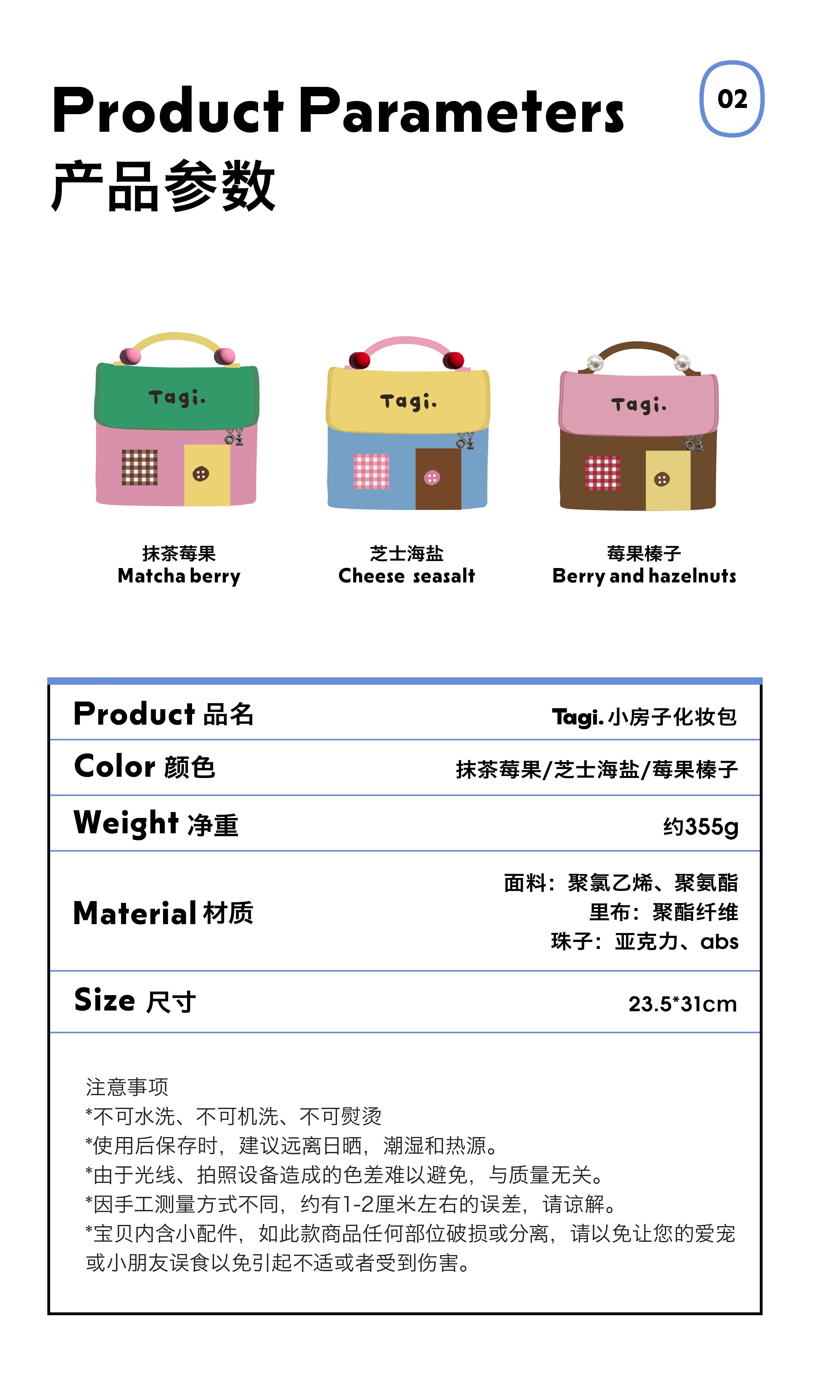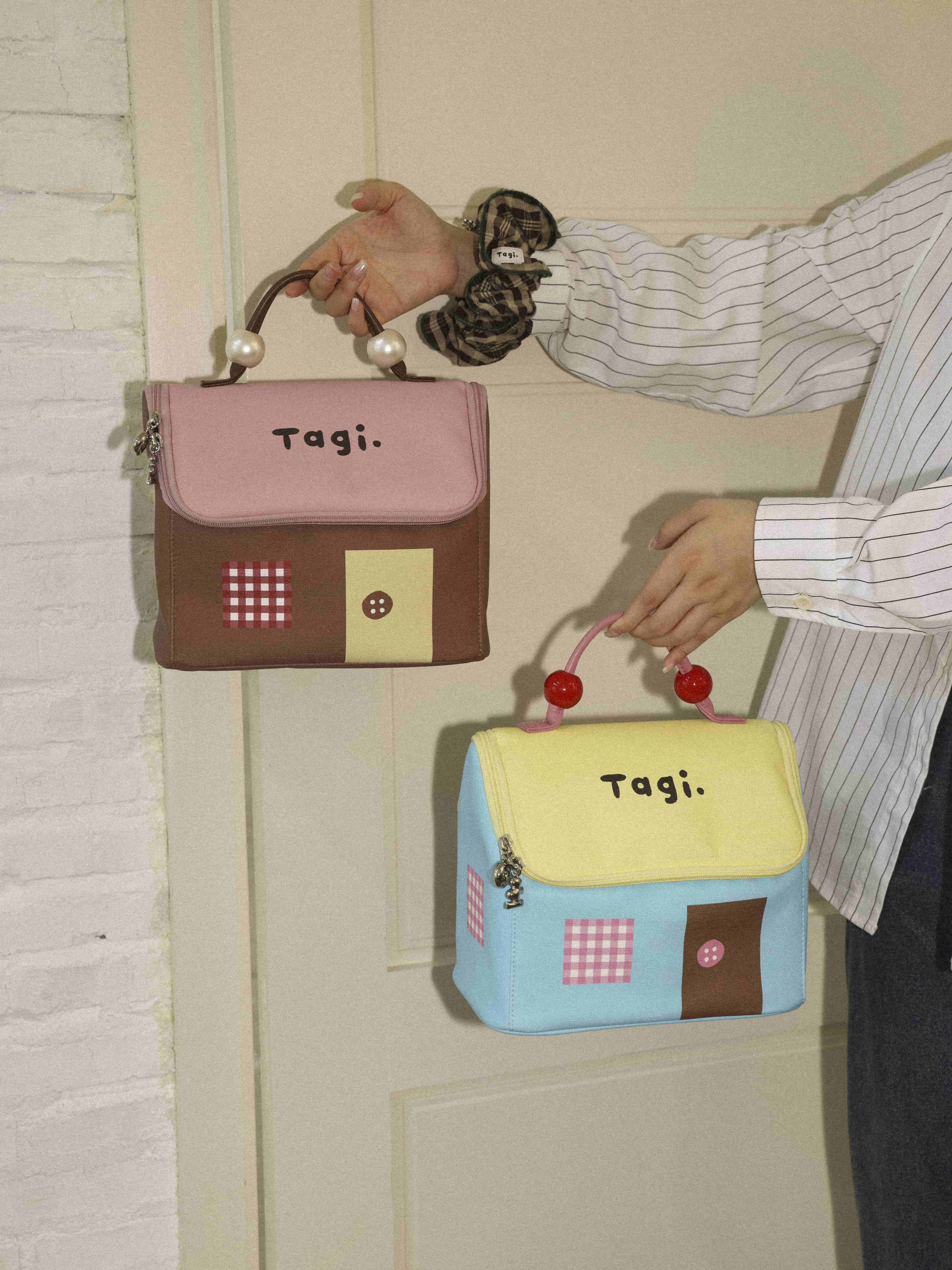 Tagi.Smart little house waterproof leather portable toiletry bag large capacity storage bag cosmetic bag berry hazelnut