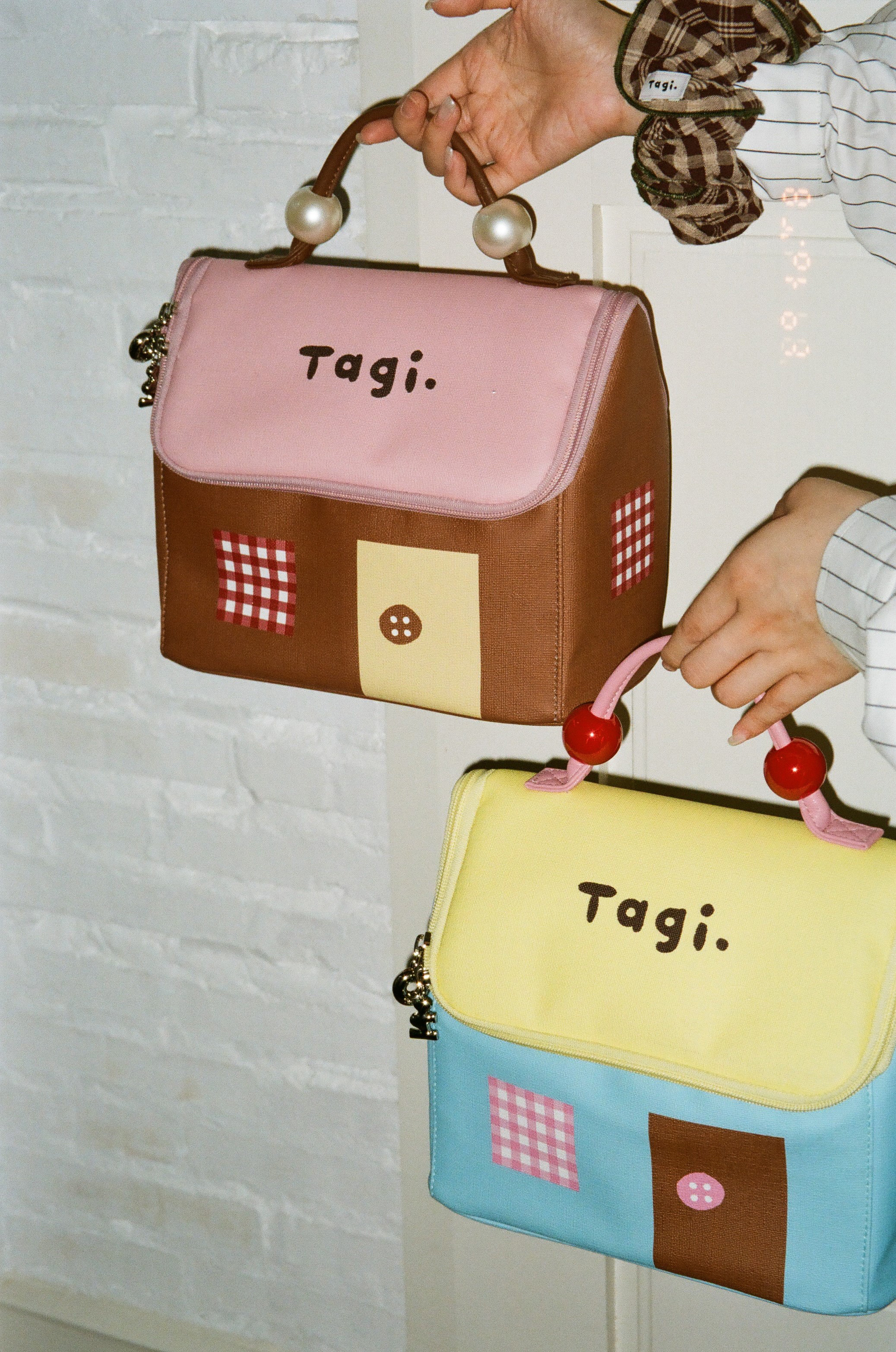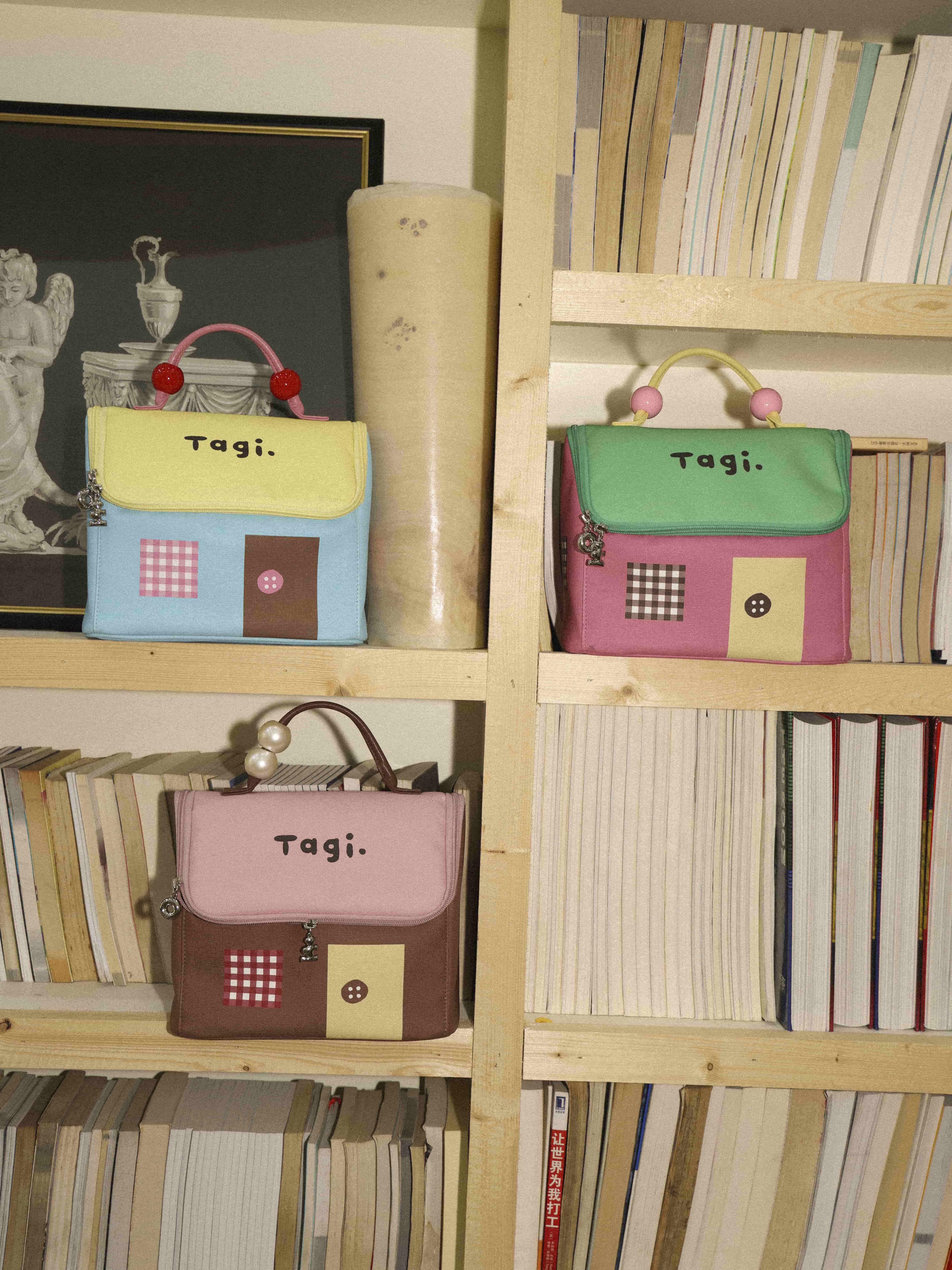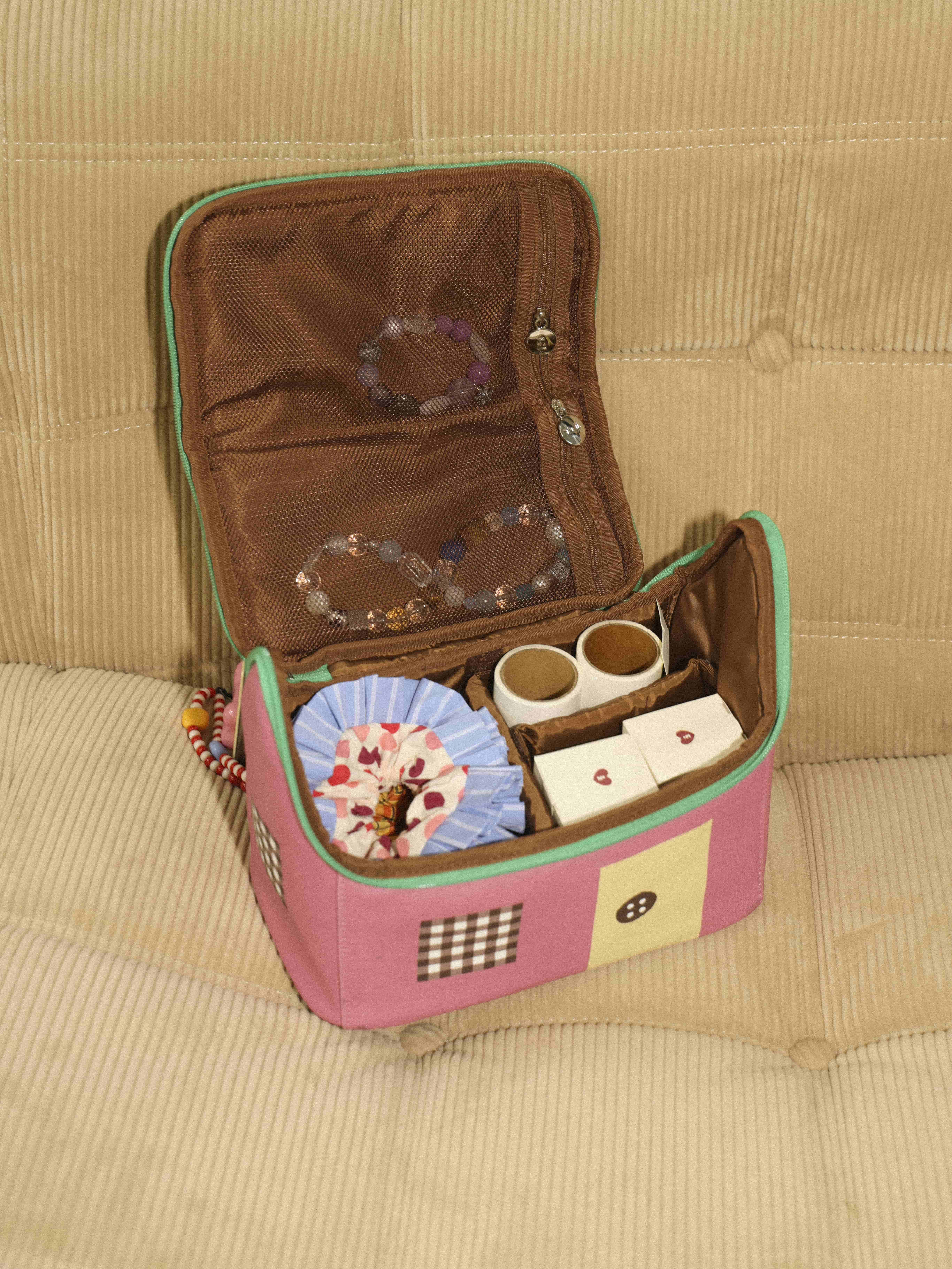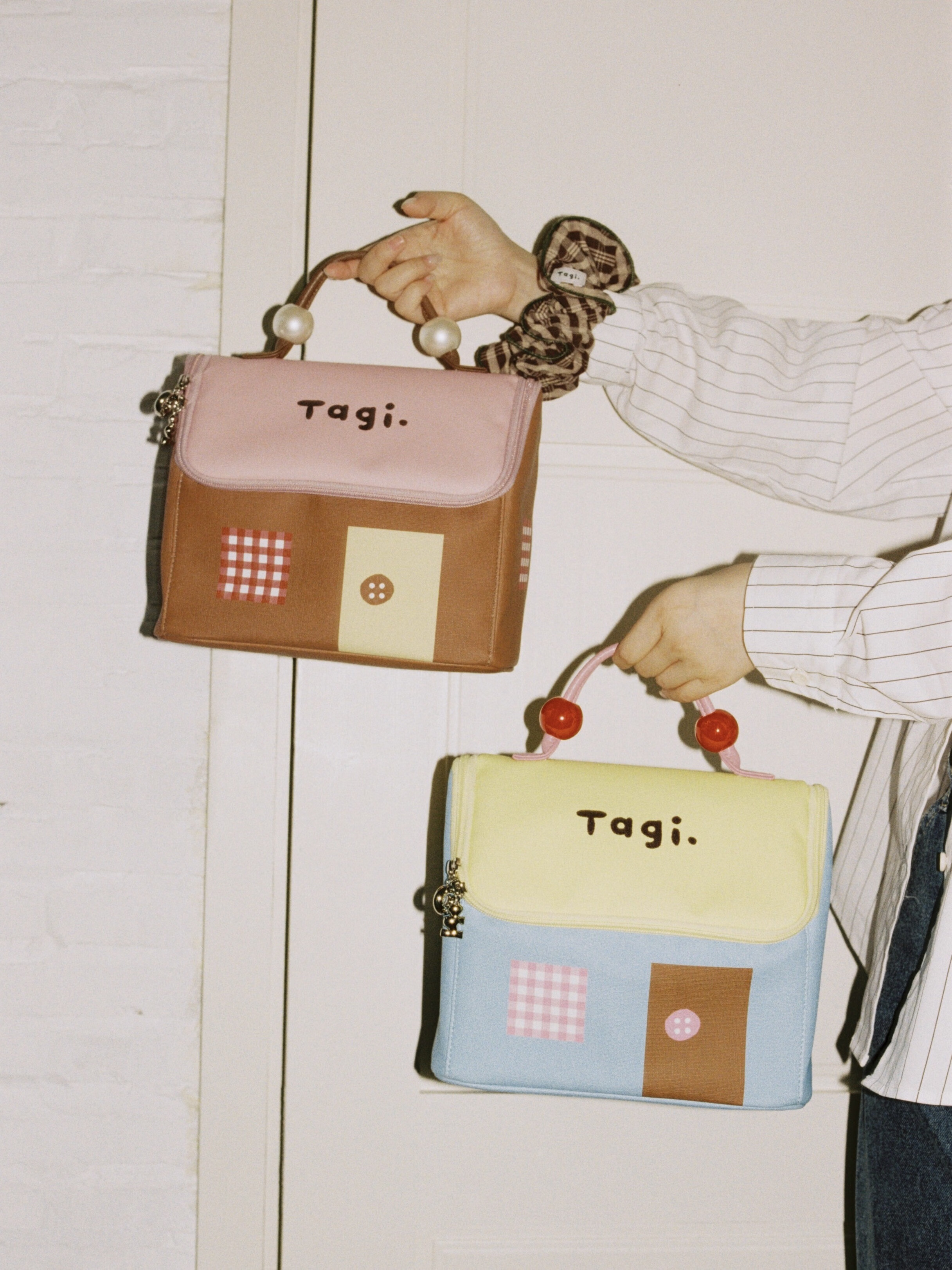 Tagi.Smart little house waterproof leather portable toiletry bag large capacity storage bag cosmetic bag berry hazelnut