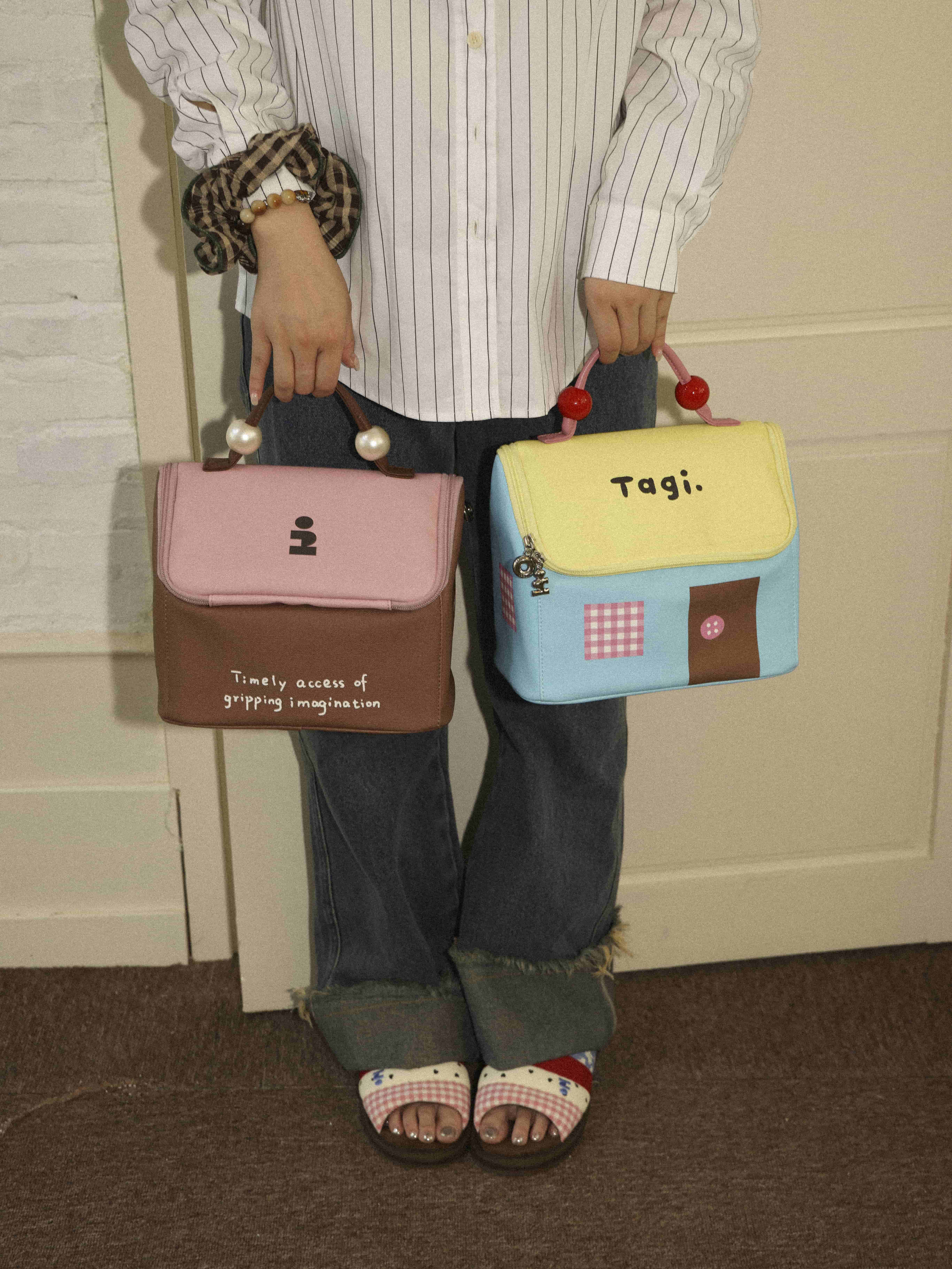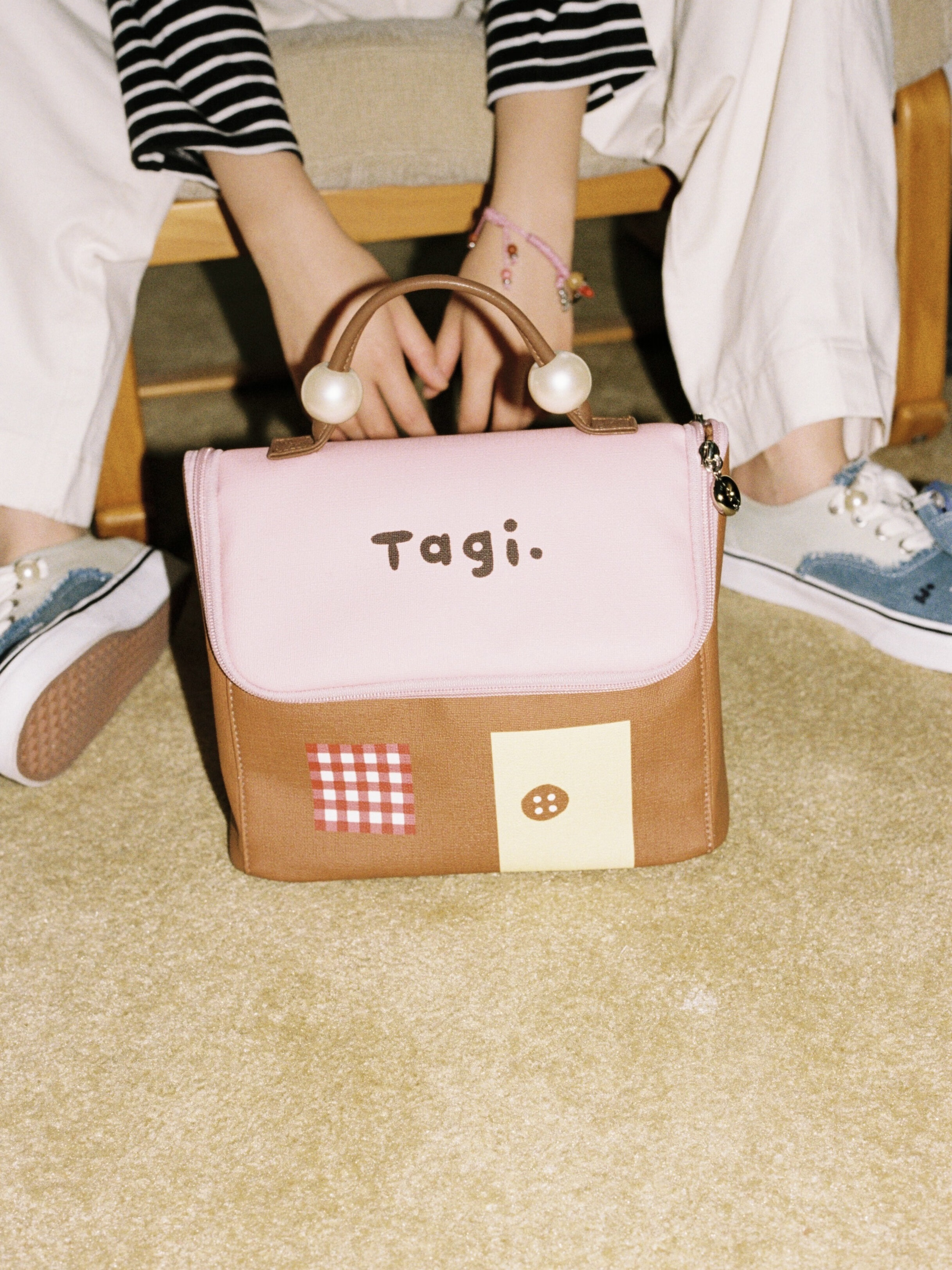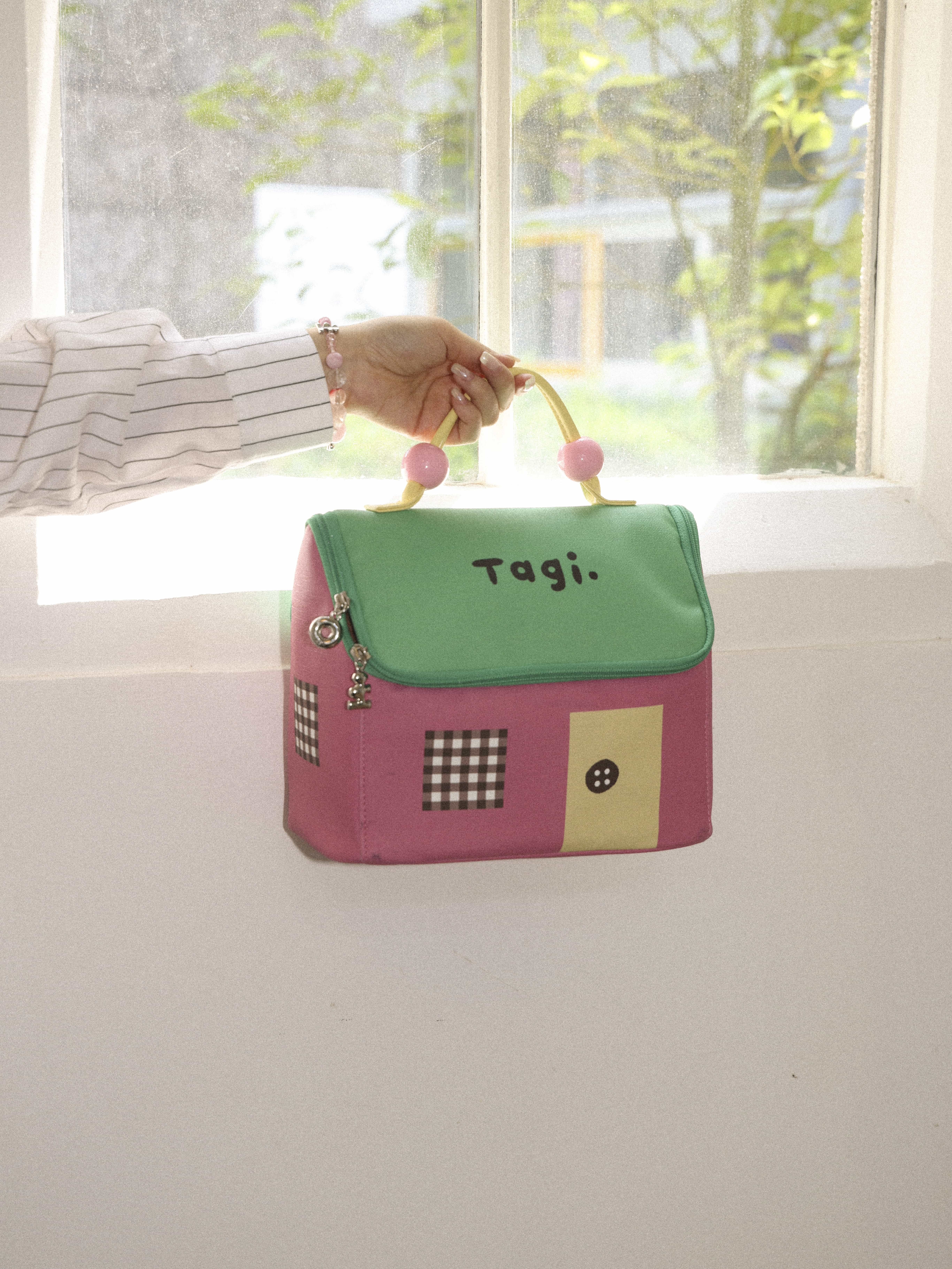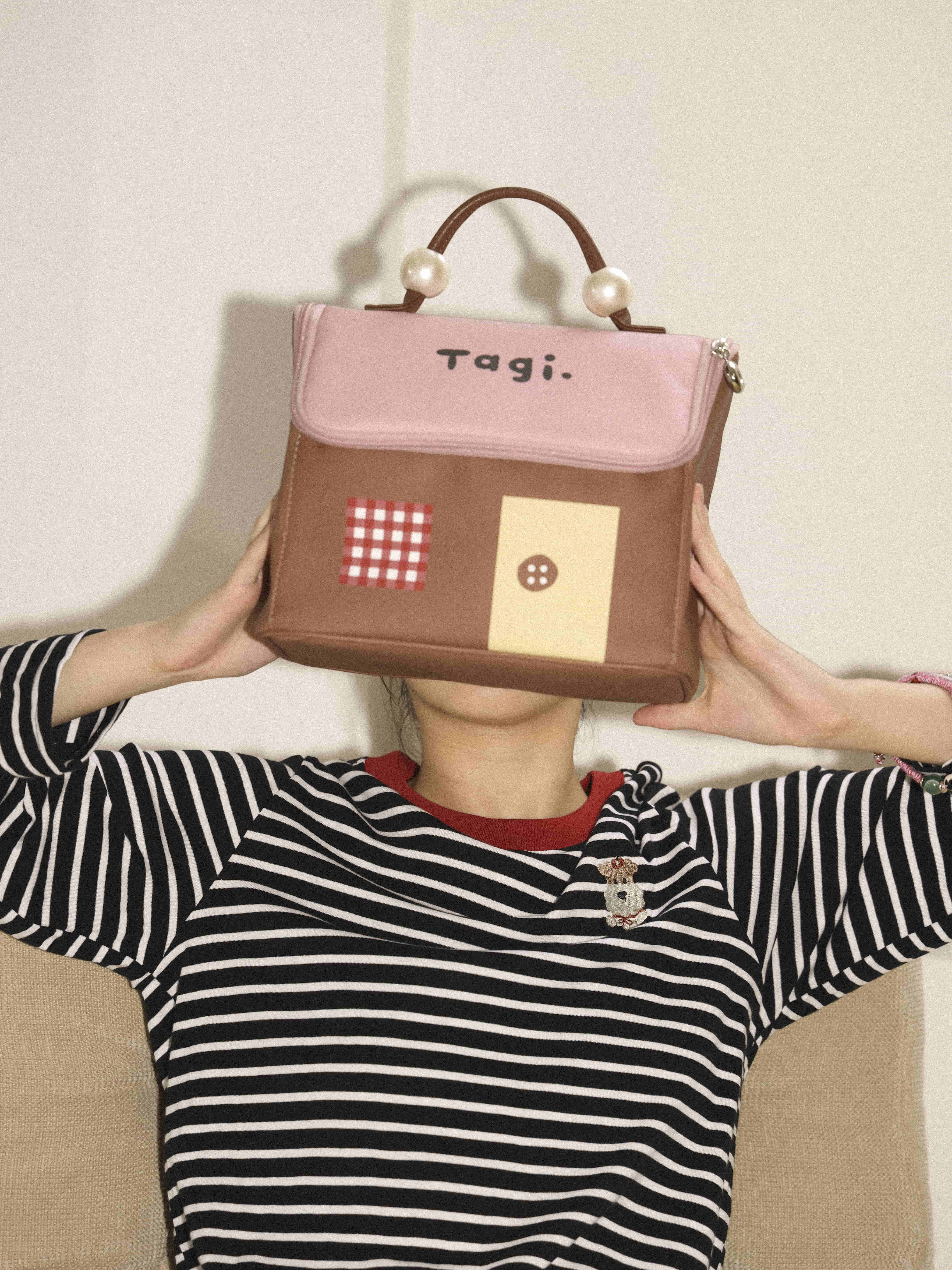 Tagi.Smart little house waterproof leather portable toiletry bag large capacity storage bag cosmetic bag berry hazelnut