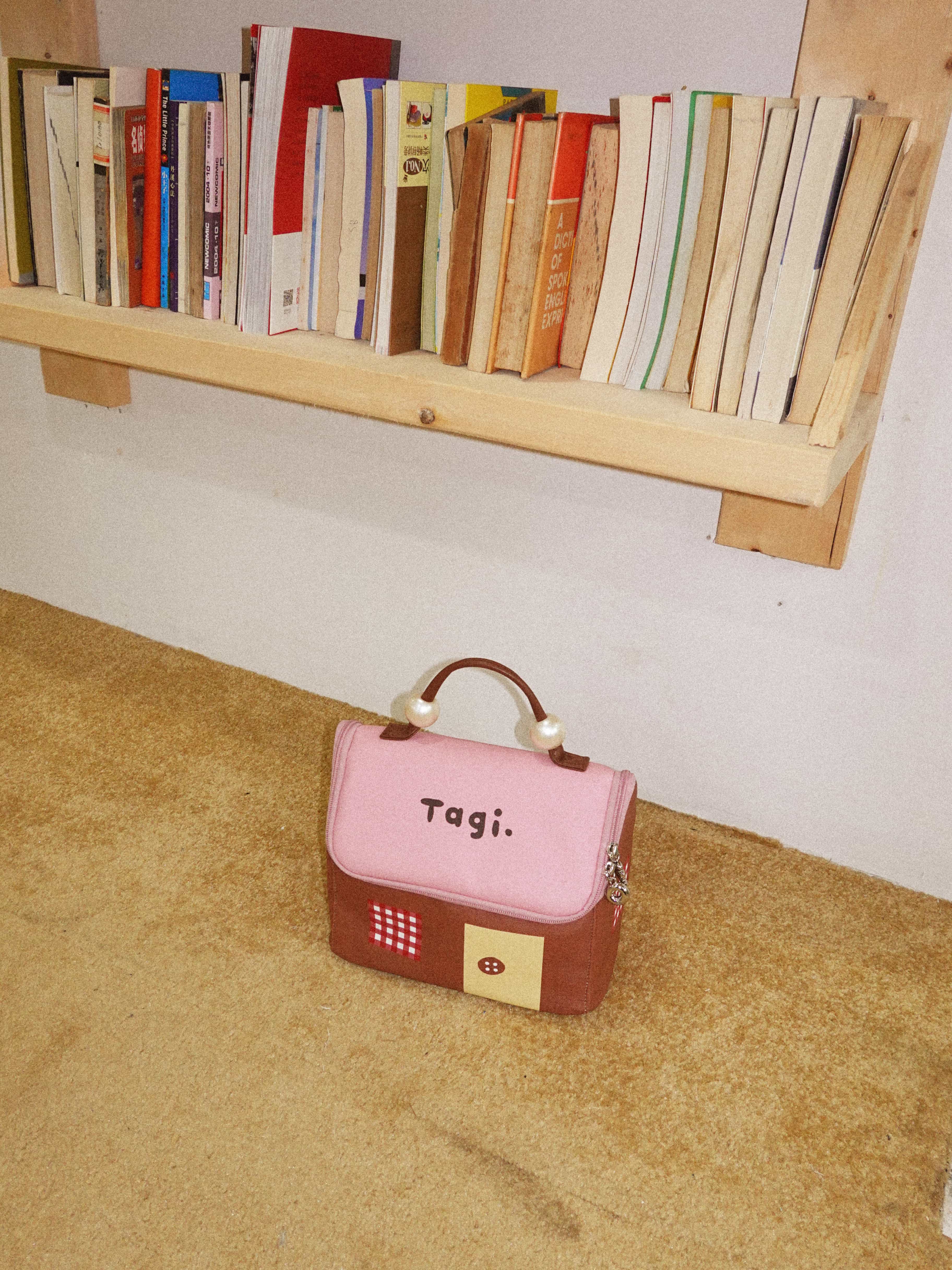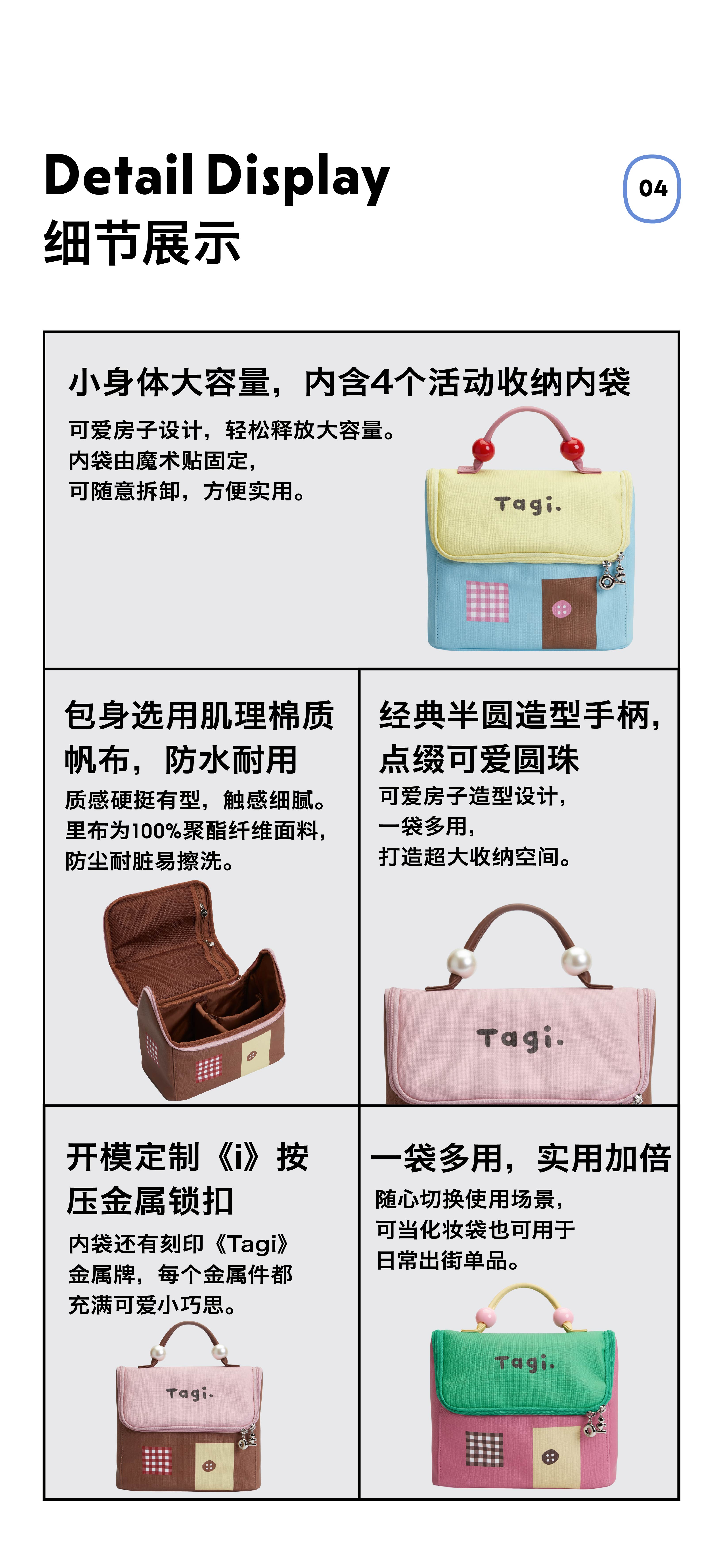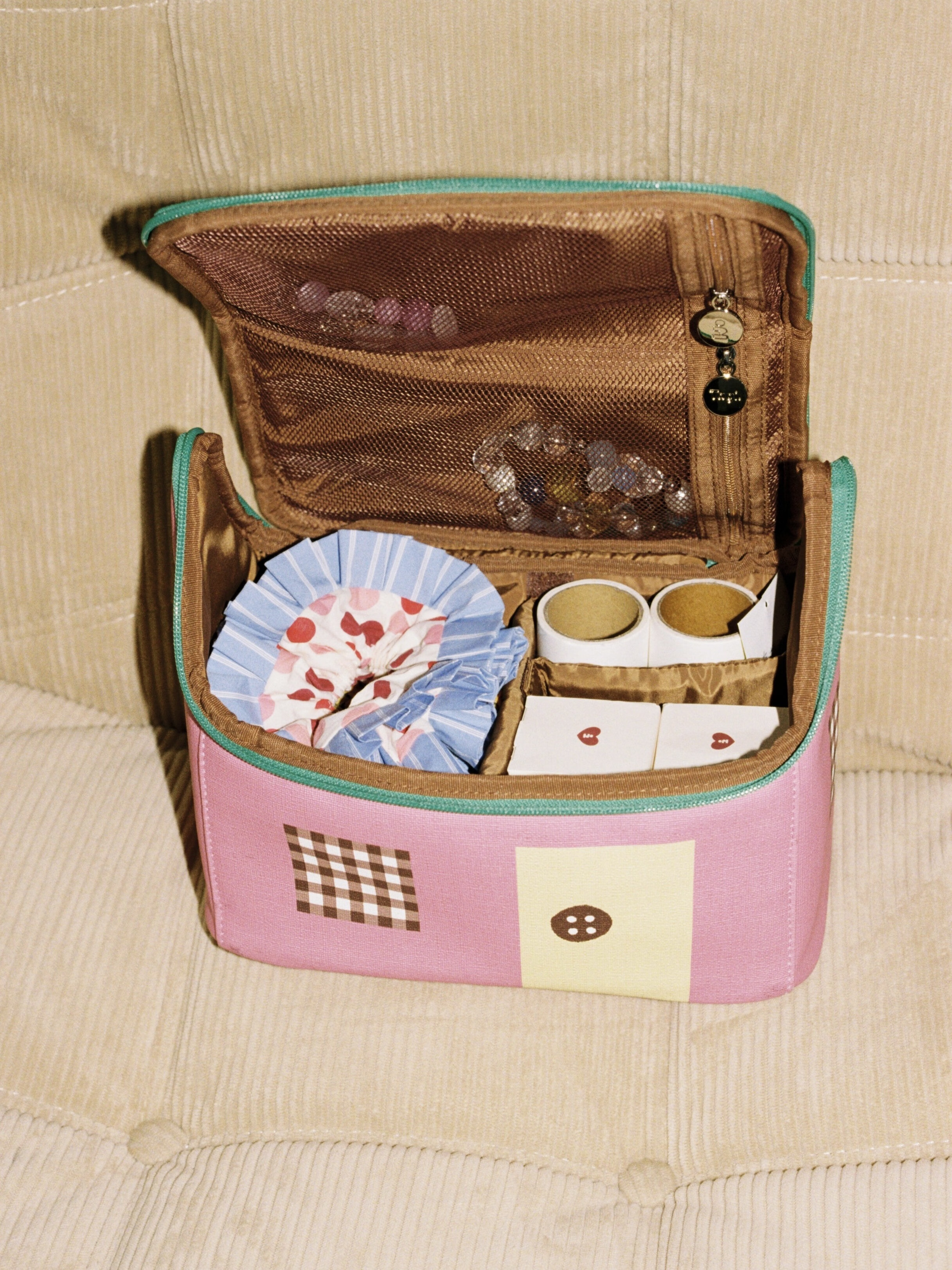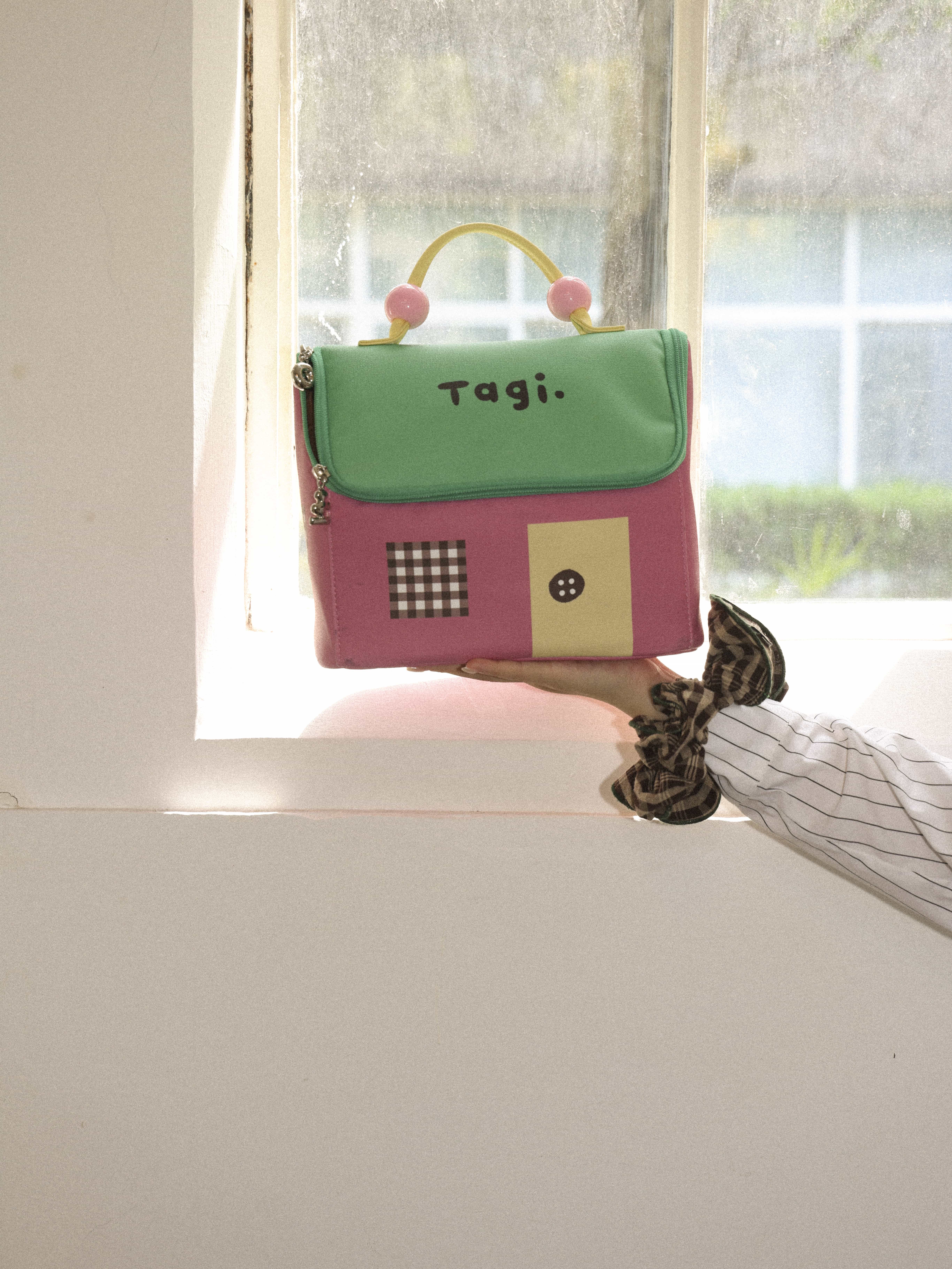 Tagi.Smart little house waterproof leather portable toiletry bag large capacity storage bag cosmetic bag berry hazelnut