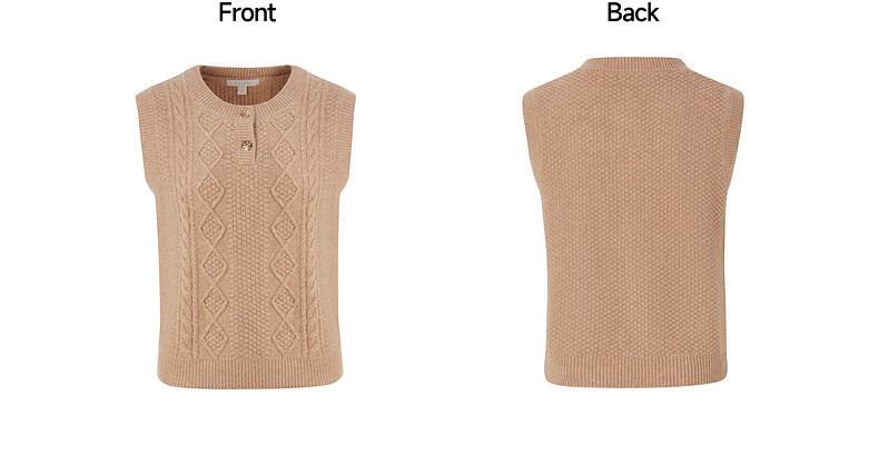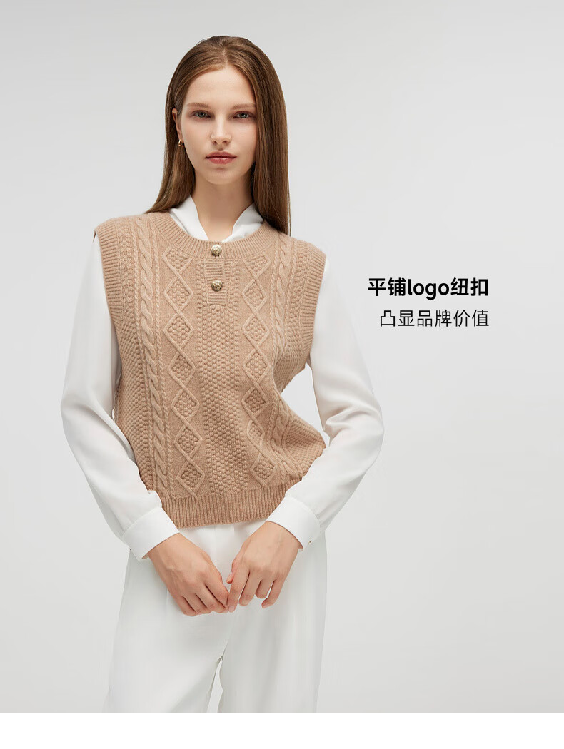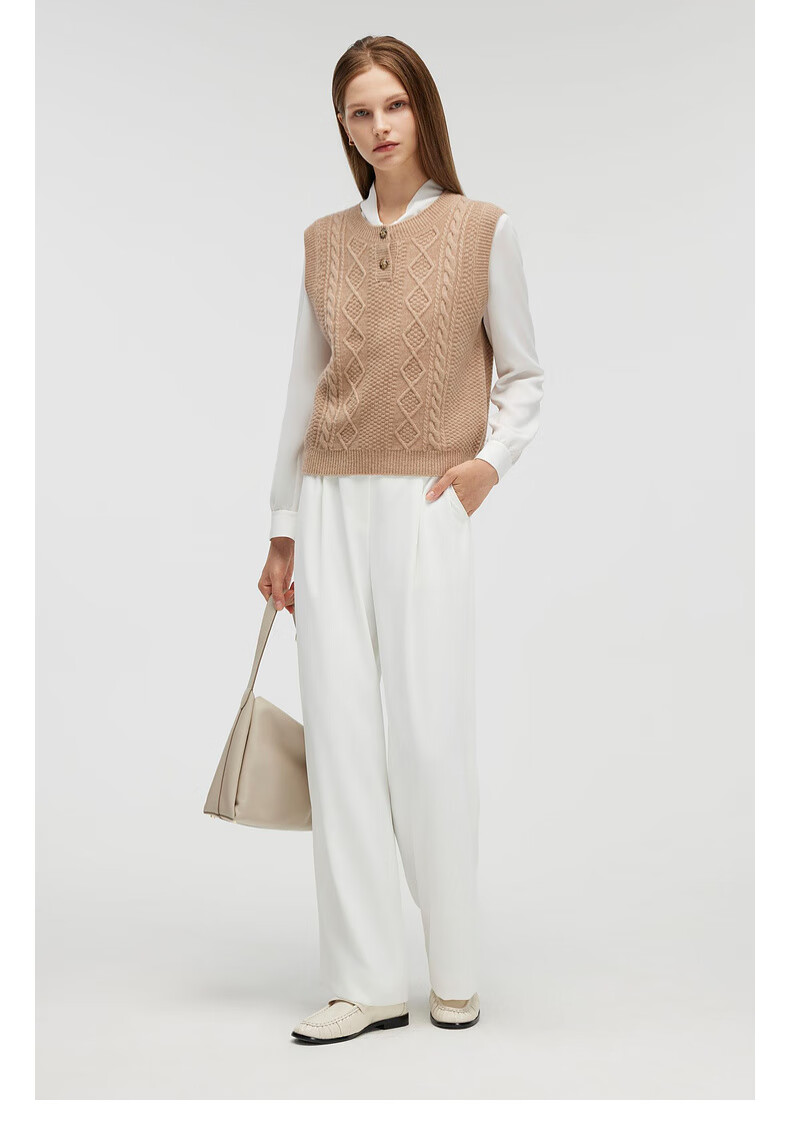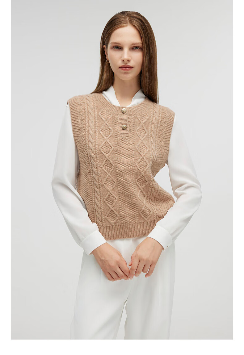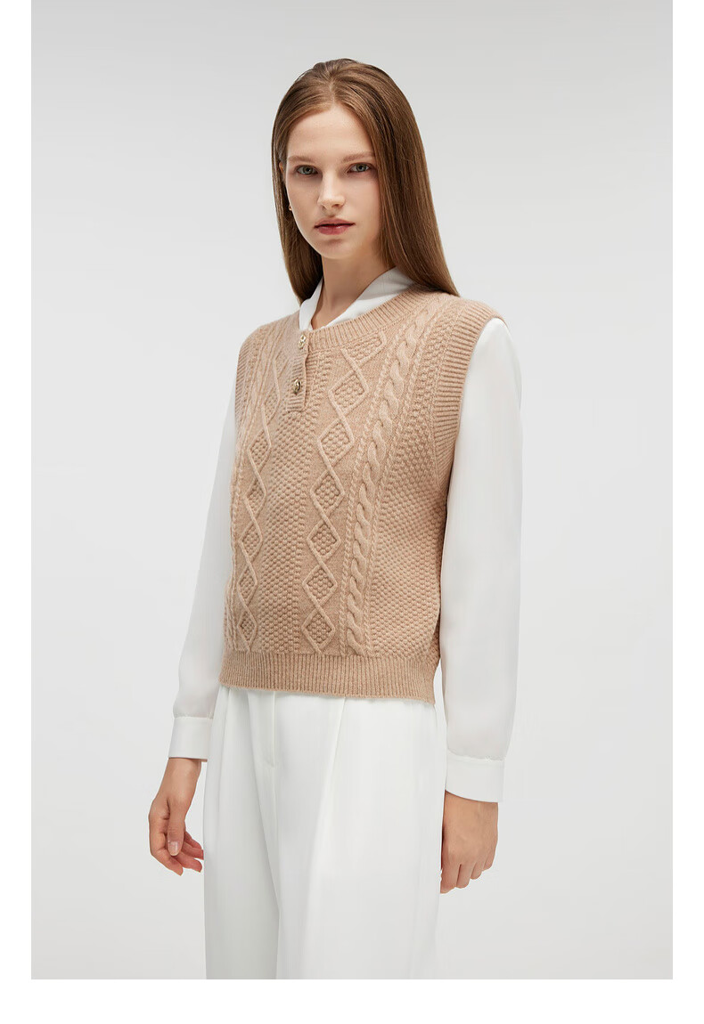PRICH 100% sheep wool textured knitted vest winter new sleeveless casual top for women 64 cream S 155