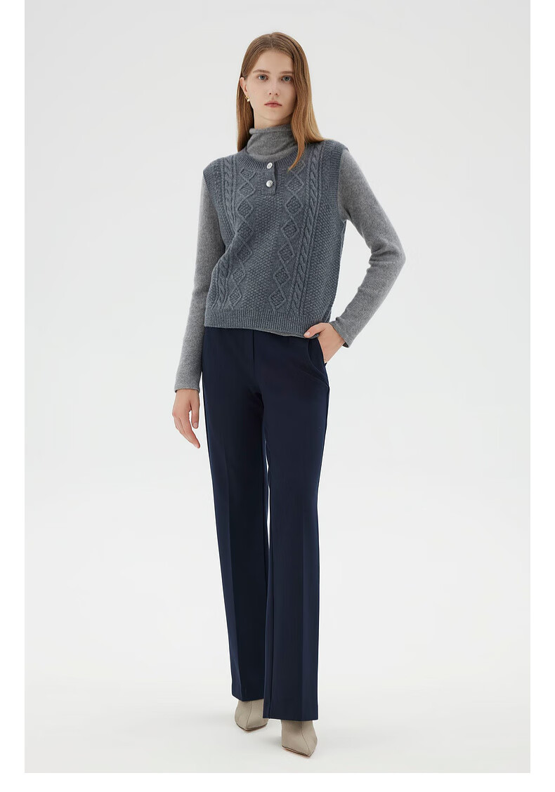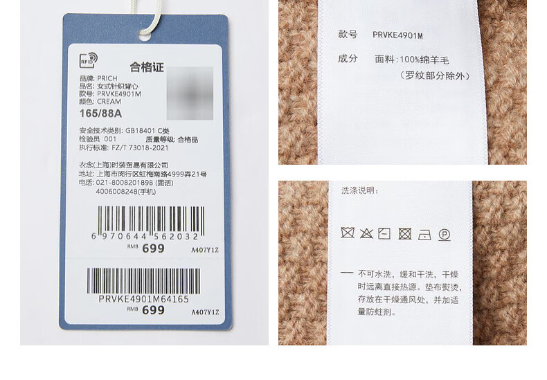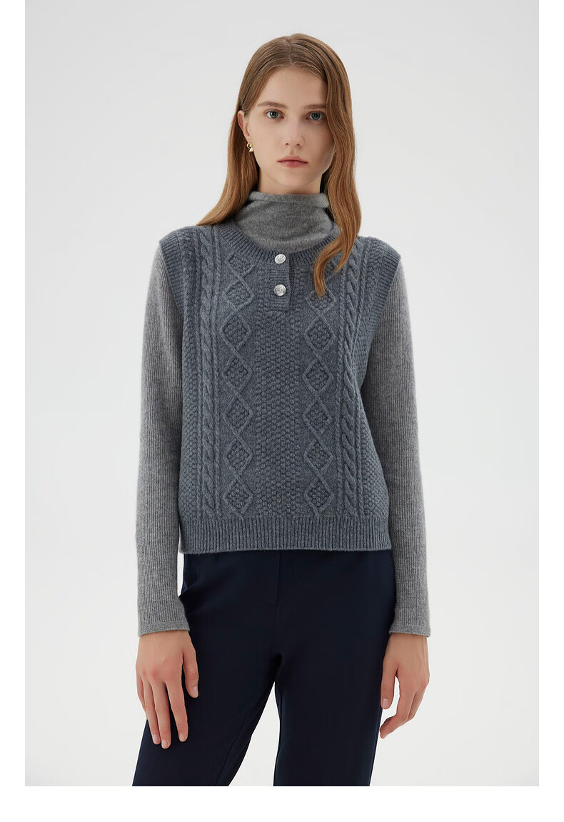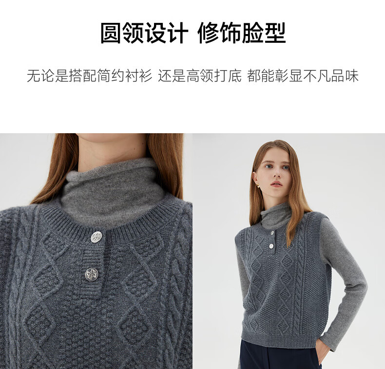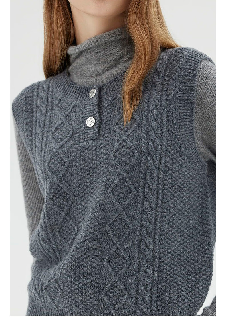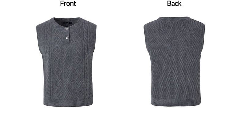 PRICH 100% sheep wool textured knitted vest winter new sleeveless casual top for women 64 cream S 155