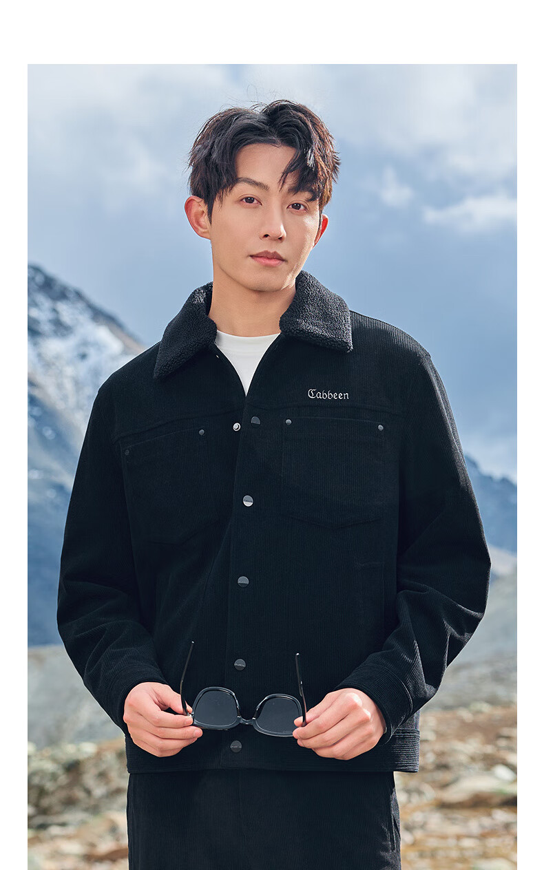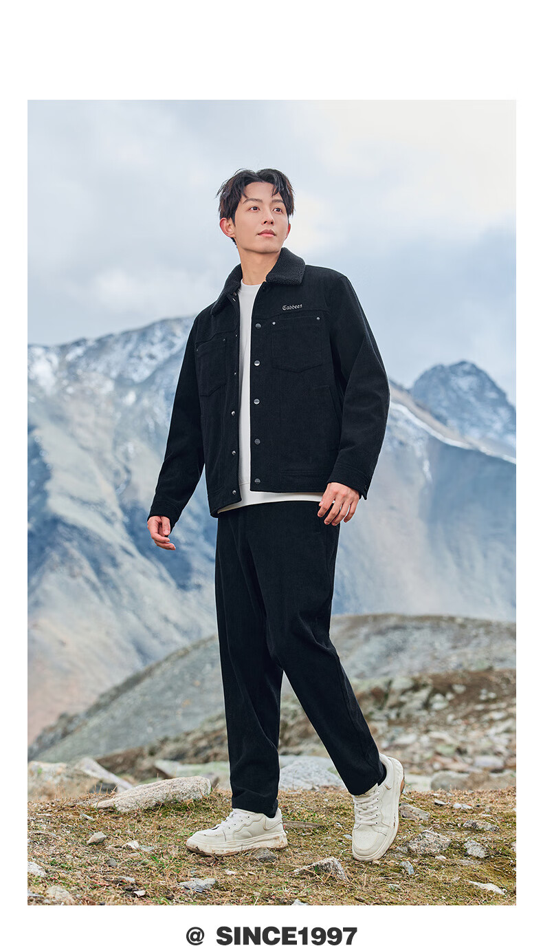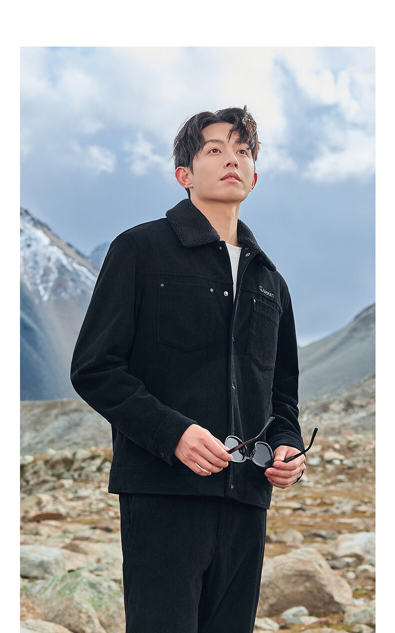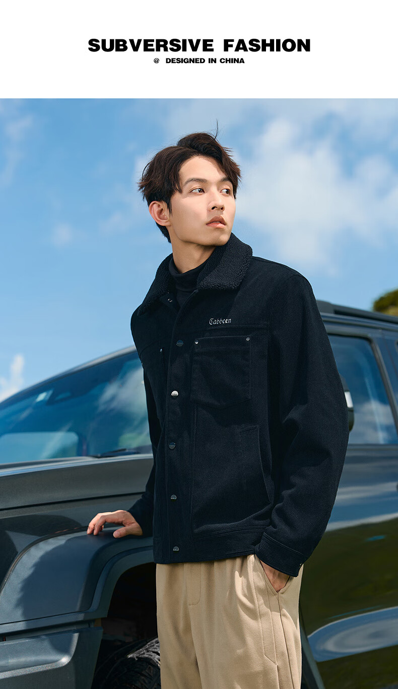 Cabin plus velvet corduroy jacket men's loose warm jacket 2025 autumn and winter new retro street trend top anthracite 01 L /175/50