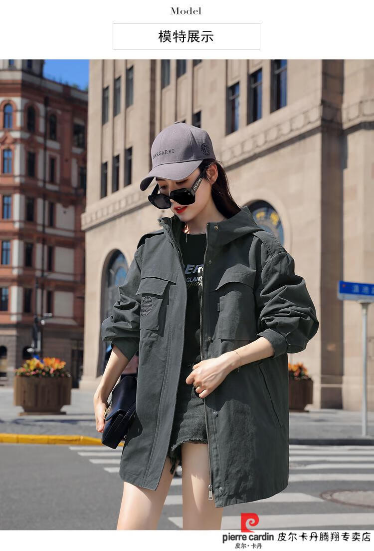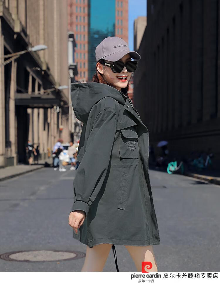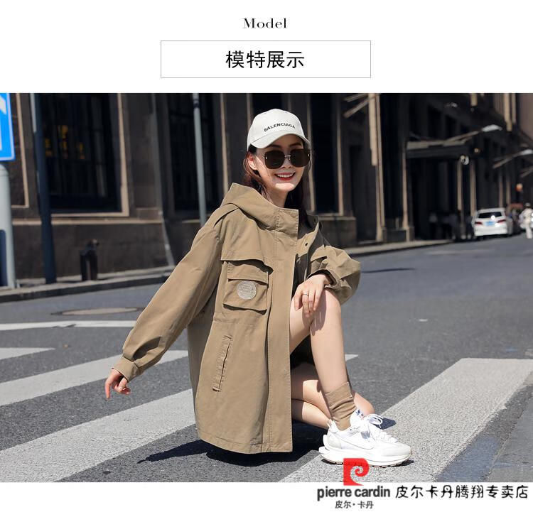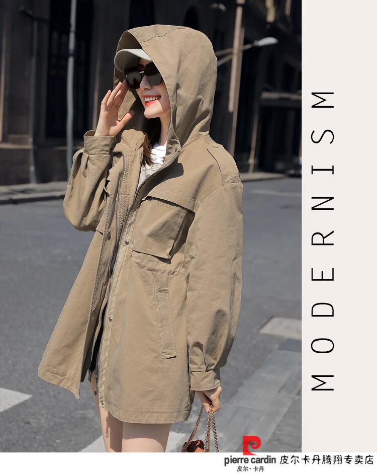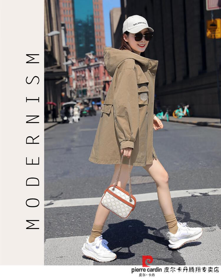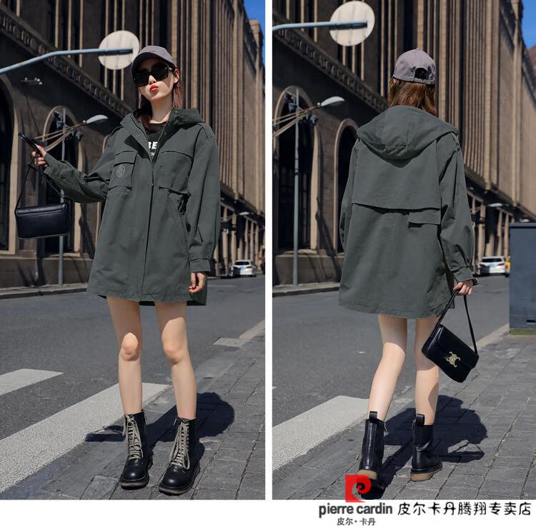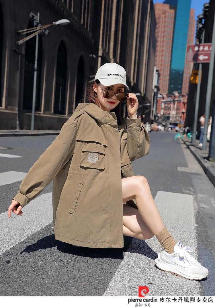 Pierre Cardin windbreaker women's mid-length 2025 spring and autumn new Korean version loose small high-end fashion workwear short coat trendy Khaki M