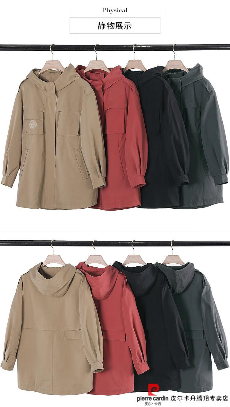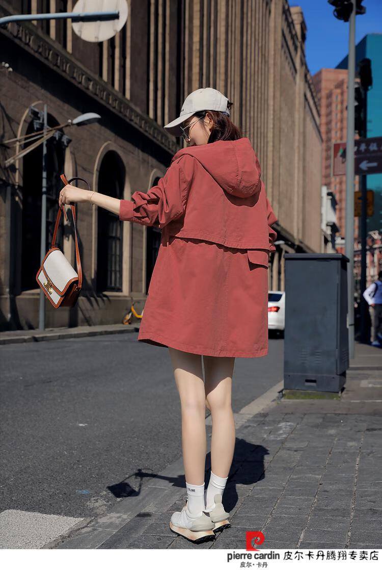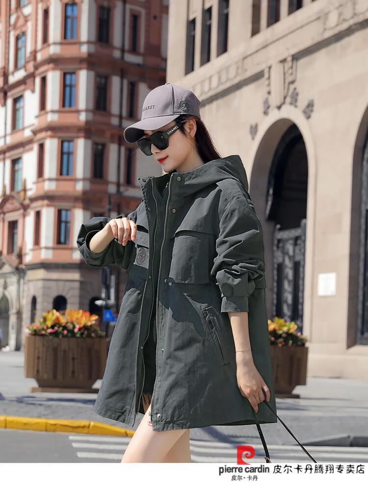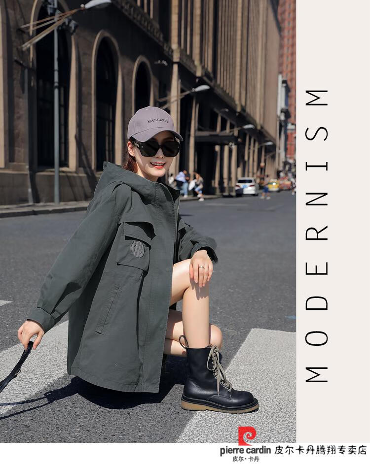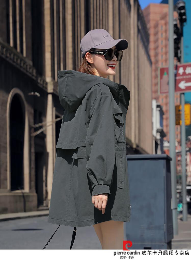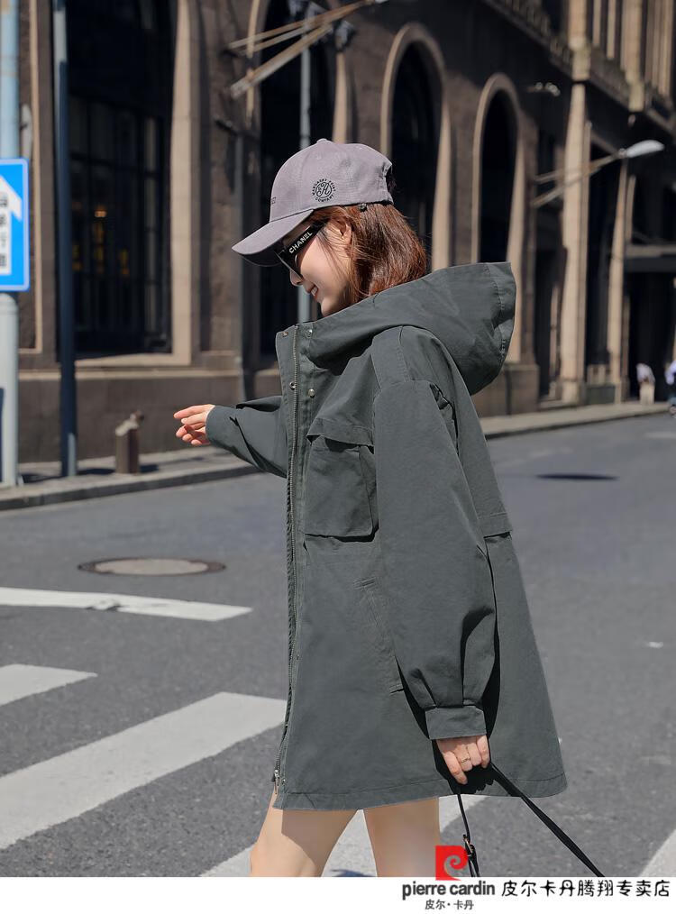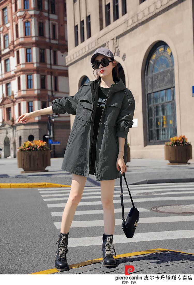 Pierre Cardin windbreaker women's mid-length 2025 spring and autumn new Korean version loose small high-end fashion workwear short coat trendy Khaki M