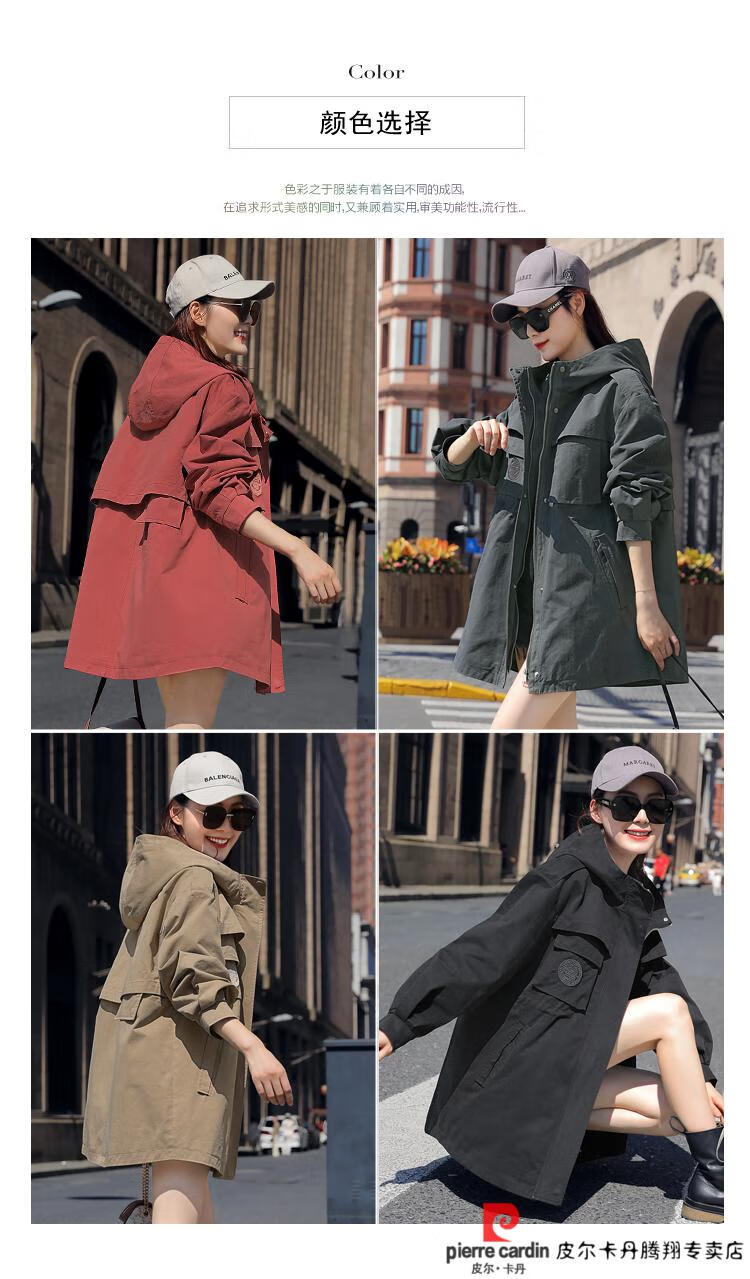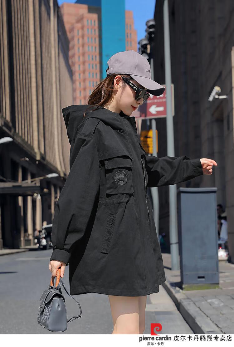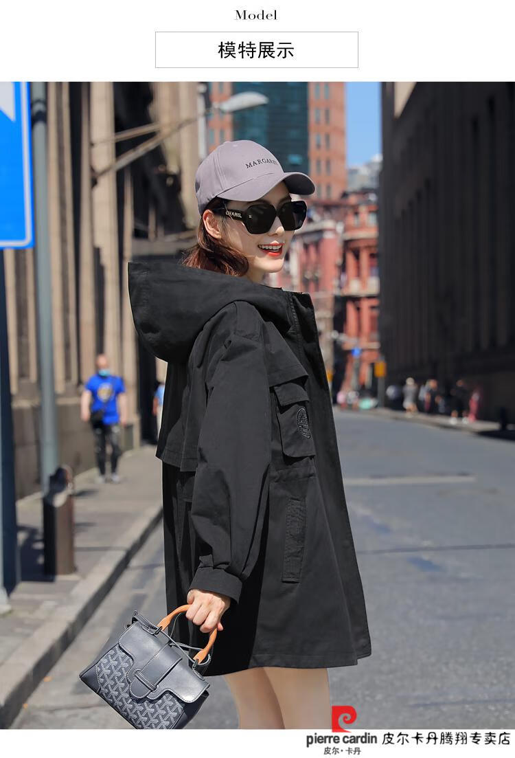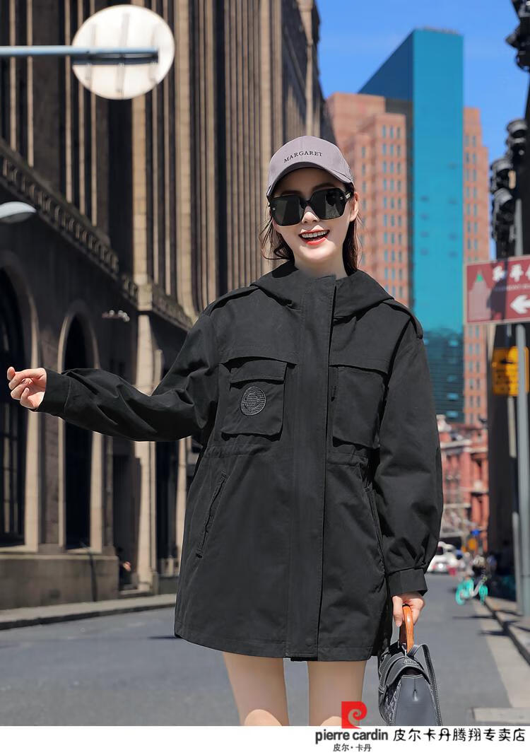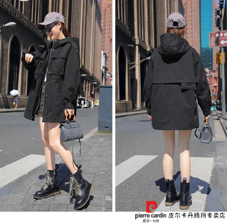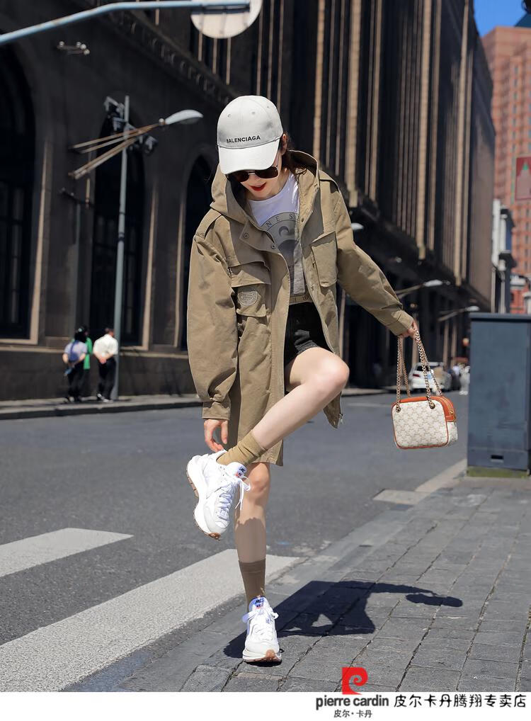 Pierre Cardin windbreaker women's mid-length 2025 spring and autumn new Korean version loose small high-end fashion workwear short coat trendy Khaki M