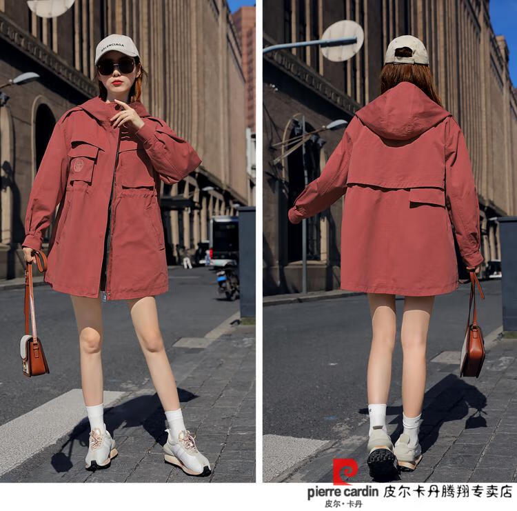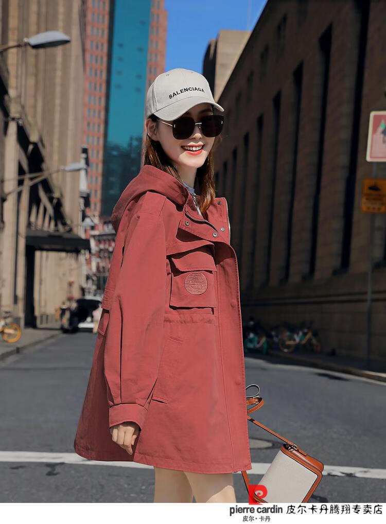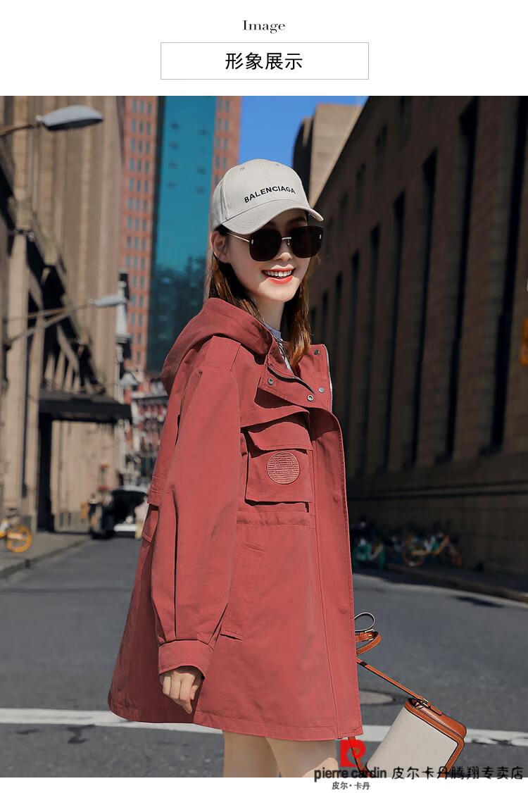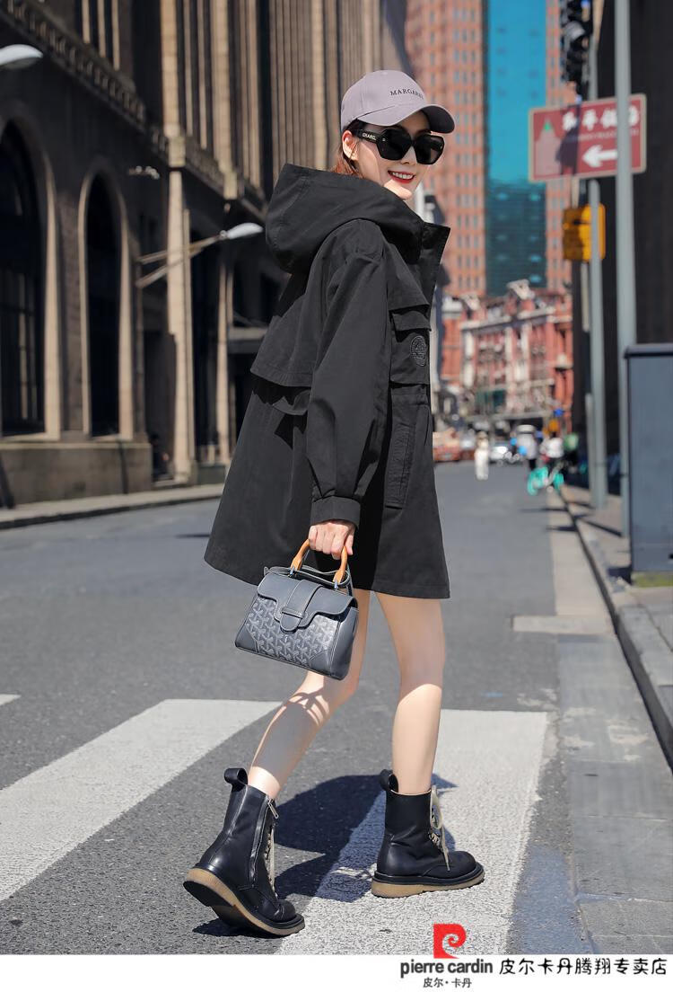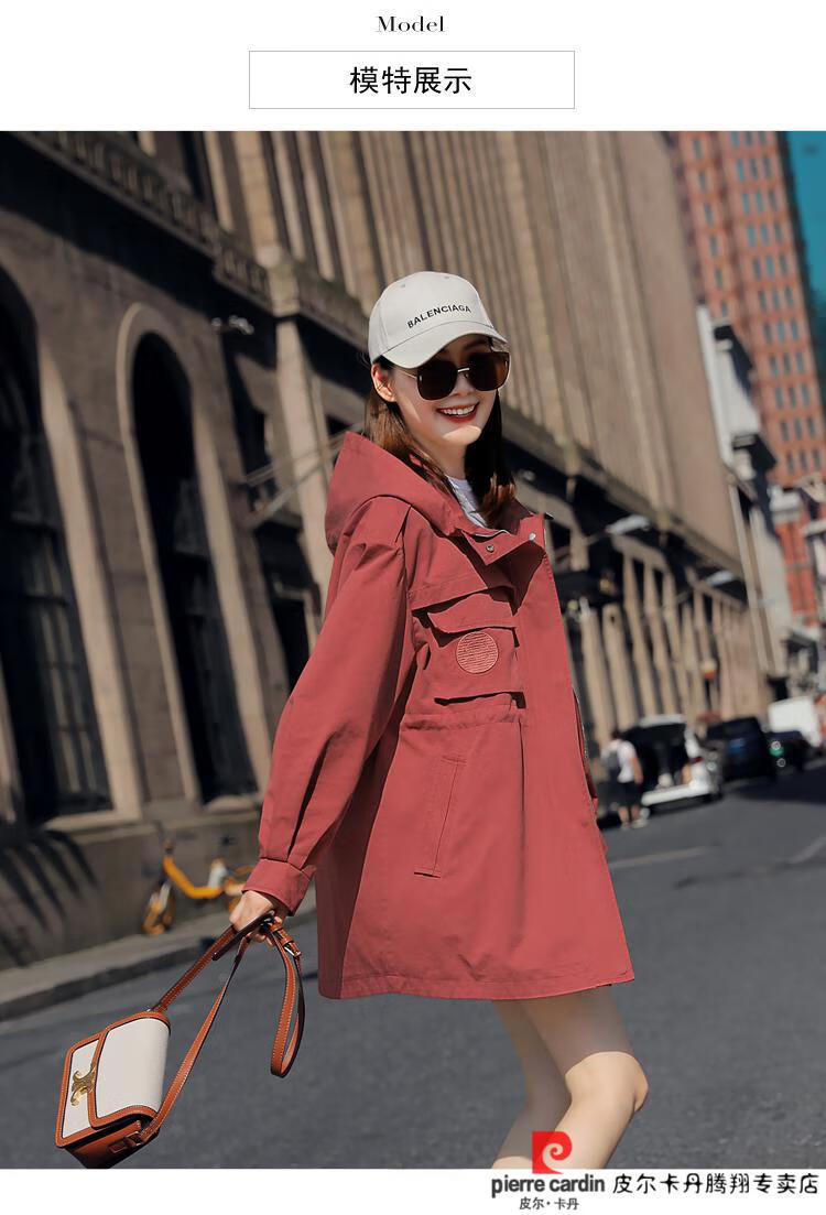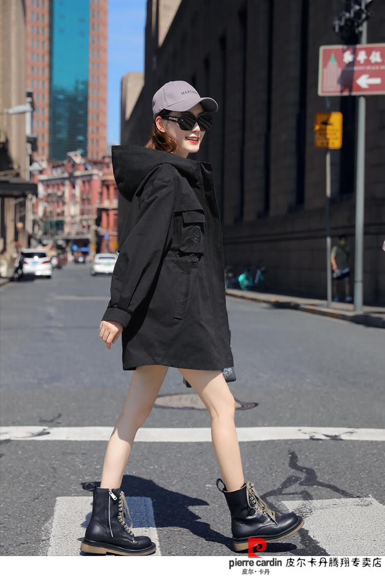 Pierre Cardin windbreaker women's mid-length 2025 spring and autumn new Korean version loose small high-end fashion workwear short coat trendy Khaki M