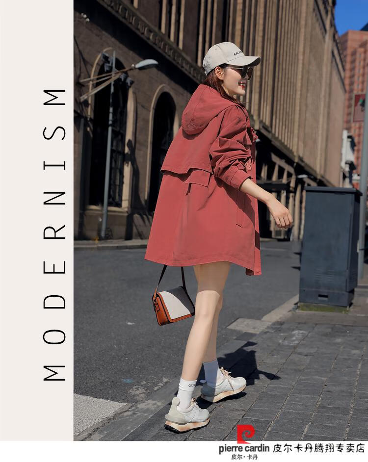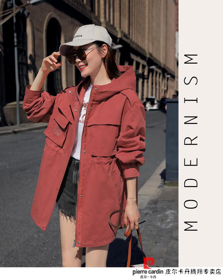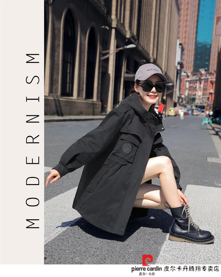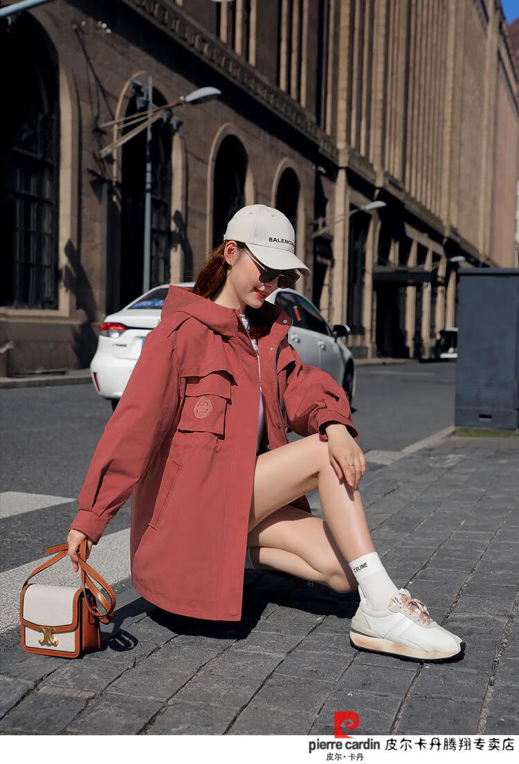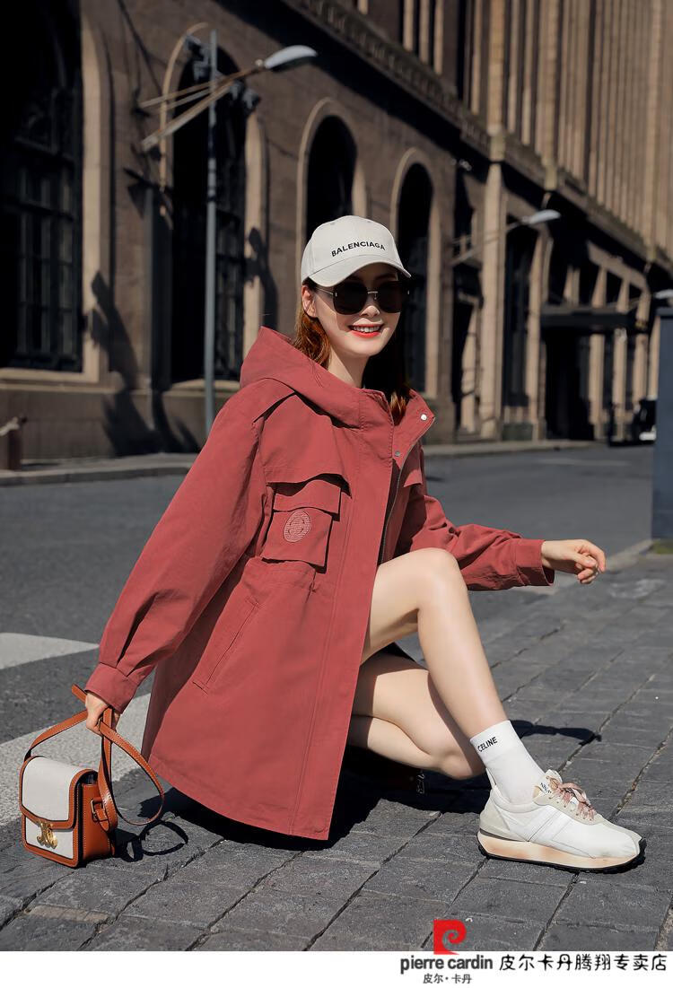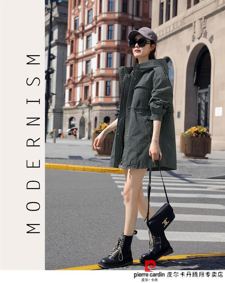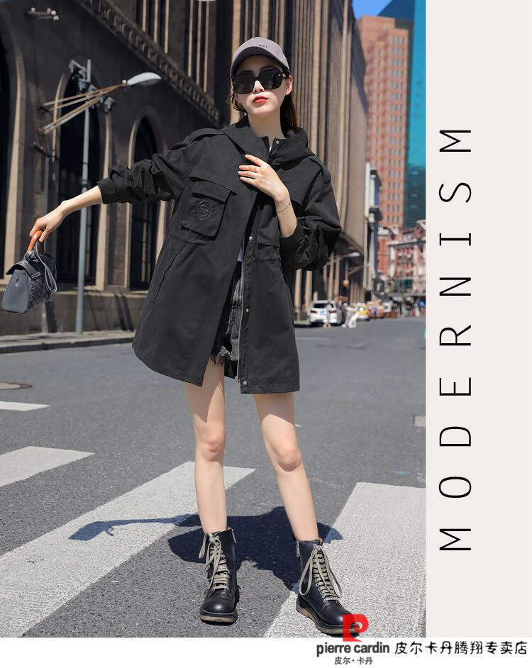 Pierre Cardin windbreaker women's mid-length 2025 spring and autumn new Korean version loose small high-end fashion workwear short coat trendy Khaki M