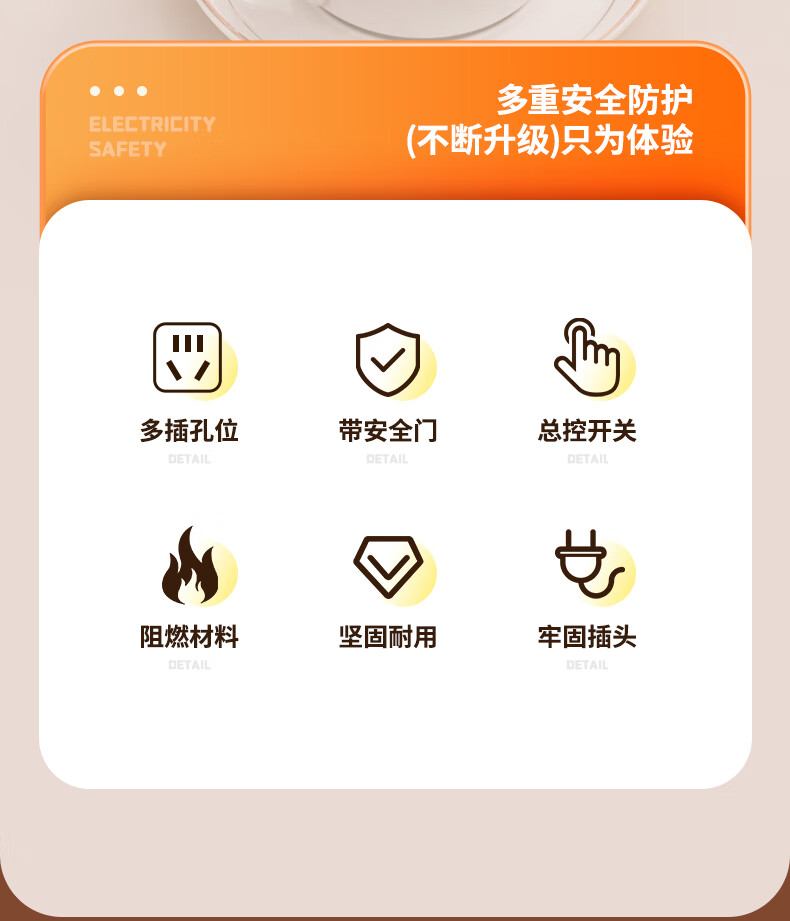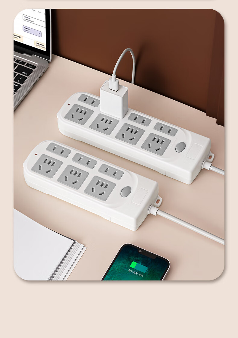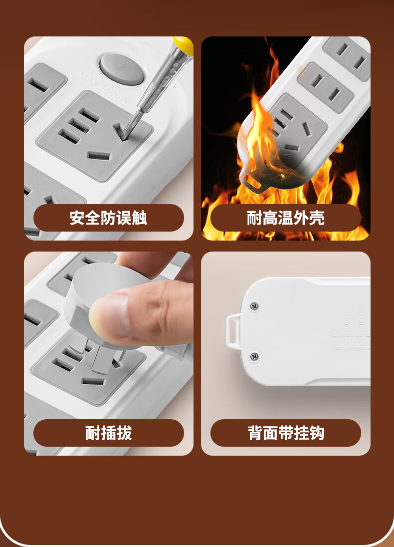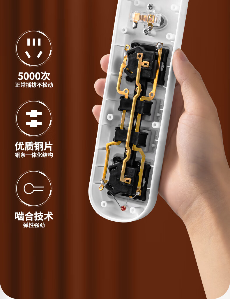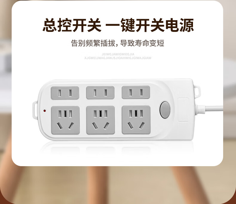 Genuine socket plug-in strip plug-in wiring board genuine corded household dormitory porous extension rice line D1/2 position 0.1 meter pure copper durable