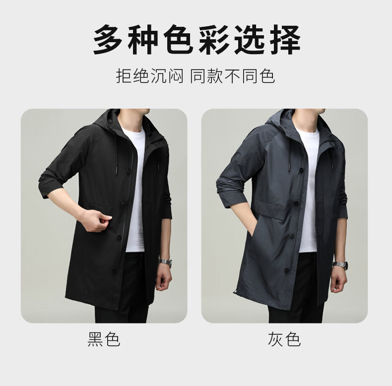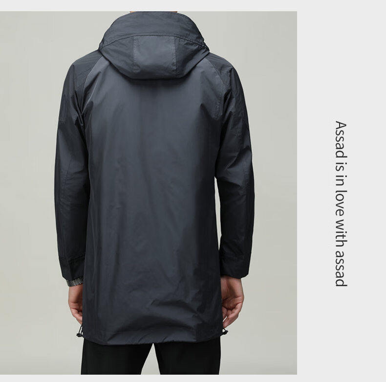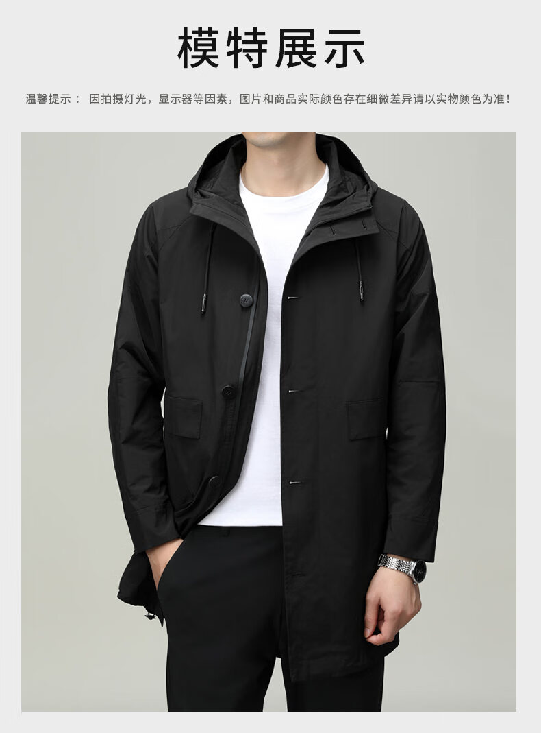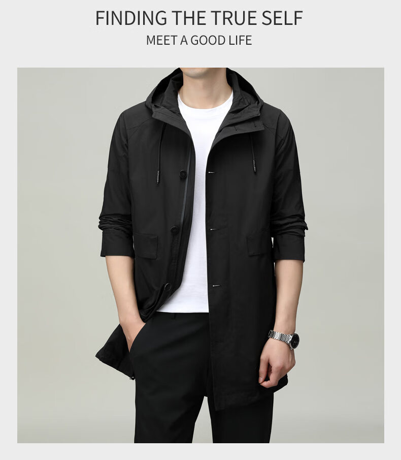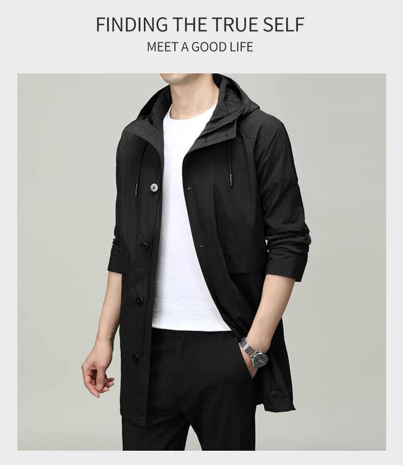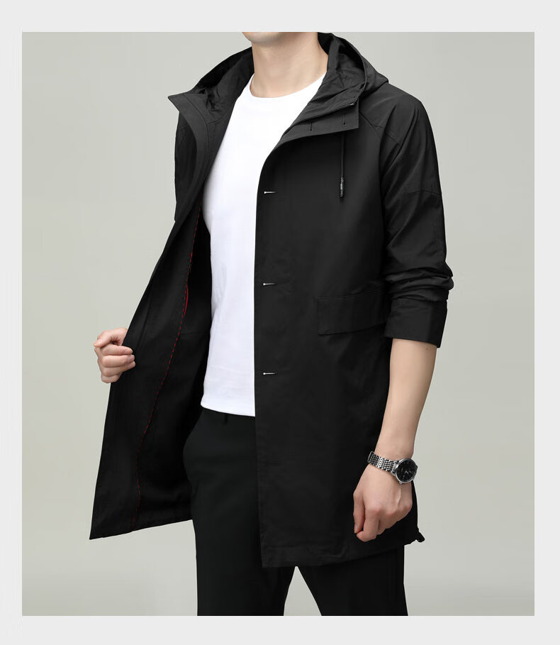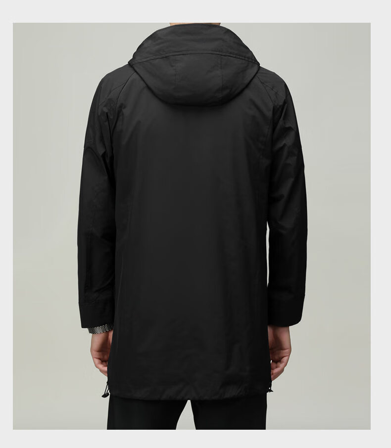 ROMON men's windbreaker jacket men's mid-length spring and autumn new trendy cloak coat casual hooded jacket men's black 170