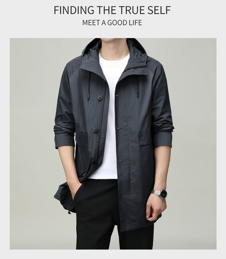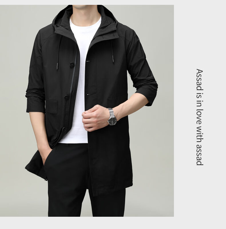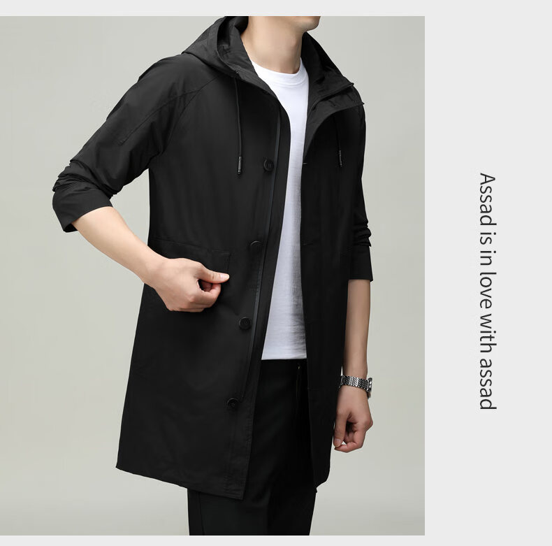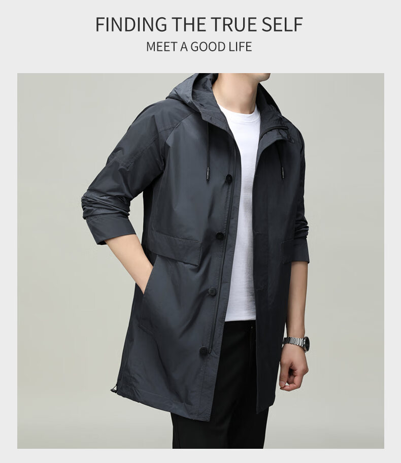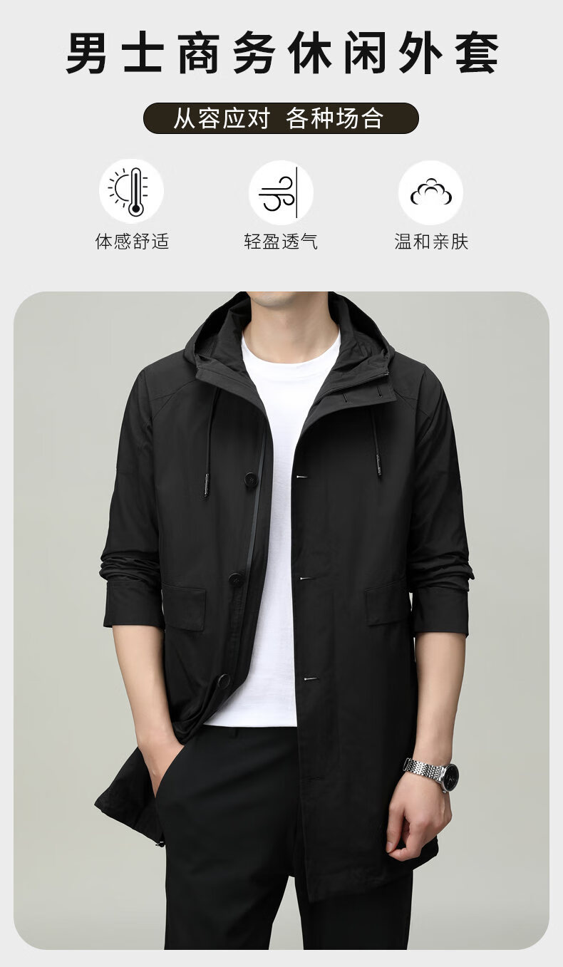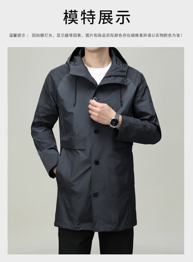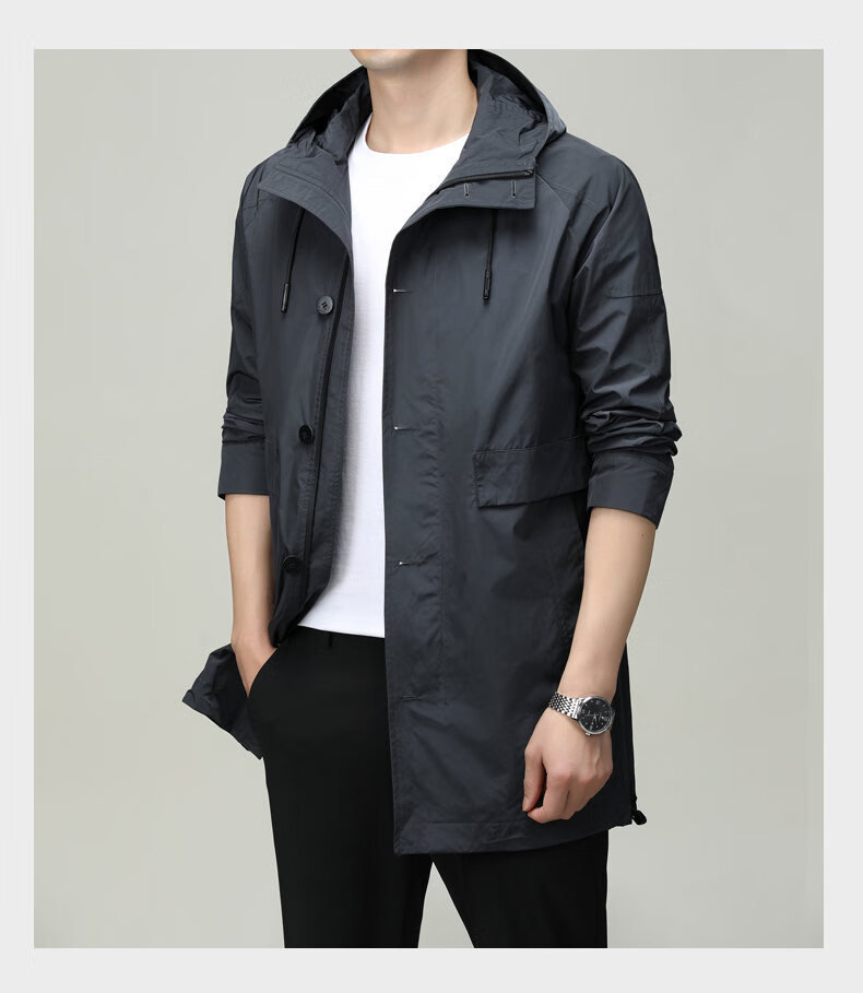 ROMON men's windbreaker jacket men's mid-length spring and autumn new trendy cloak coat casual hooded jacket men's black 170