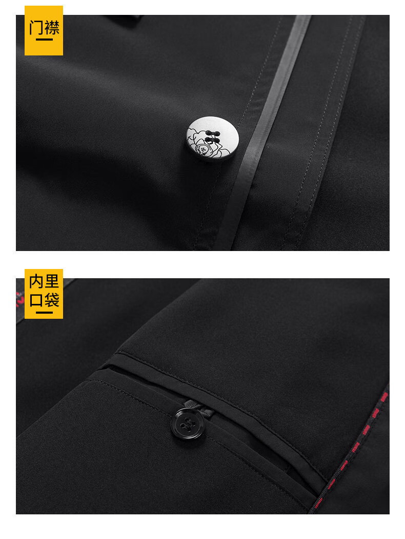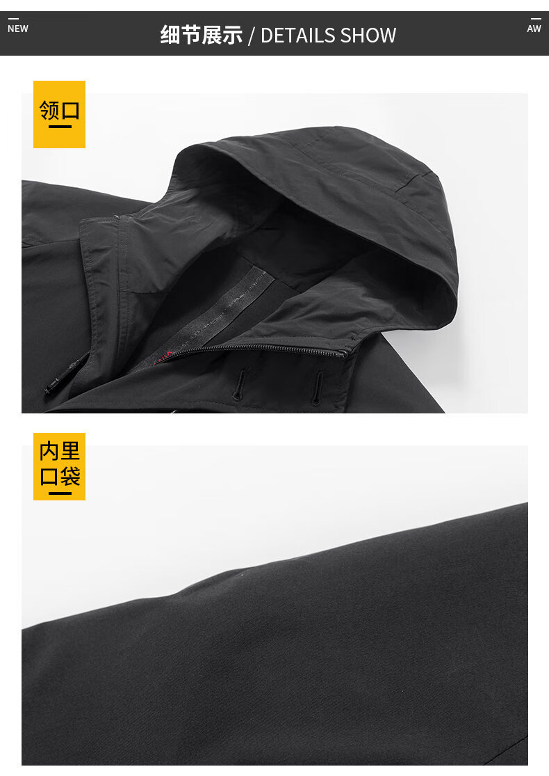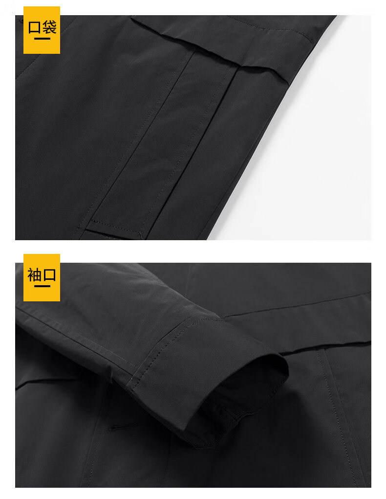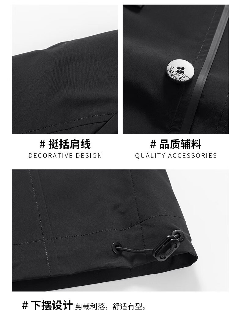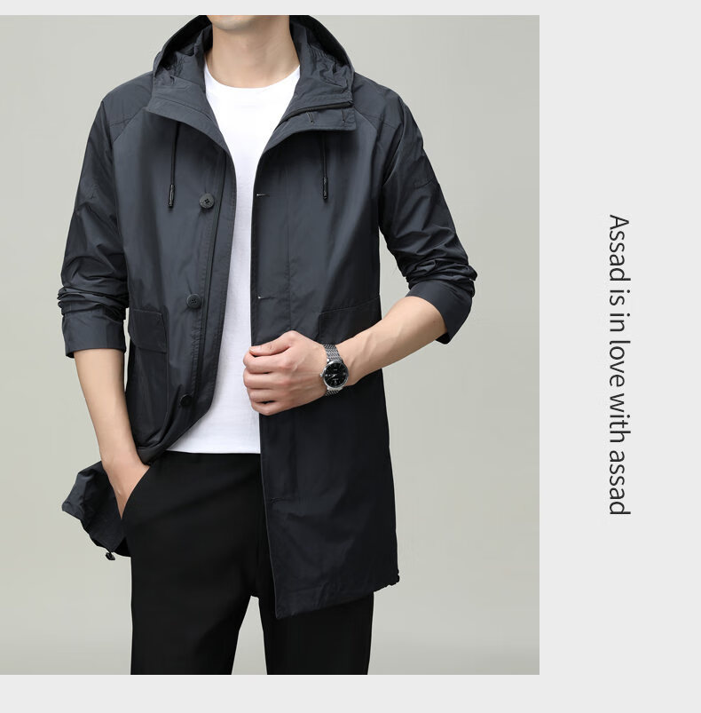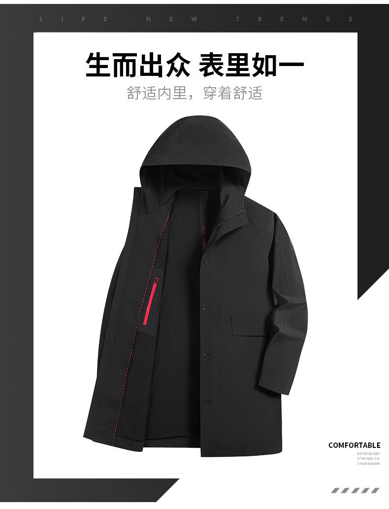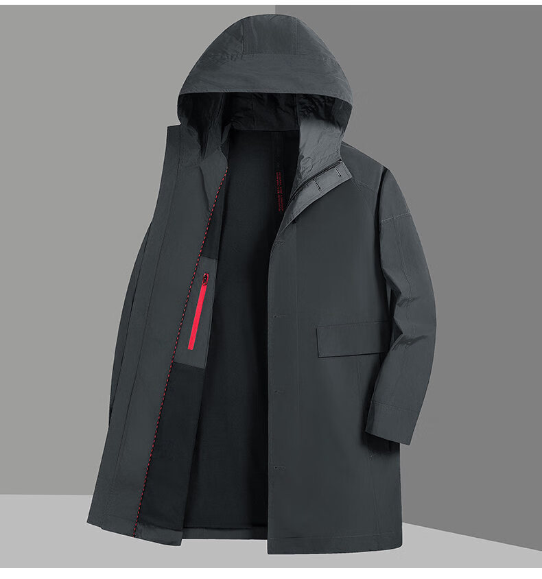 ROMON men's windbreaker jacket men's mid-length spring and autumn new trendy cloak coat casual hooded jacket men's black 170