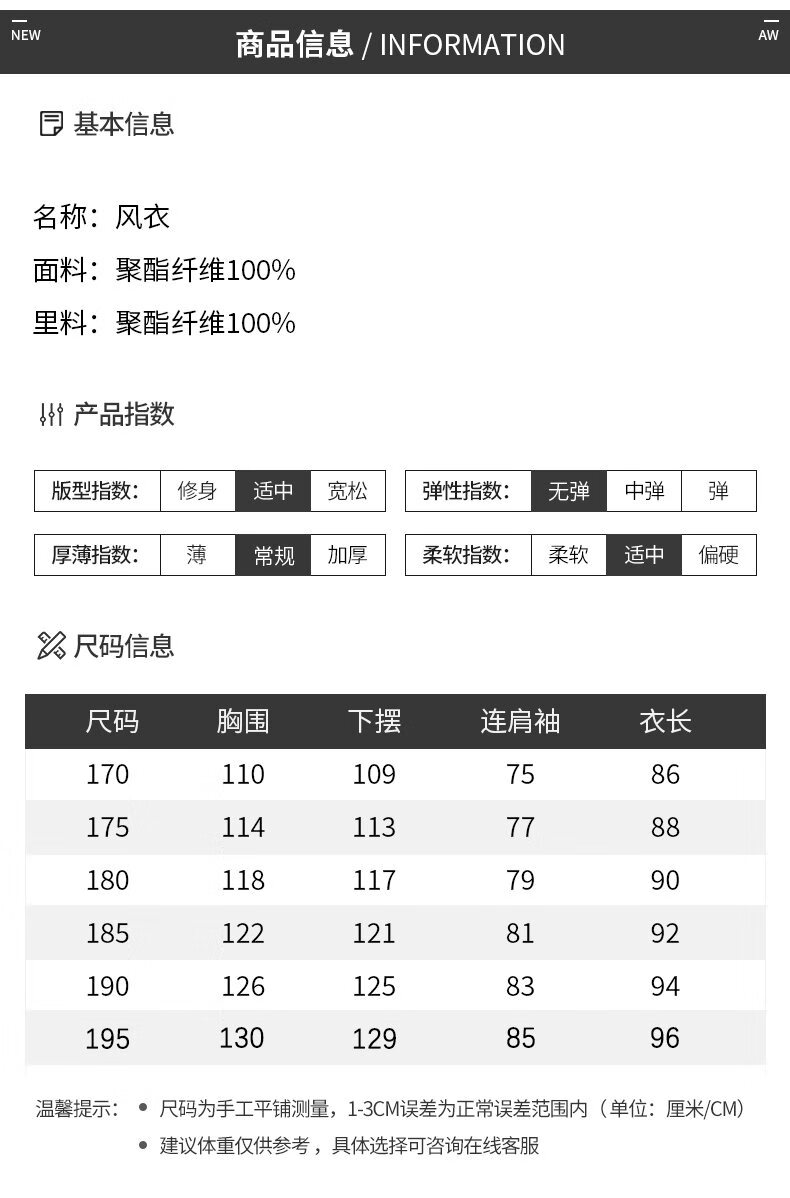 China (cm) 165 / 88-90 170 / 96-98 175 / 108-110 180 / 118-122 185 / 126-130