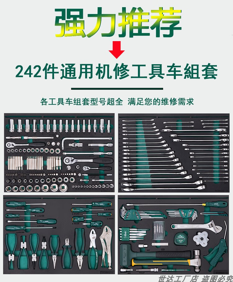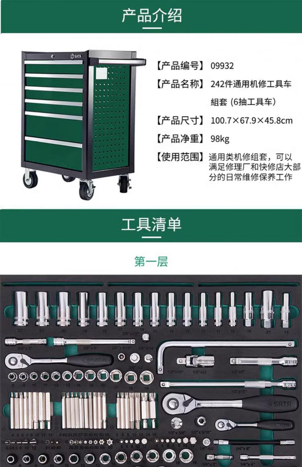 SATA Auto Repair Tool Trolley Set with Tools Full Set Mobile Multi-Purpose Heavy-Duty Auto Repair Trolley 09932 09932/242-piece Universal Machine Repair Tool Trolley Set