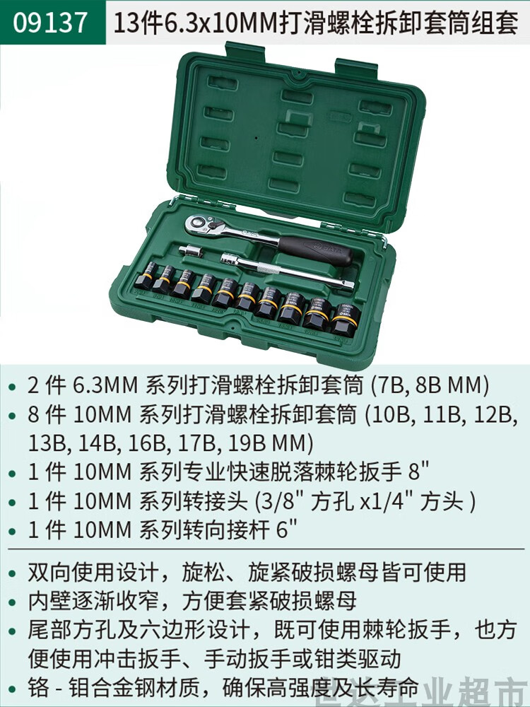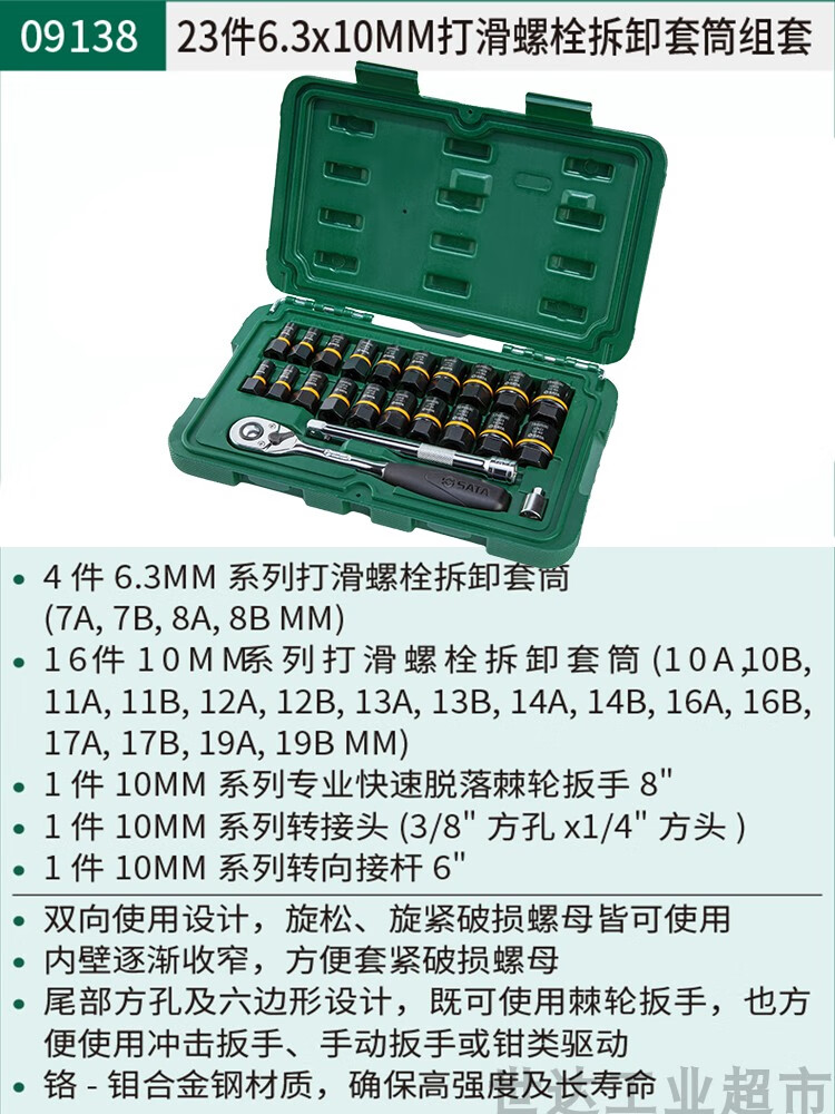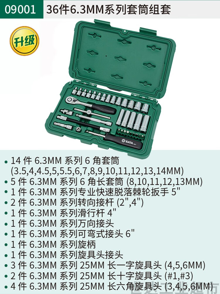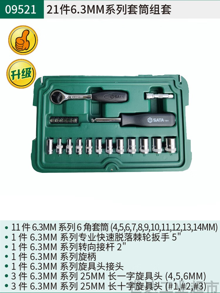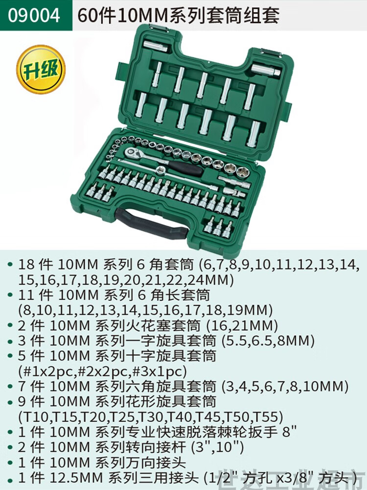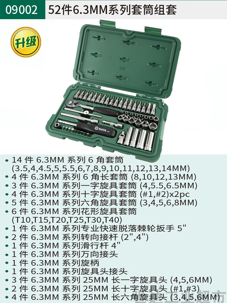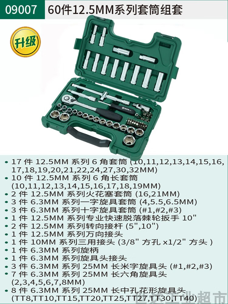 Shida (SATA) Extended Small Fly, Medium Fly, Big Fly Hexagonal Auto Repair Wrench Socket Set Combination Tool Box 090042 09942-Small and Medium Fly 60-piece Socket Set Quick Repair