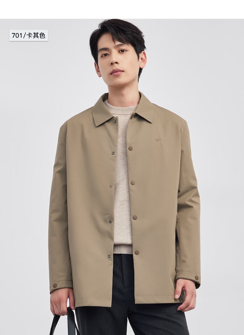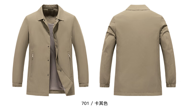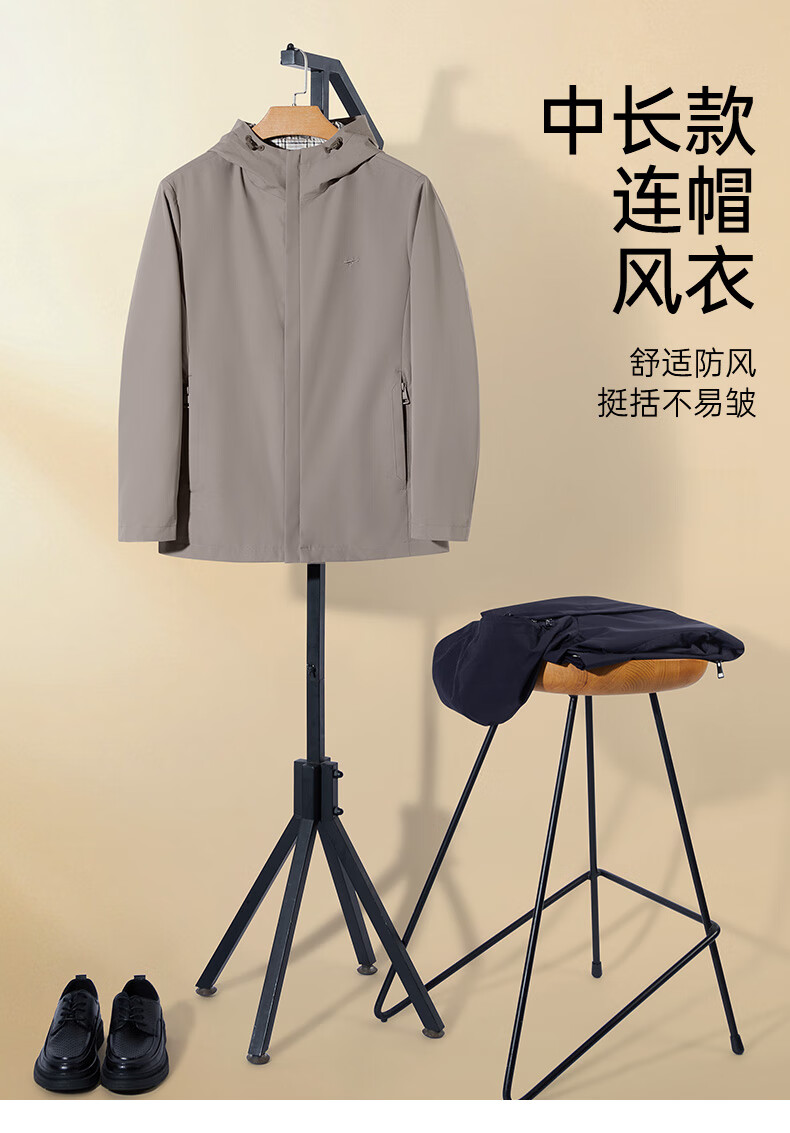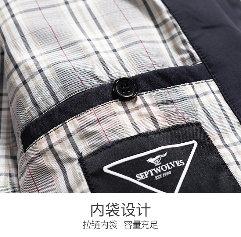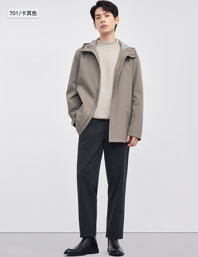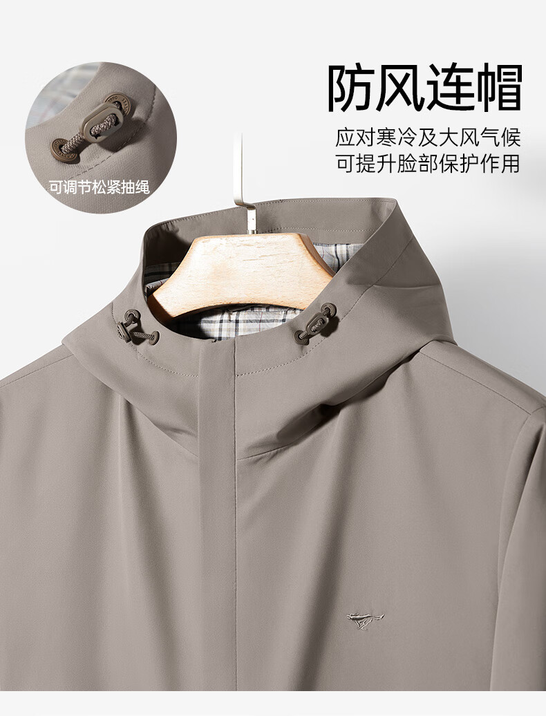 七匹狼风衣外套男中长款连帽三防大衣秋季时尚英伦风防风衣男城市轻户外 701(卡其)-连帽款 175