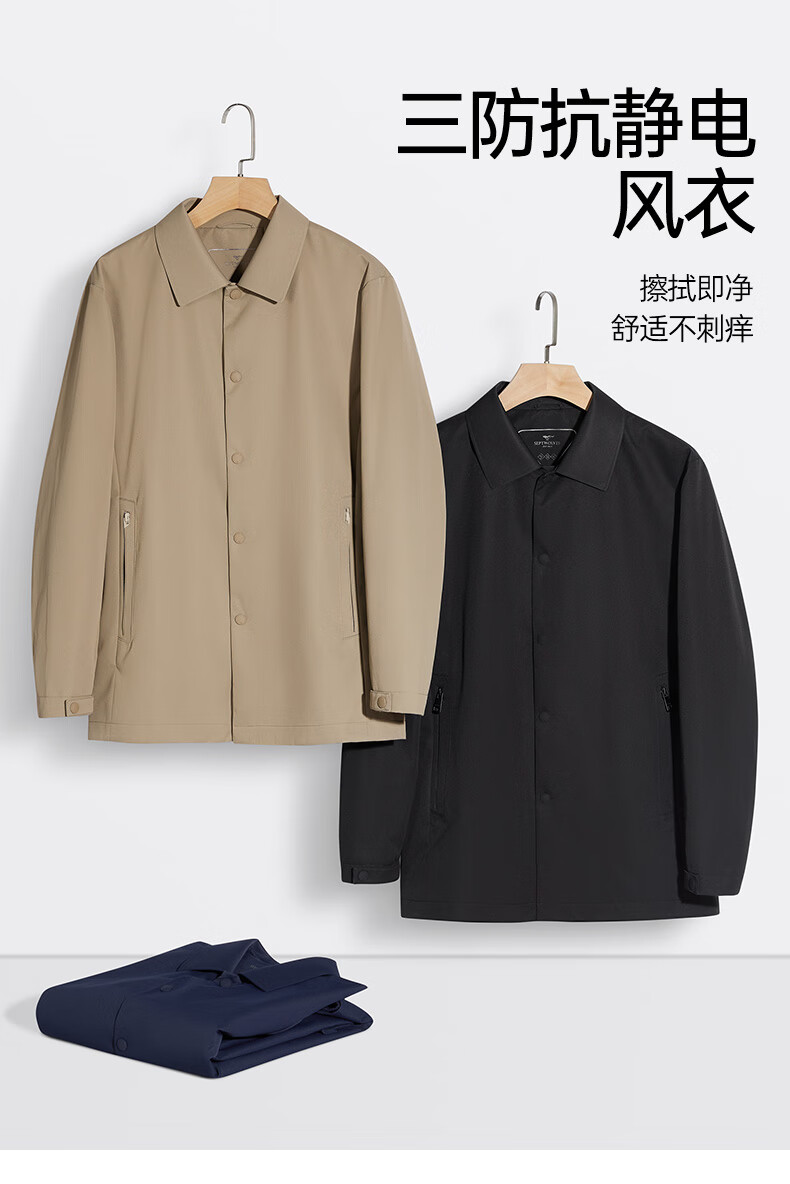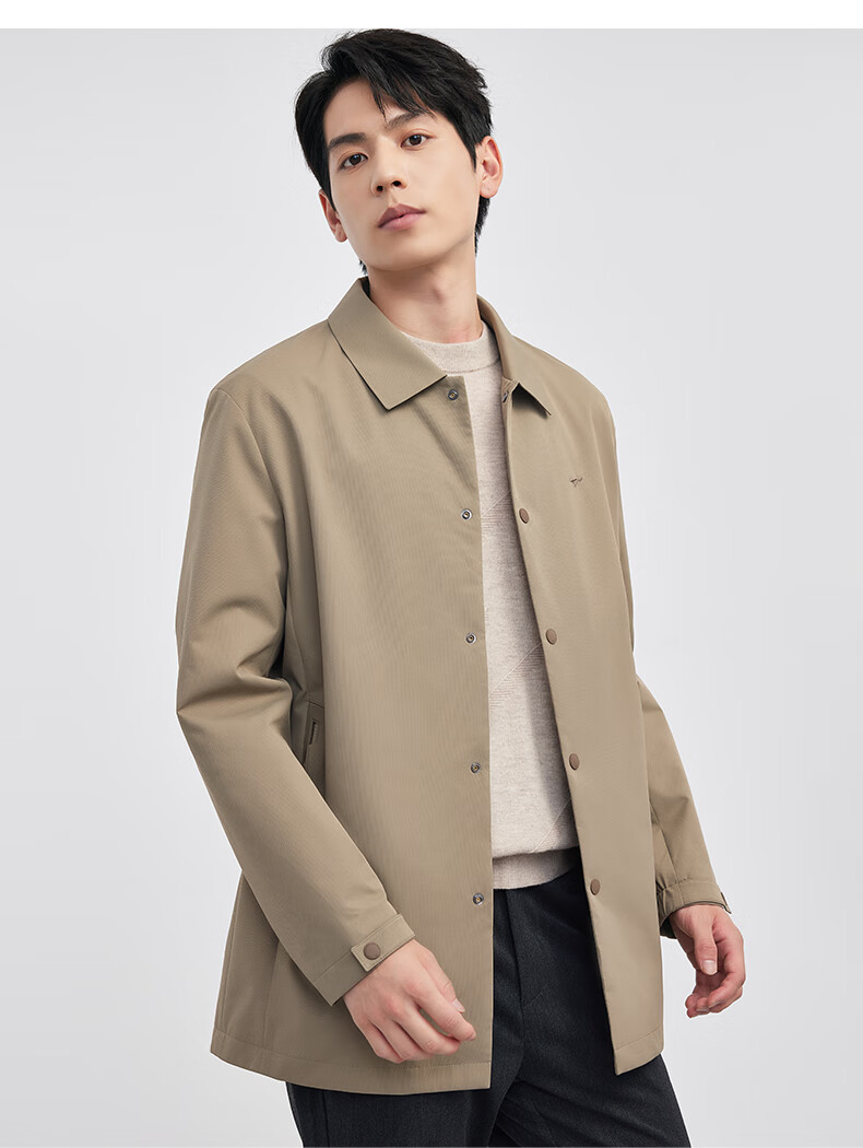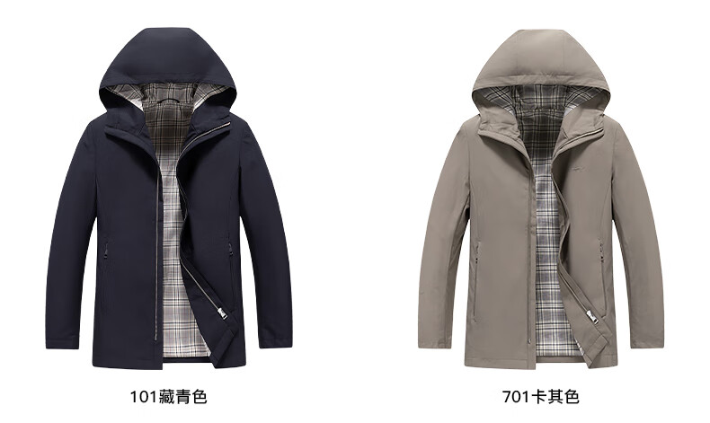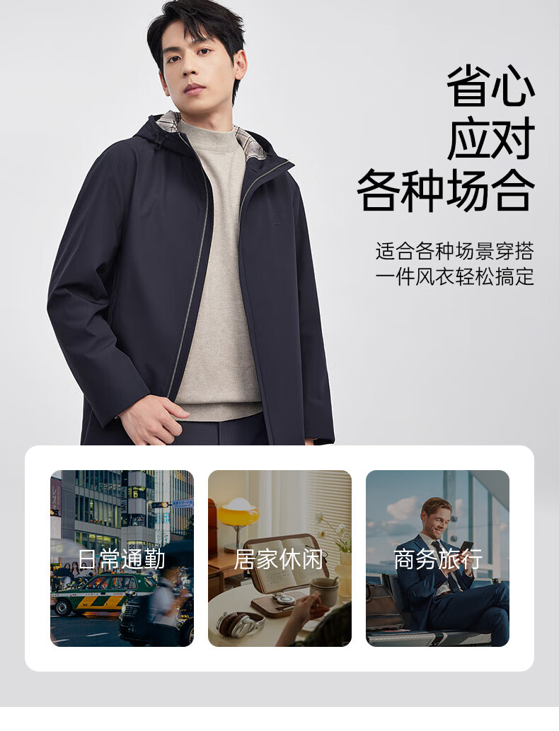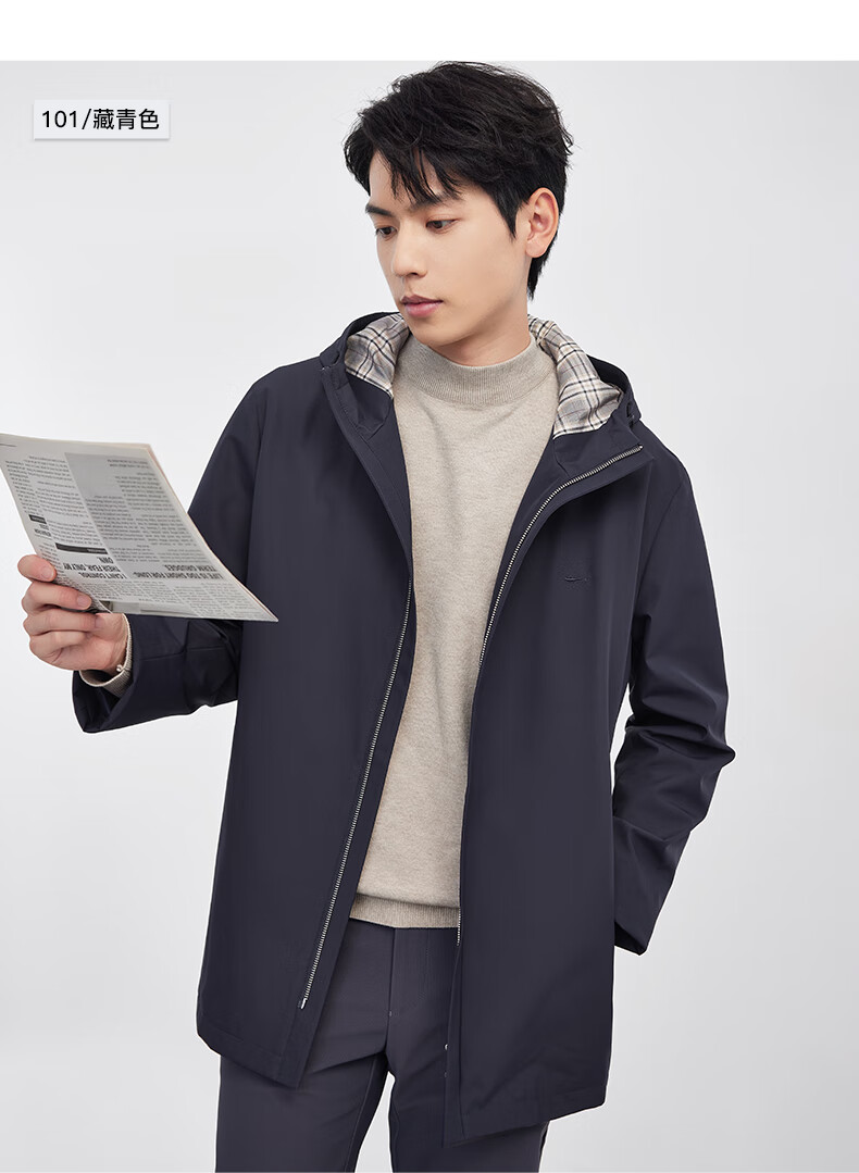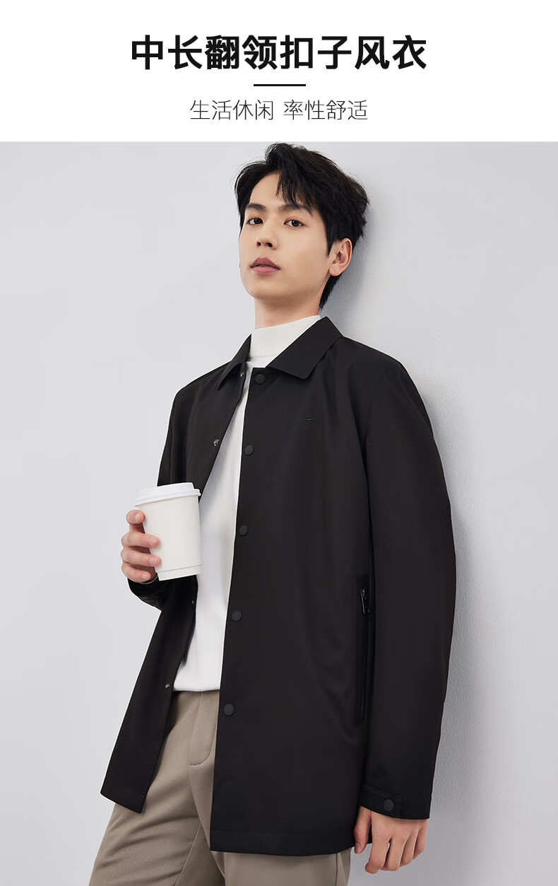 七匹狼风衣外套男中长款连帽三防大衣秋季时尚英伦风防风衣男城市轻户外 701(卡其)-连帽款 175