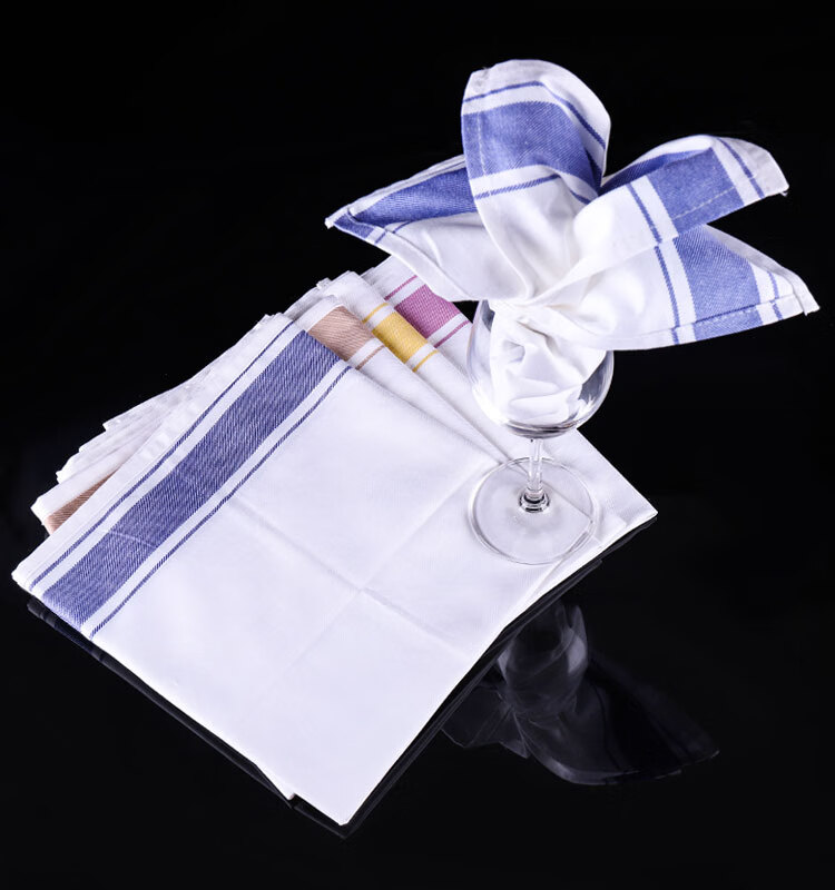 HKFX pure cotton mouth cloth, glass cloth, glass cup cloth, special cloth, red wine glass rag, hotel tableware, 50*70cm green stripes, 5 pieces, thickened cotton
