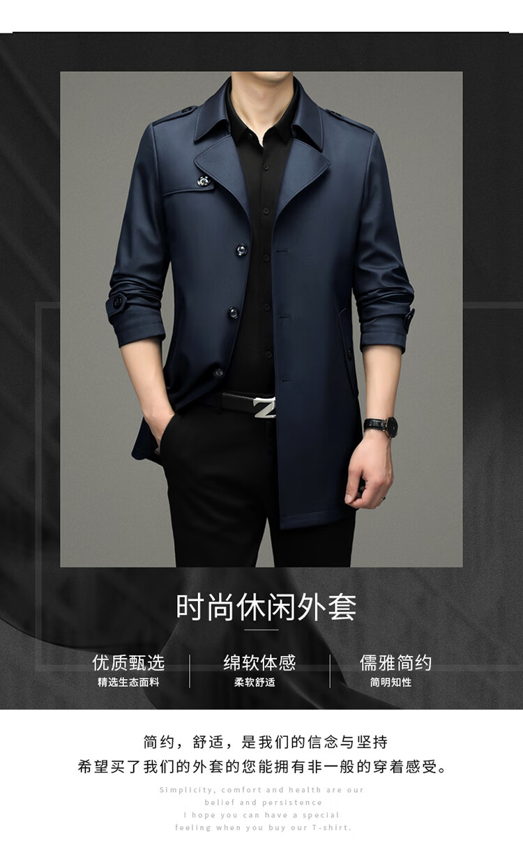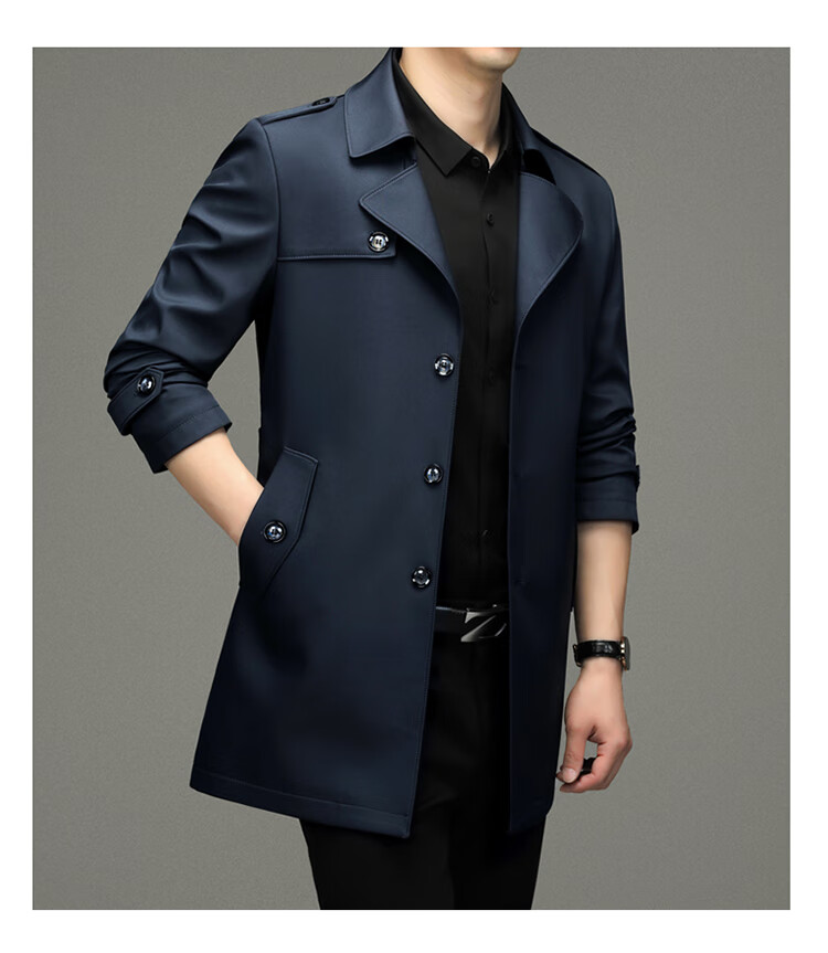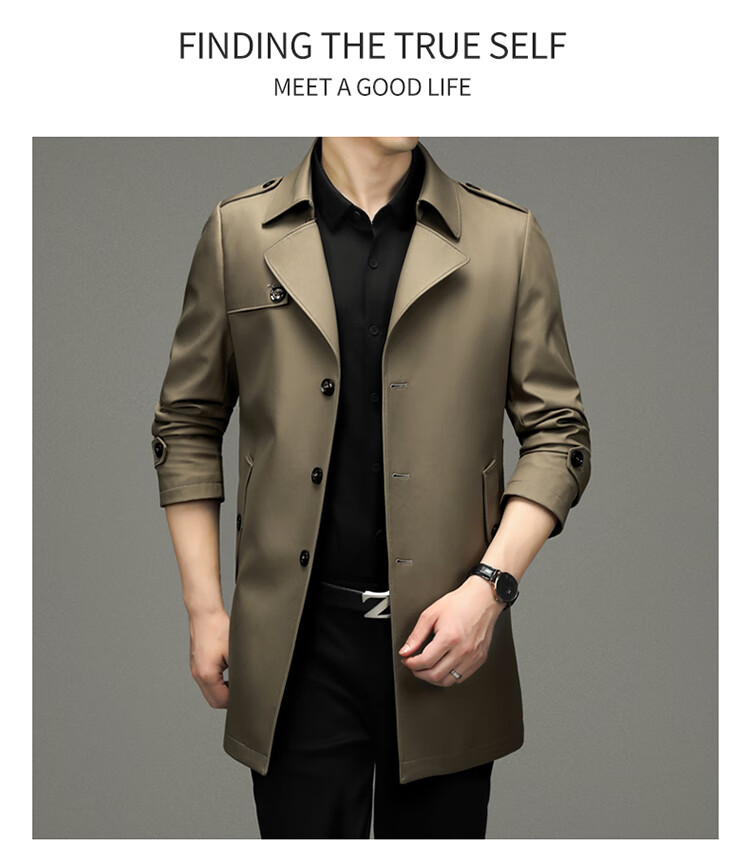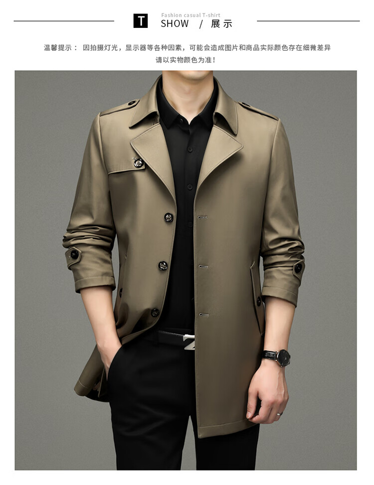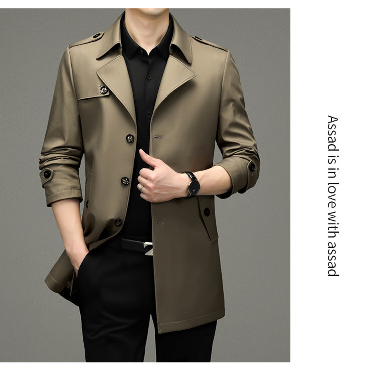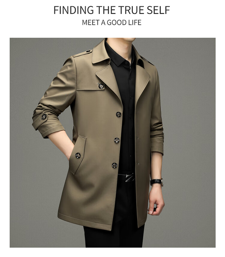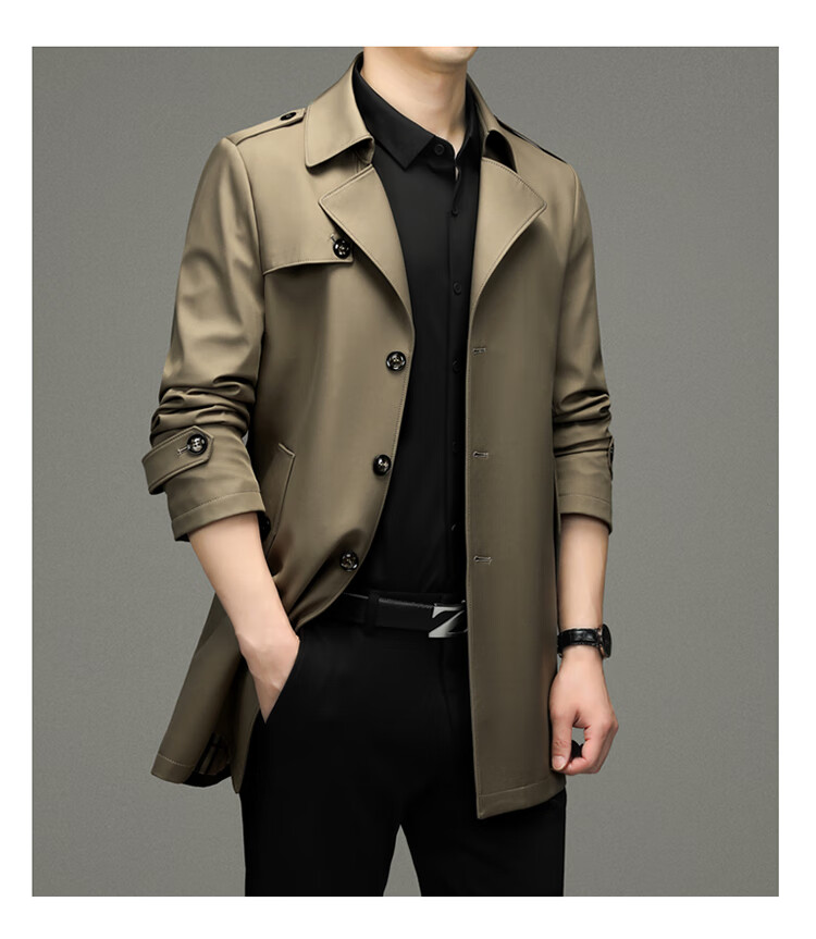 Pierre Cardin 2025 Otoño Traje para hombre Cortavientos con cuello Informal de negocios Chaqueta de longitud media para hombre de talla grande Caqui para hombre 180/XL Recomendado 145 Jin Jin es igual a 0,5 kg -165 Jin Jin es igual a 0,5 kg