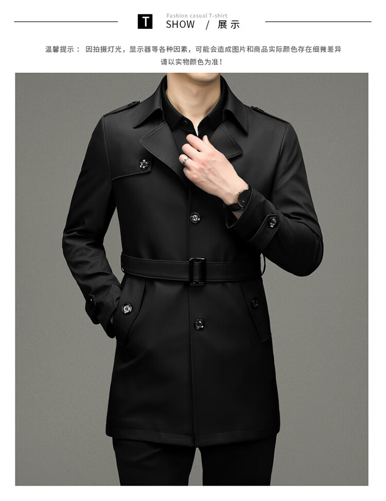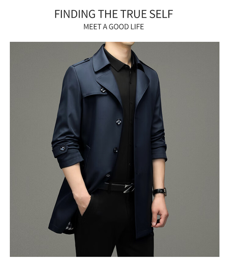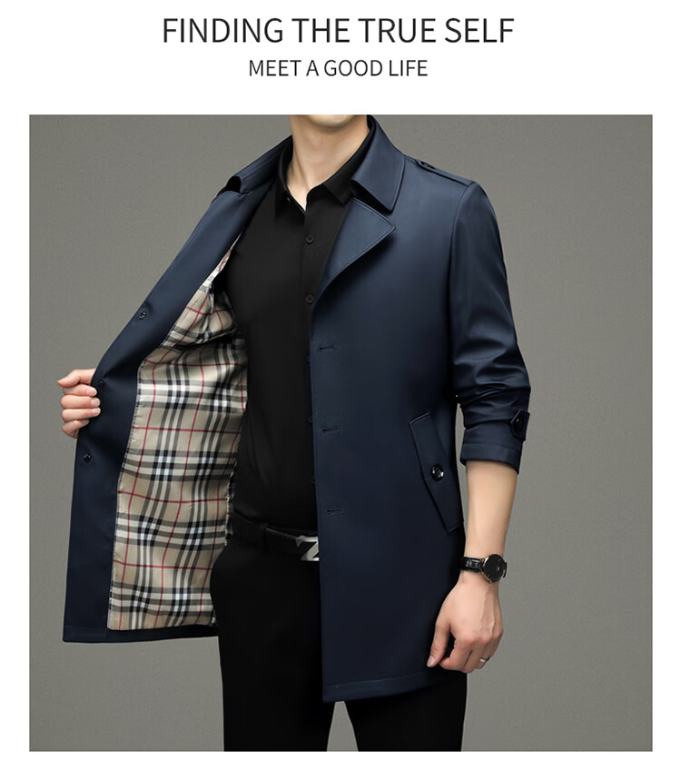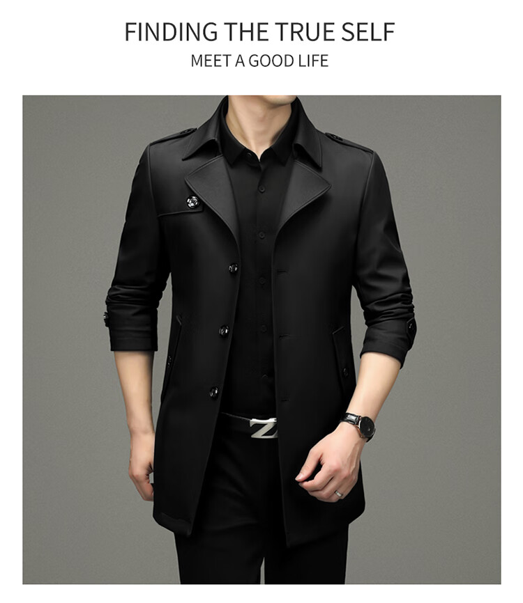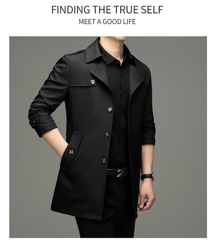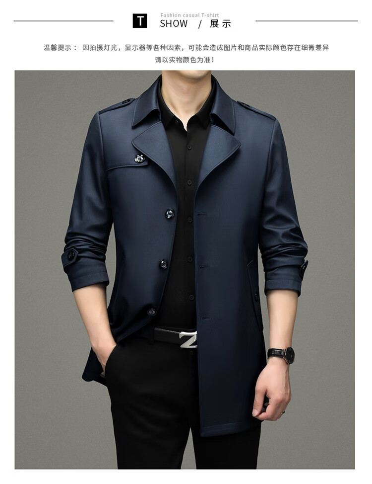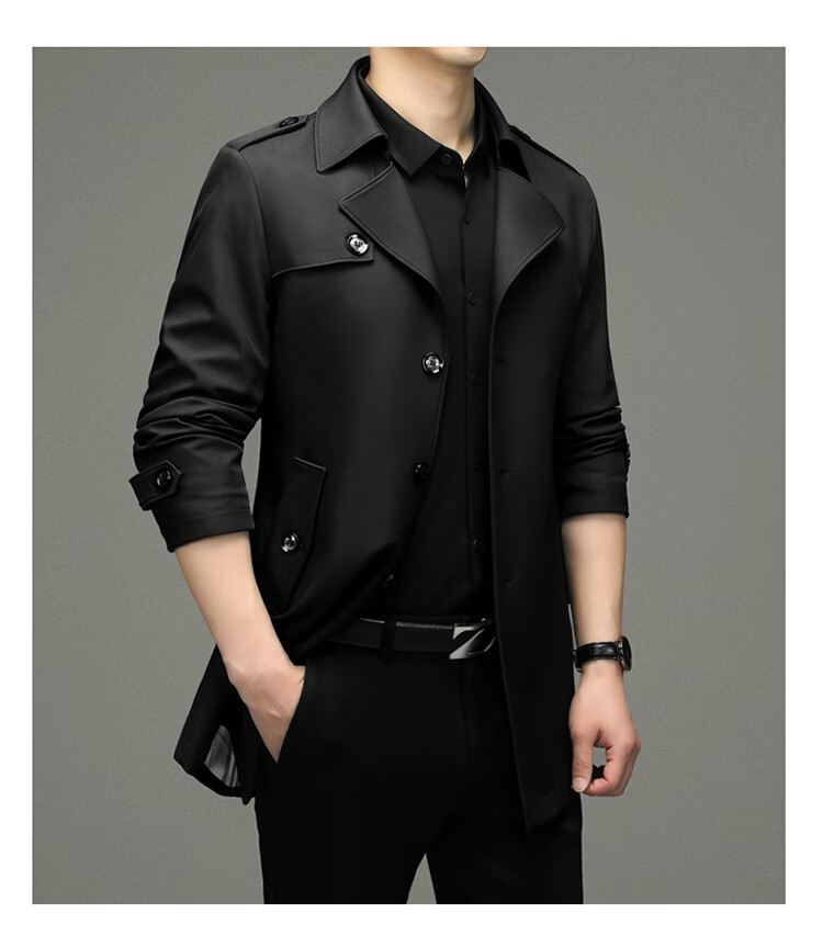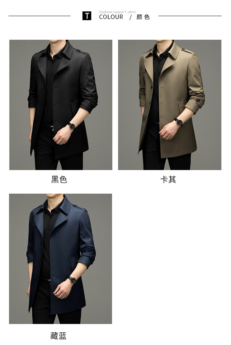 Pierre Cardin 2025 Otoño Traje para hombre Cortavientos con cuello Informal de negocios Chaqueta de longitud media para hombre de talla grande Caqui para hombre 180/XL Recomendado 145 Jin Jin es igual a 0,5 kg -165 Jin Jin es igual a 0,5 kg