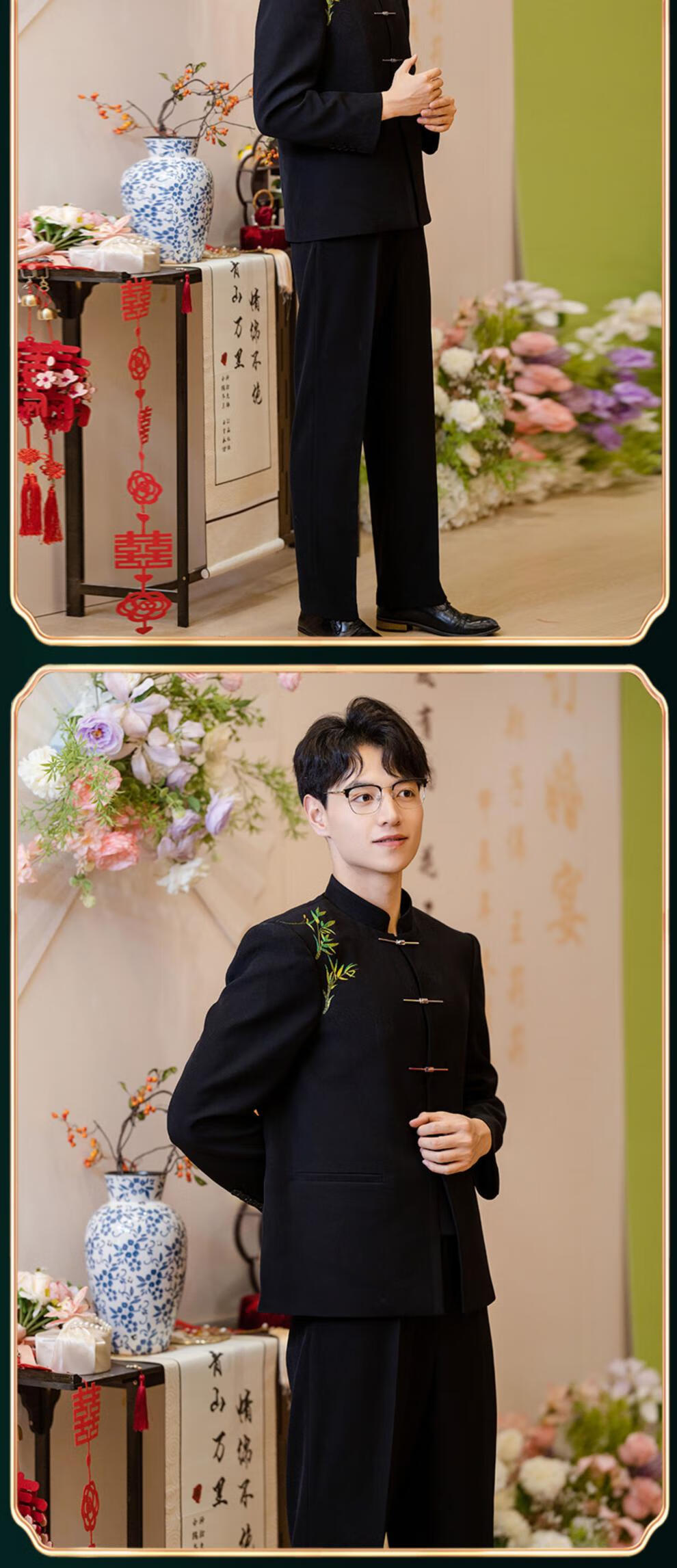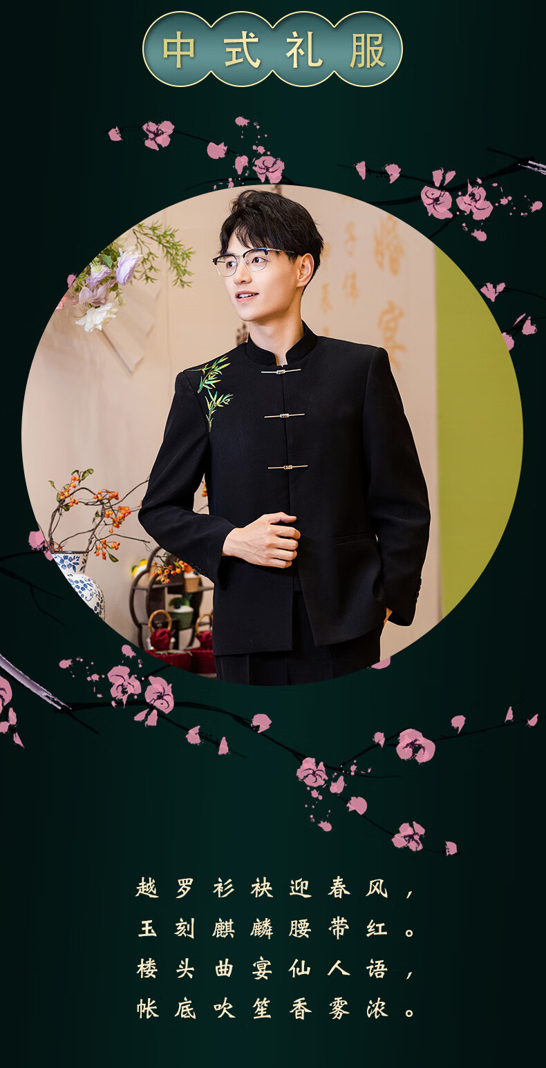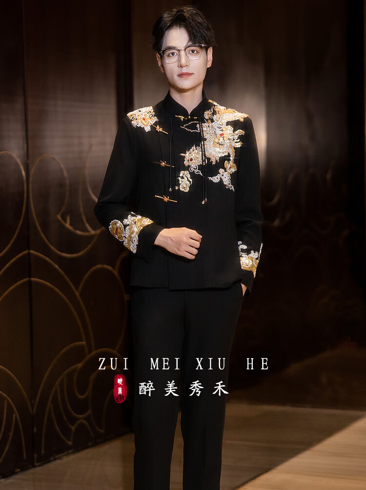 Luo Meng new Chinese style men's tunic suit Chinese style men's youth jacket wedding dress groom engagement suit Yunxi suit top + pants shipped within 7 days XL