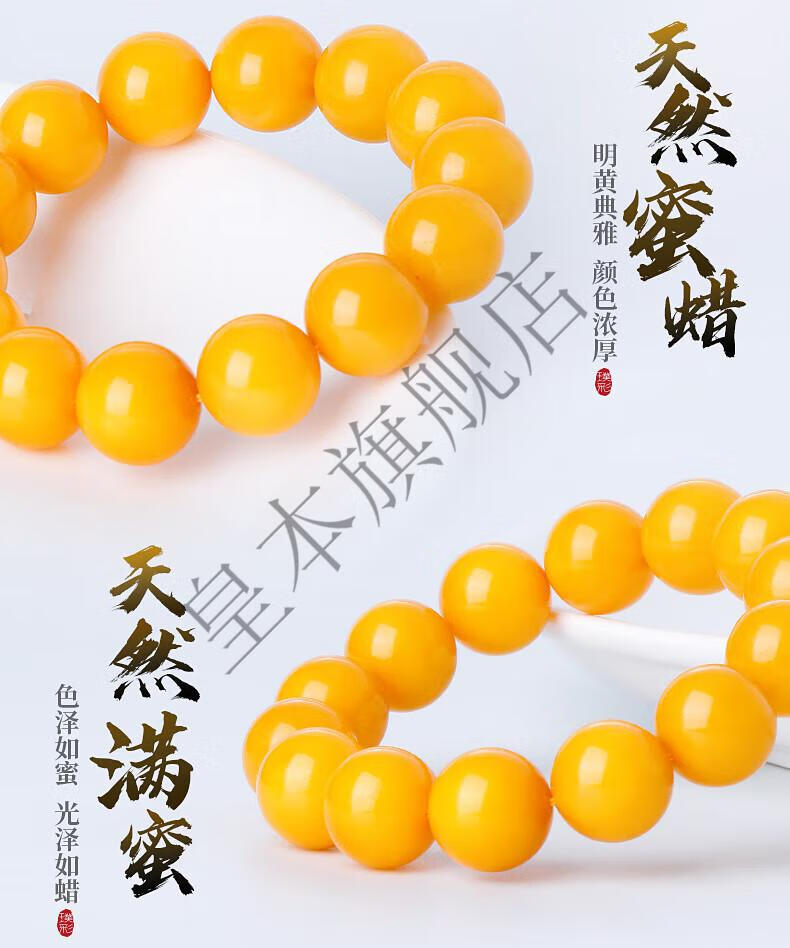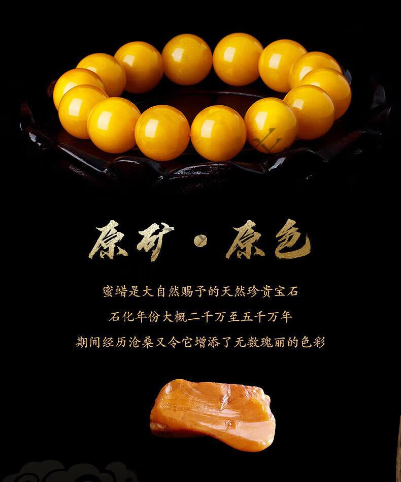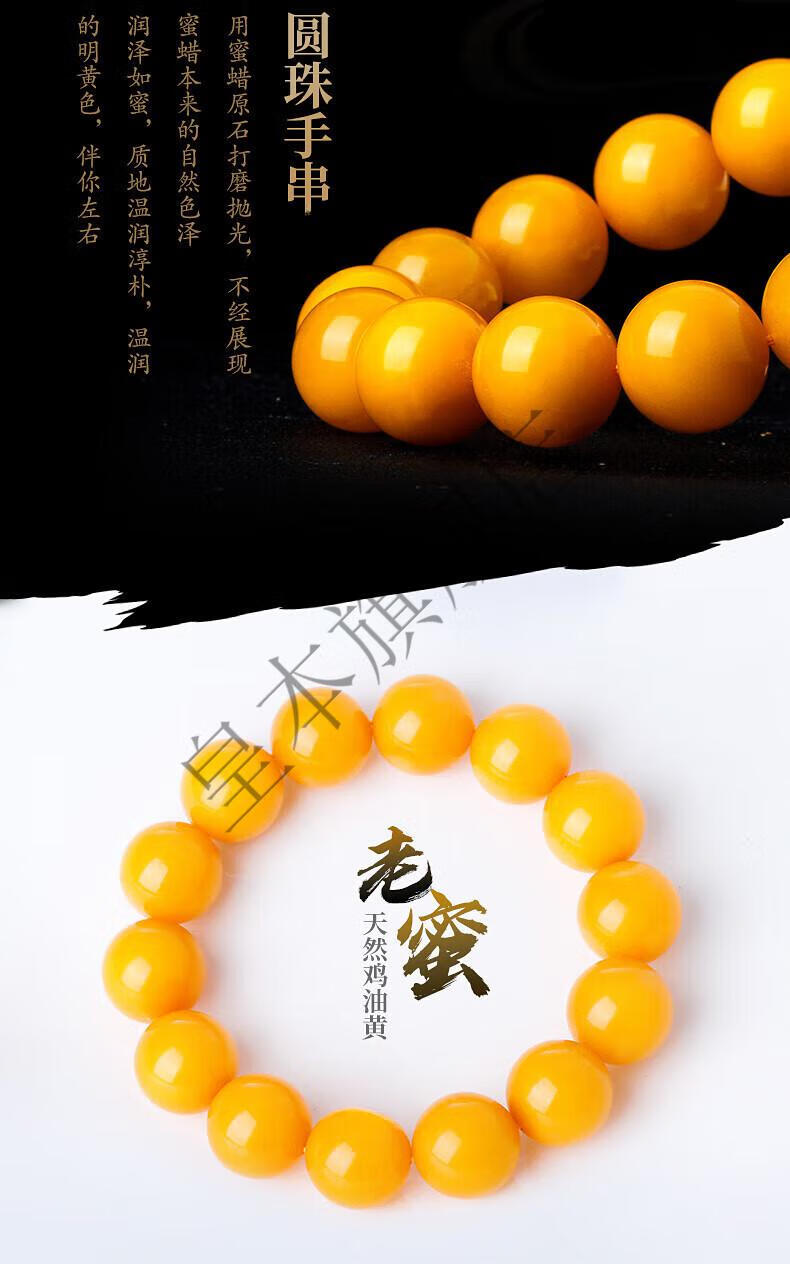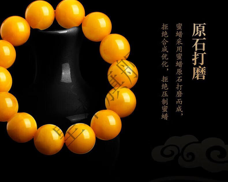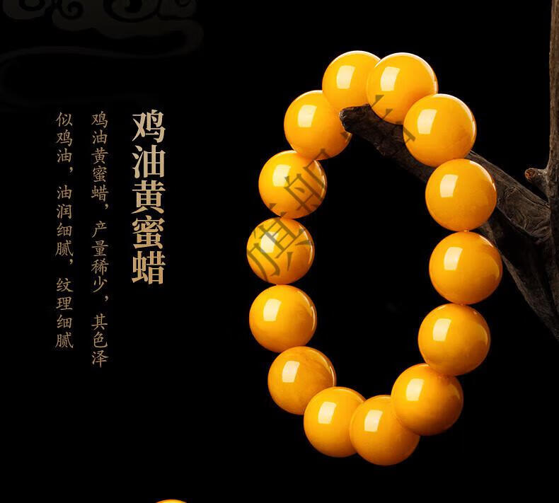 Royal copy, with national inspection certificate, natural raw mineral genuine beeswax bracelet for men and women, single circle chicken oil yellow old beeswax bracelet, 25 grams, bead diameter 14mm (unisex style) approx.