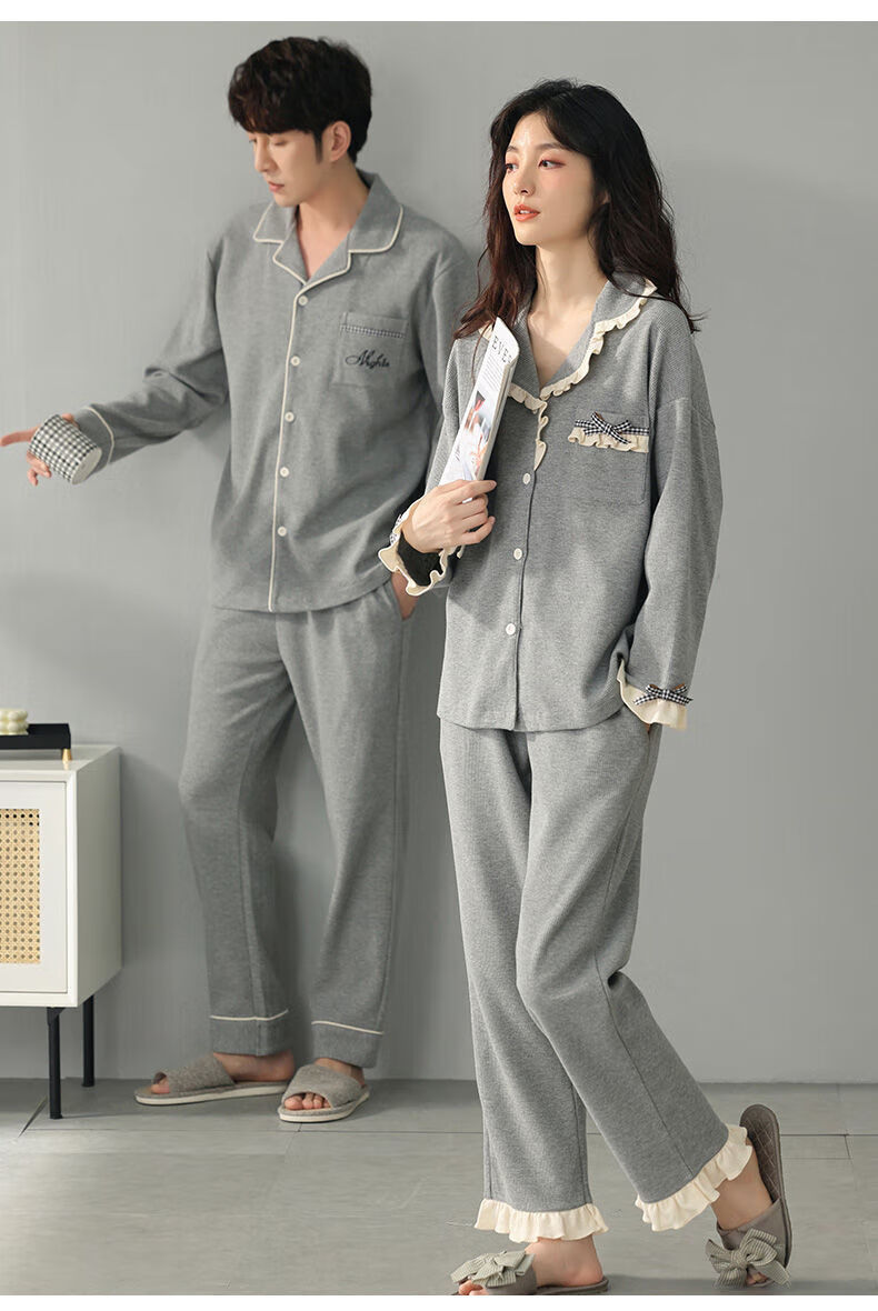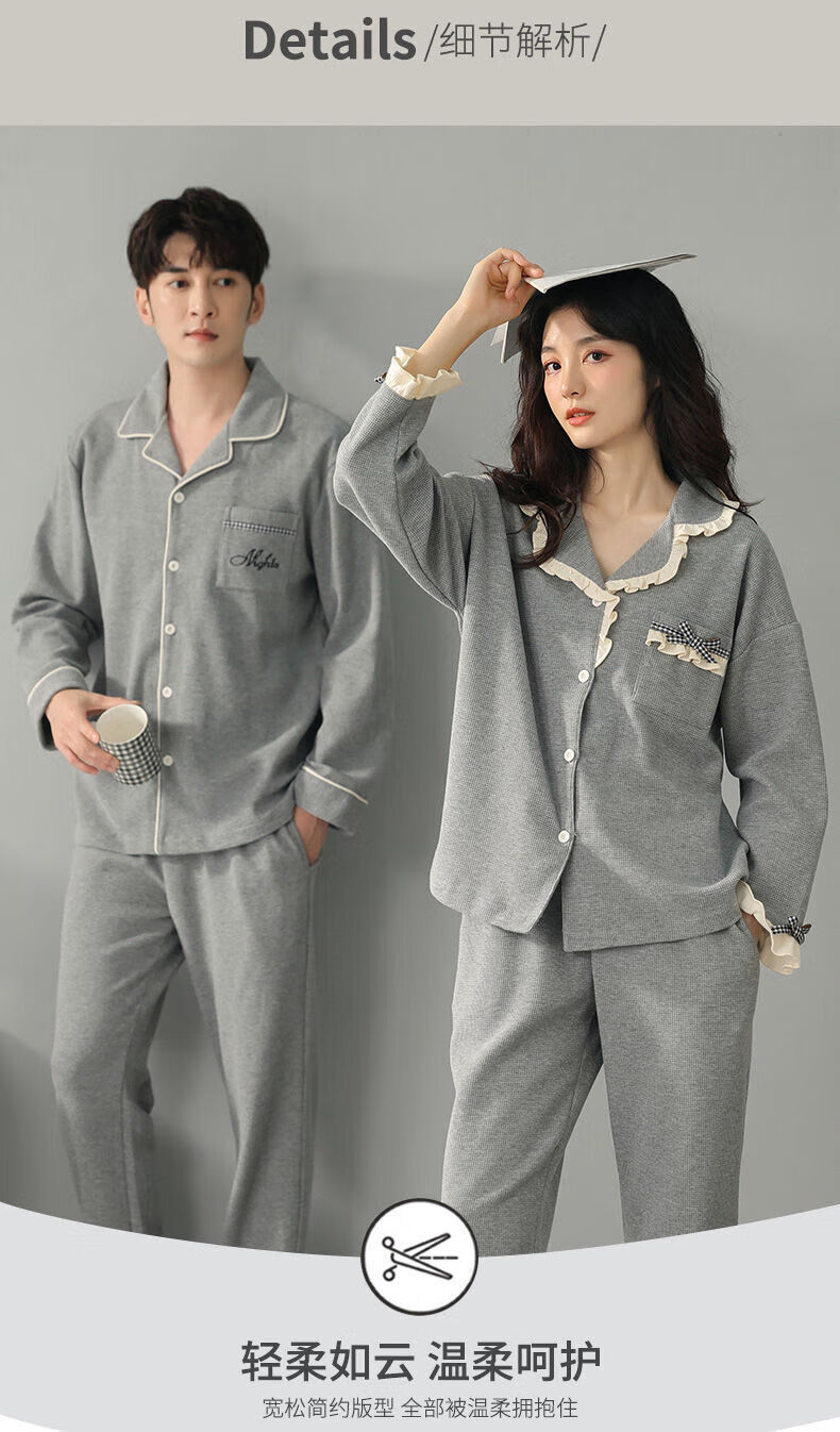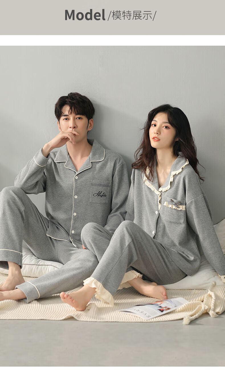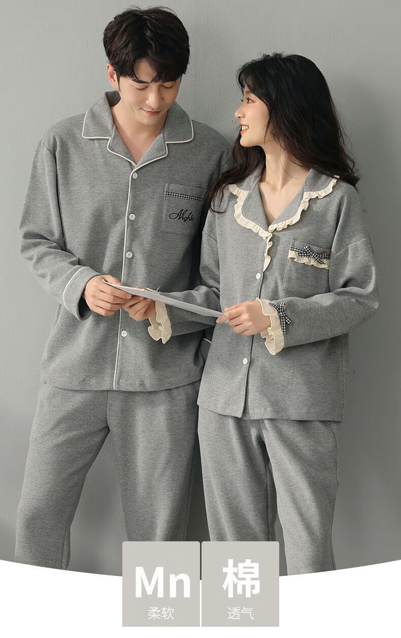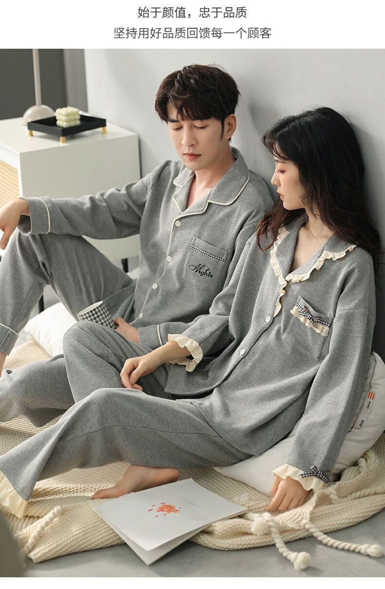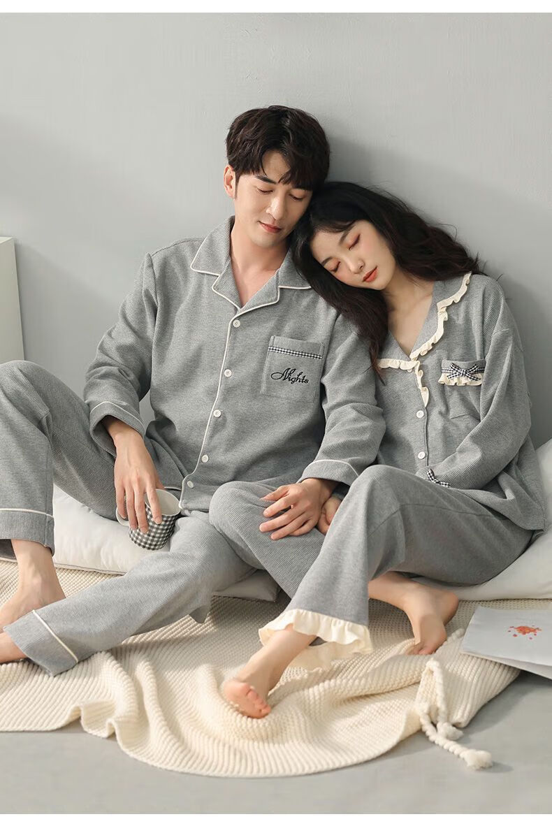Modal two sets of couple pajamas for men and women pure cotton high-end spring and autumn long-sleeved set high-quality couple home clothes new style MY08211 2XL female + male 3XL gift box