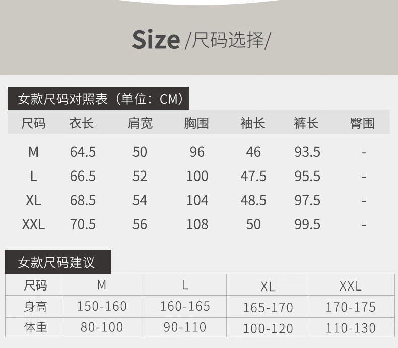 China (cm) 160-165/84-86 165-170 / 88-90 167-172 / 92-96 168-173 / 98-102 170-176 / 106-110